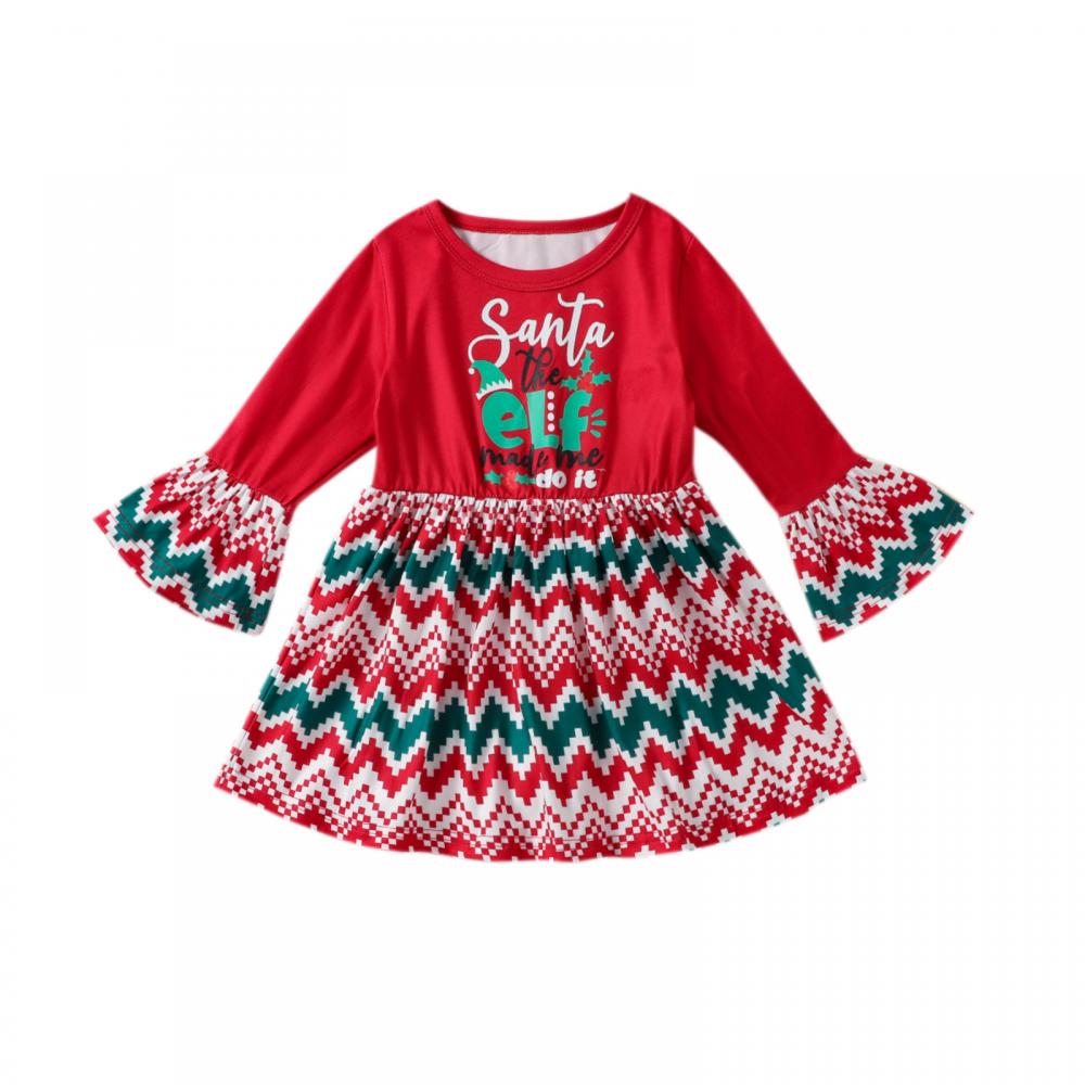 Christmas Autumn Winter Toddler Girls Letter Print Dress Wholesale Girls Dress