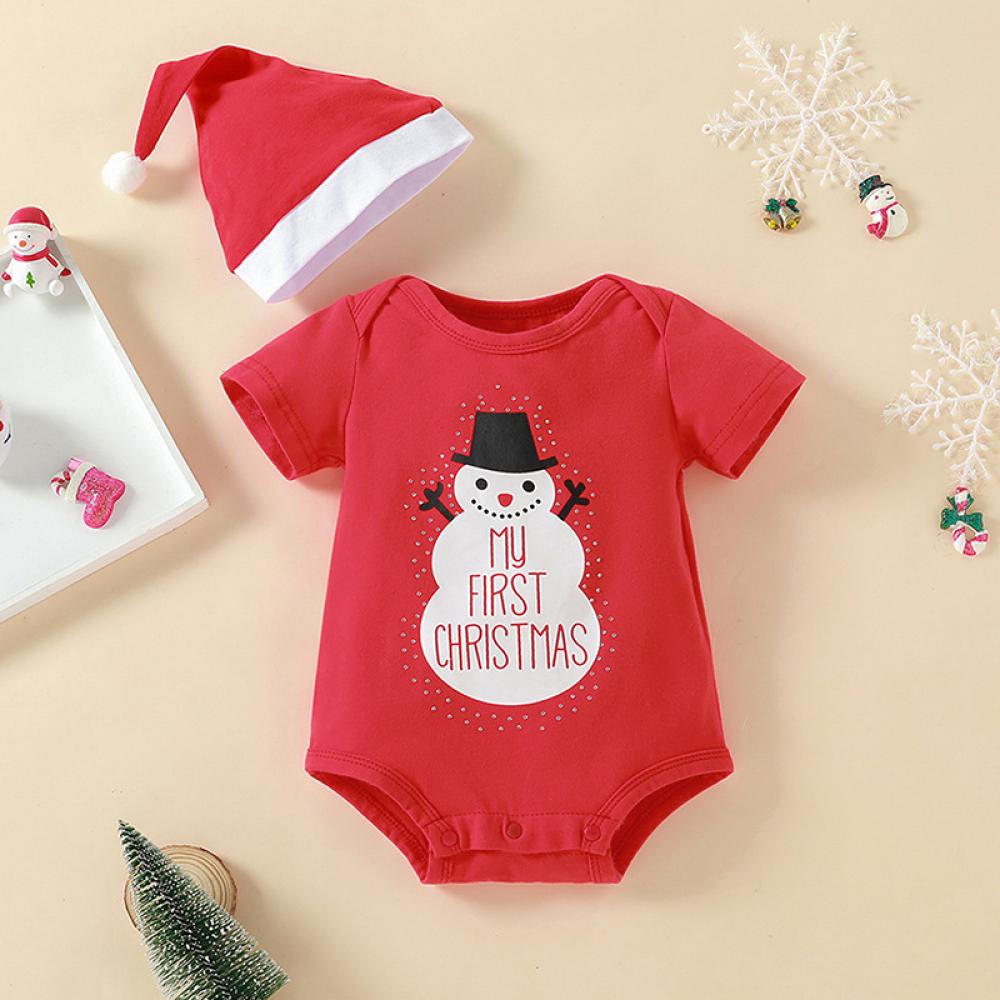 Christmas Boys And Girls Baby Snowman Letter Romper Wholesale Baby Clothes