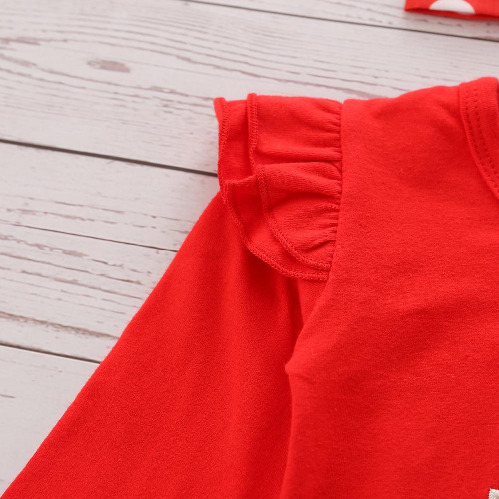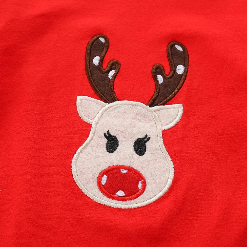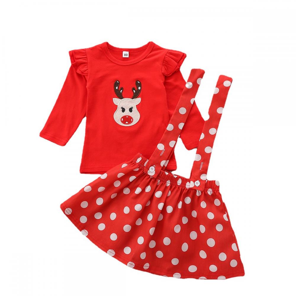 Christmas Girls Deer Head Embroidered Top Polka Dot Suspender Skirt Set Wholesale Girls Clothes