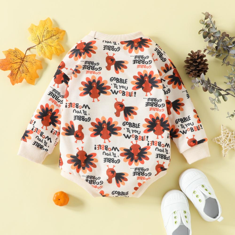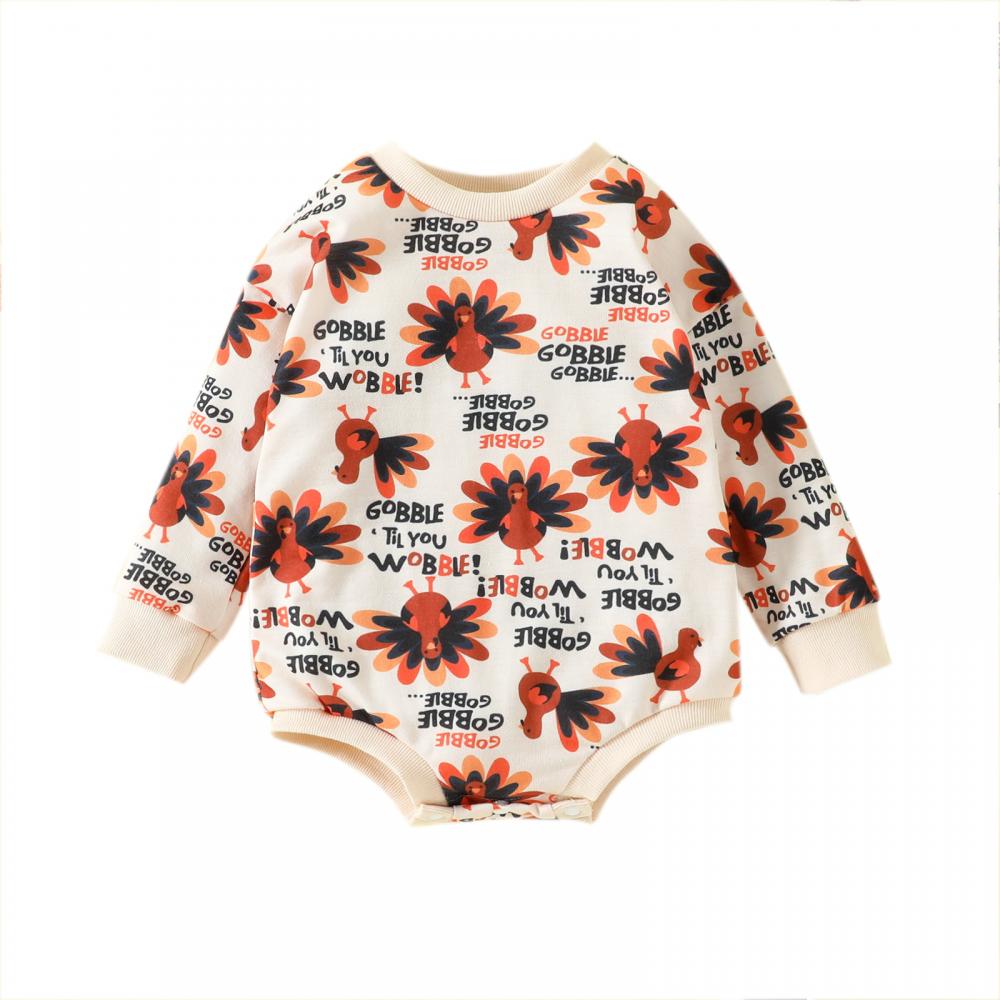 Fall Baby Turkey Print Thanksgiving Kids Romper Wholesale Baby Children Clothes