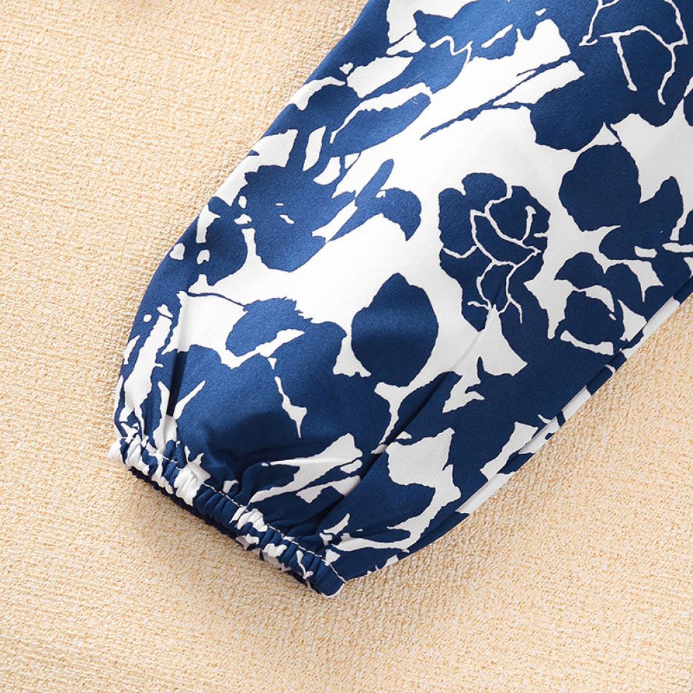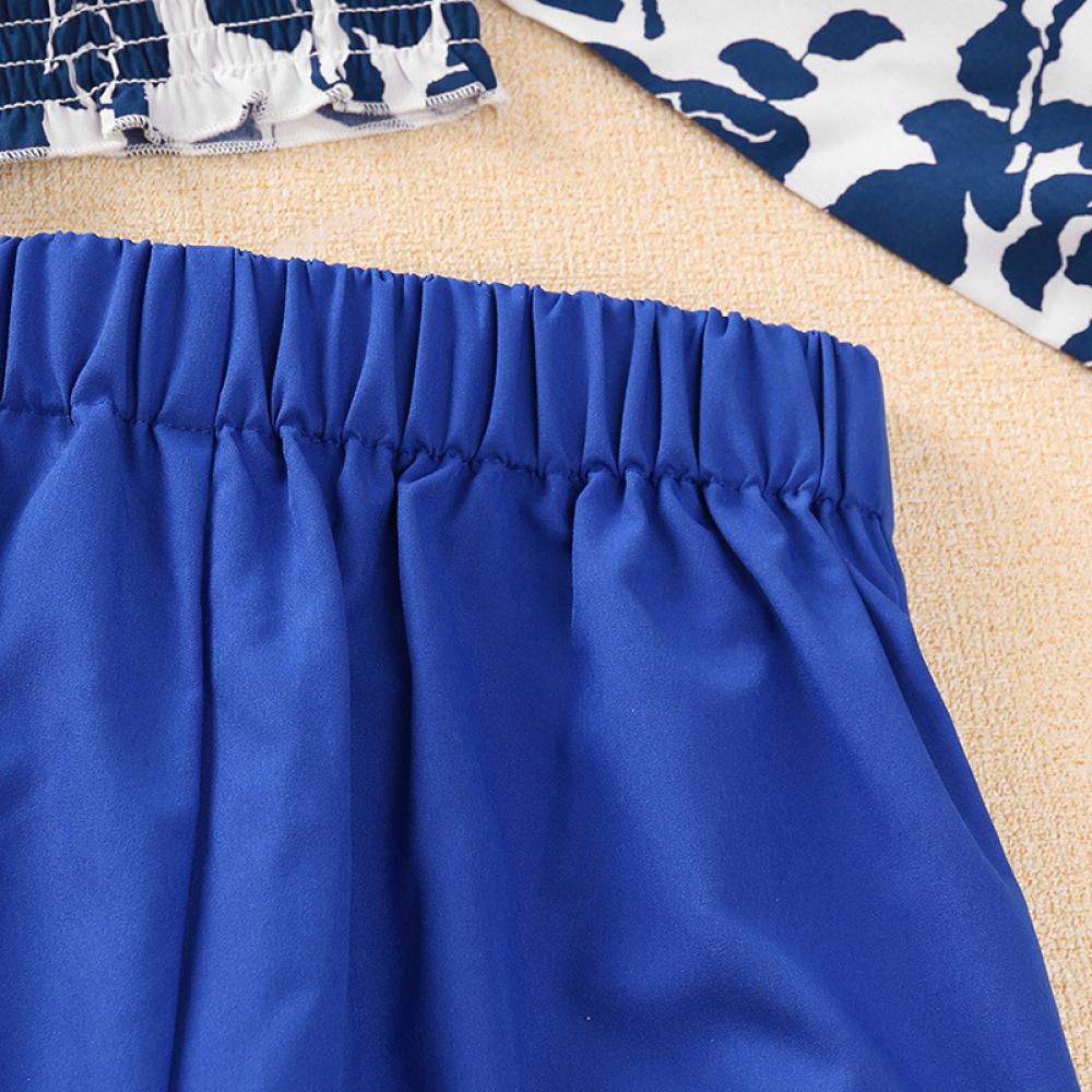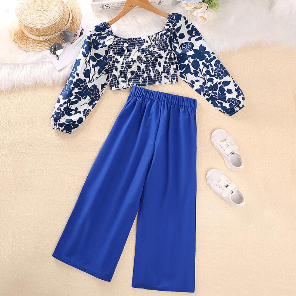 Floral Ruched Top Wide Leg Pants Two Piece Girls Autumn Suit Wholesale