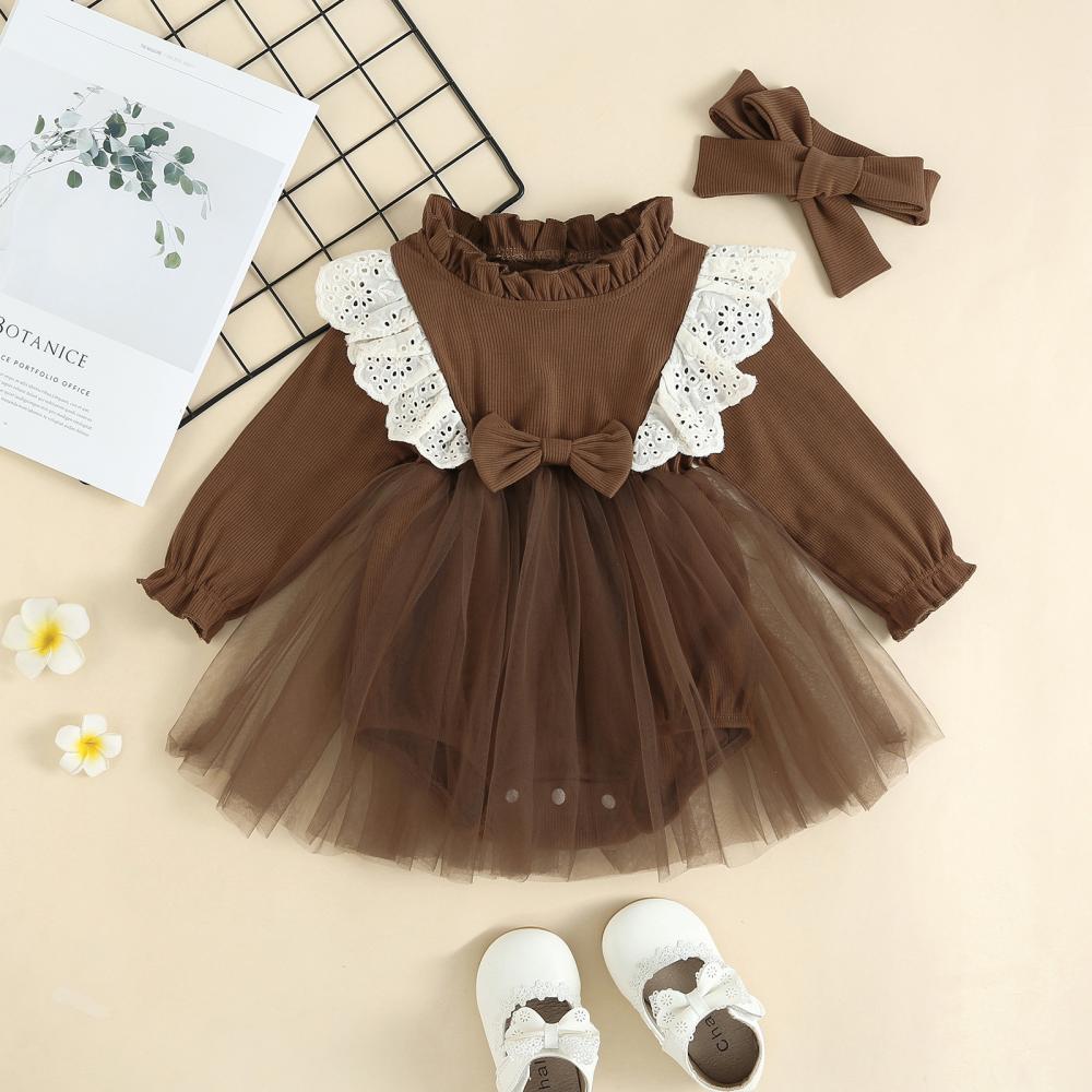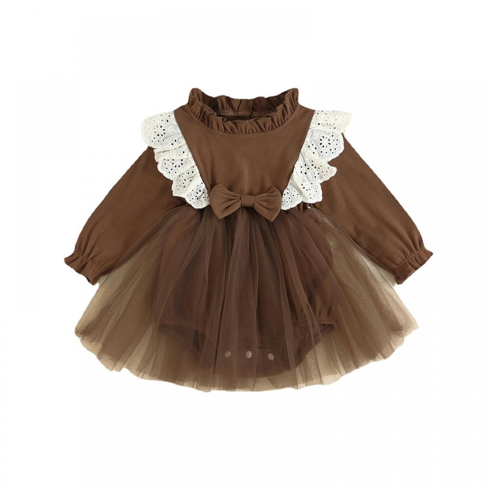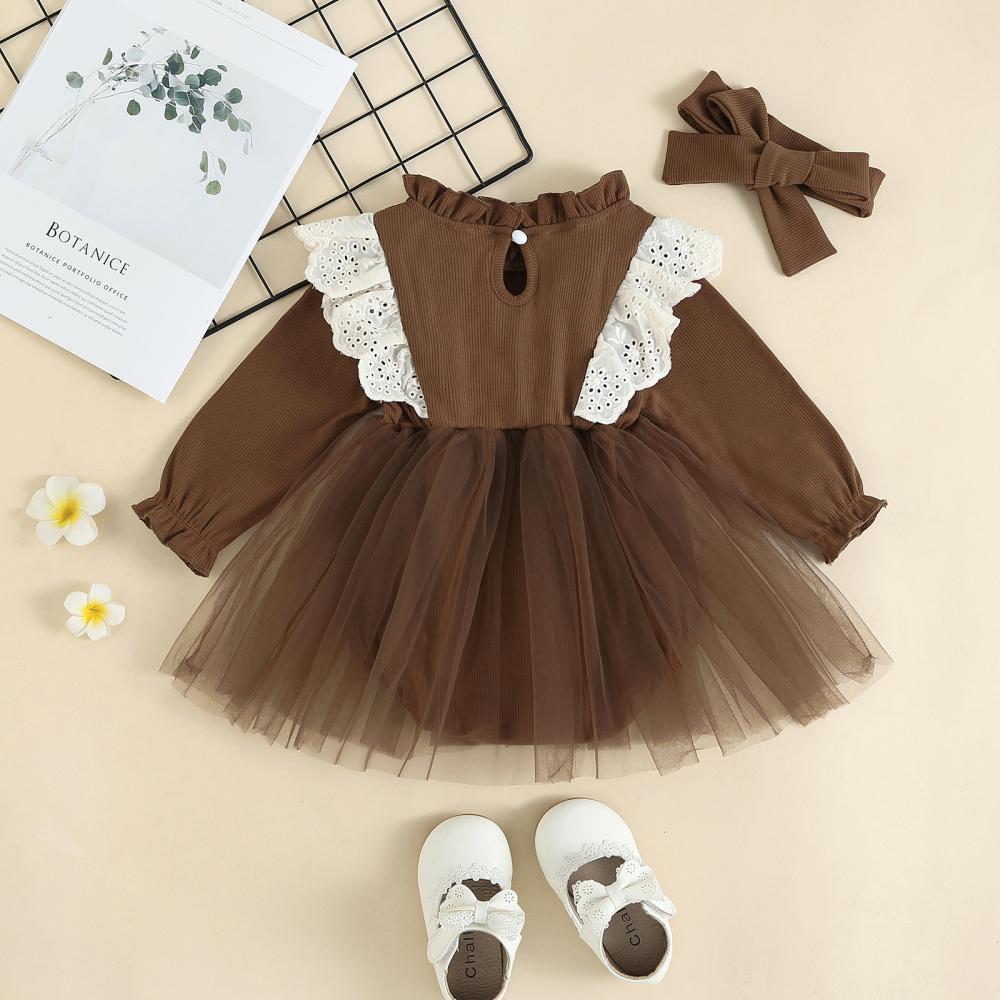 Girls Autumn Pit Strip Lace Flying Sleeve Princess Mesh Romper Baby Clothes Wholesale