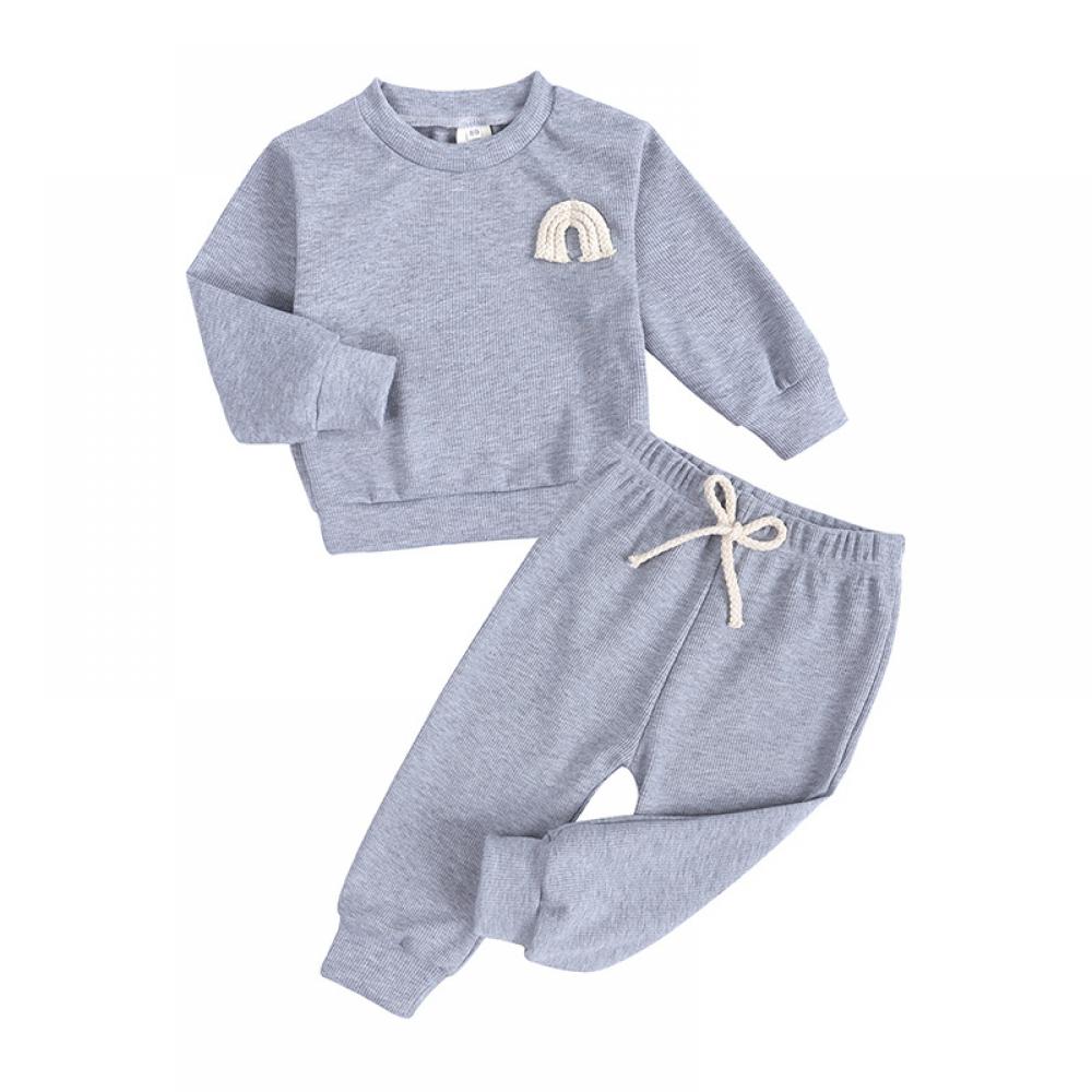 Girls Autumn Suit Boys Baby Rainbow Embroidered Pit Two-piece Set Baby Clothes Wholesale