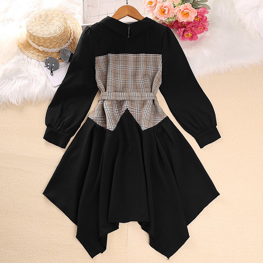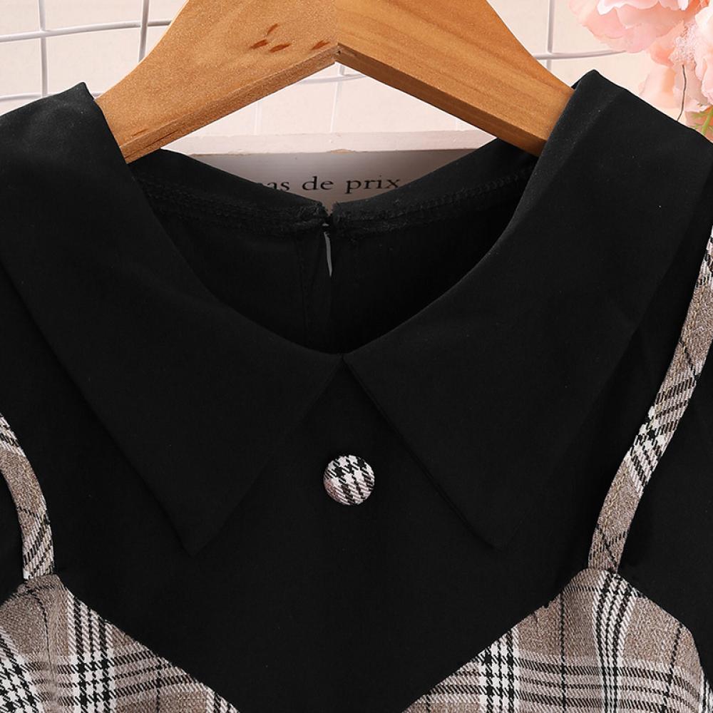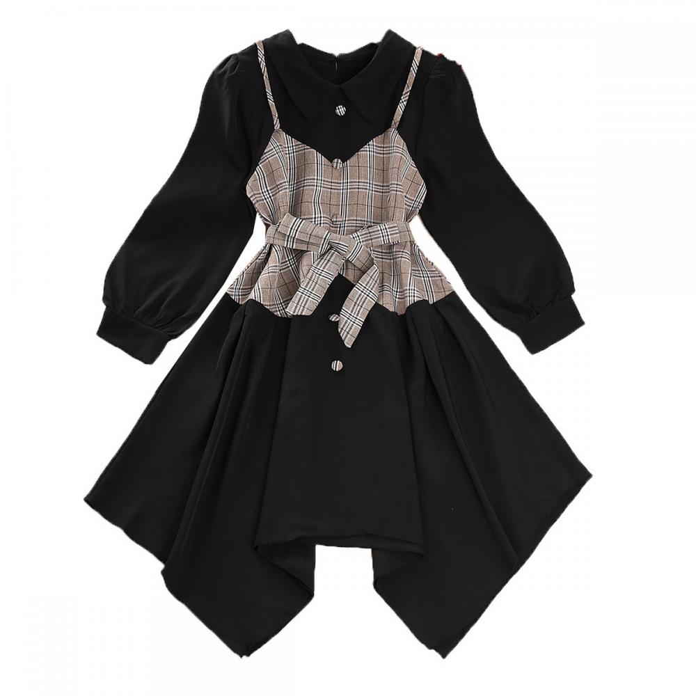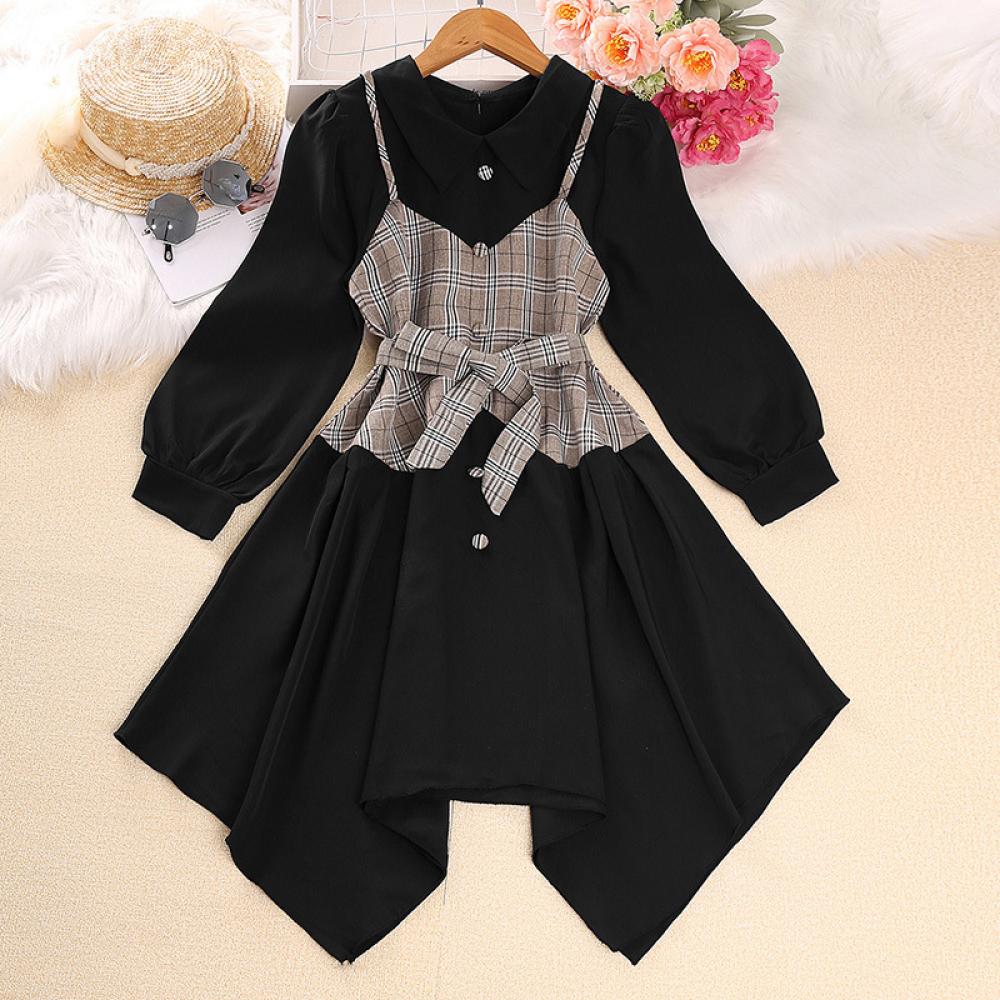 Girls Autumn Western-style Plaid Long-sleeved Fake Two-piece Dress Wholesale Girls Dress