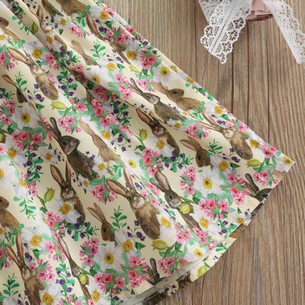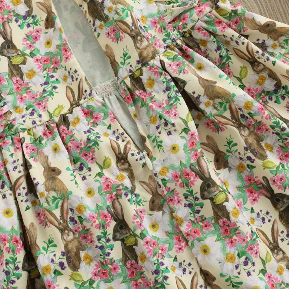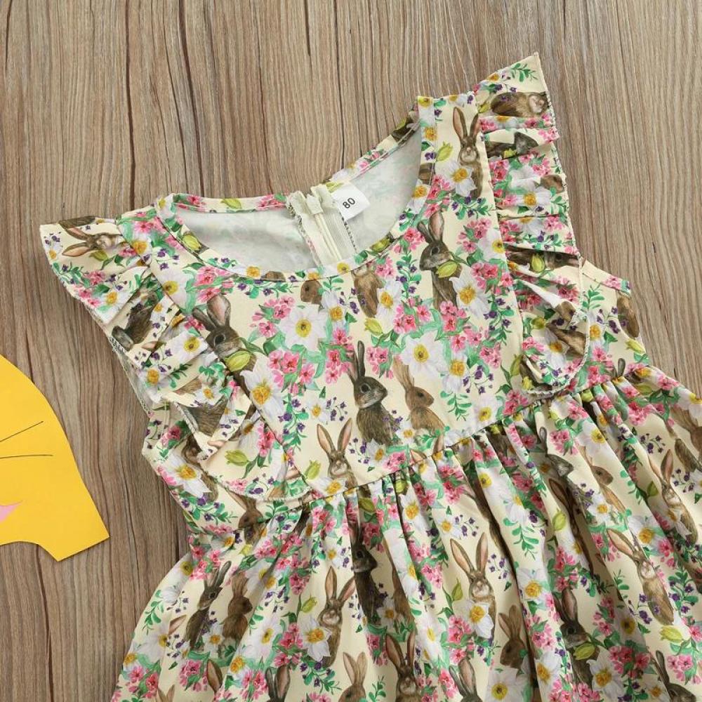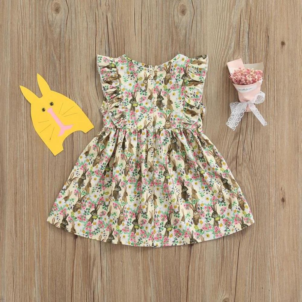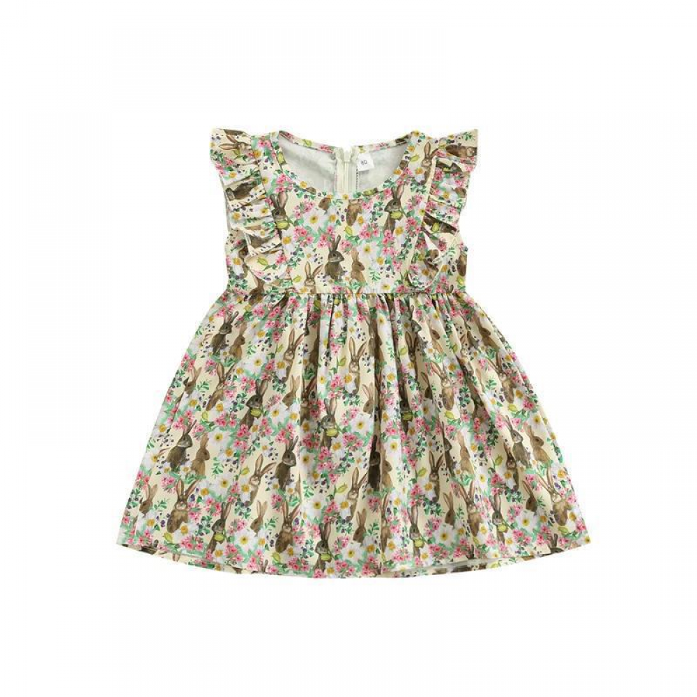 Girls Dress Easter Bunny Print Small Fly Sleeve Zipper Skirt Wholesale Girls Clothes