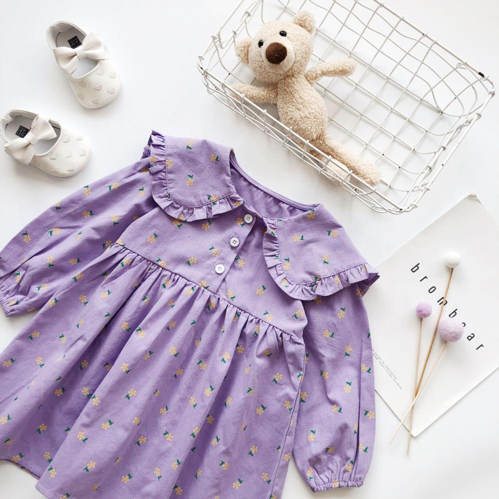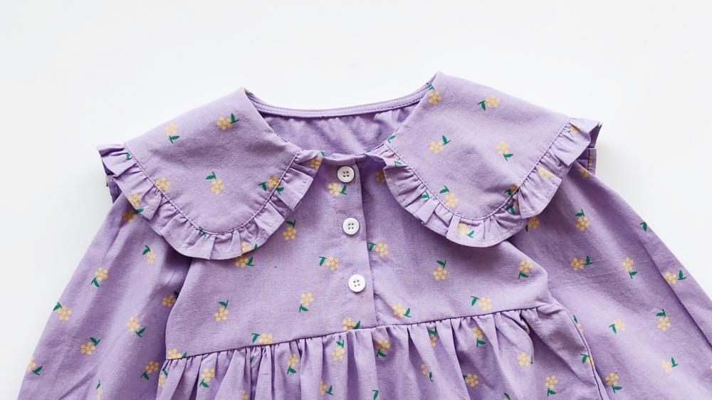 Girls Spring Autumn Floral Purple Dress Girls Dress Wholesale