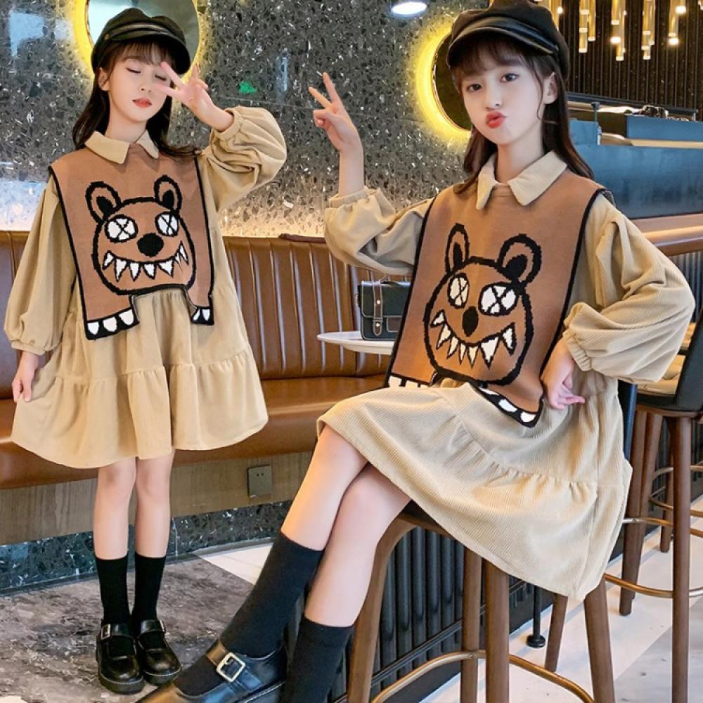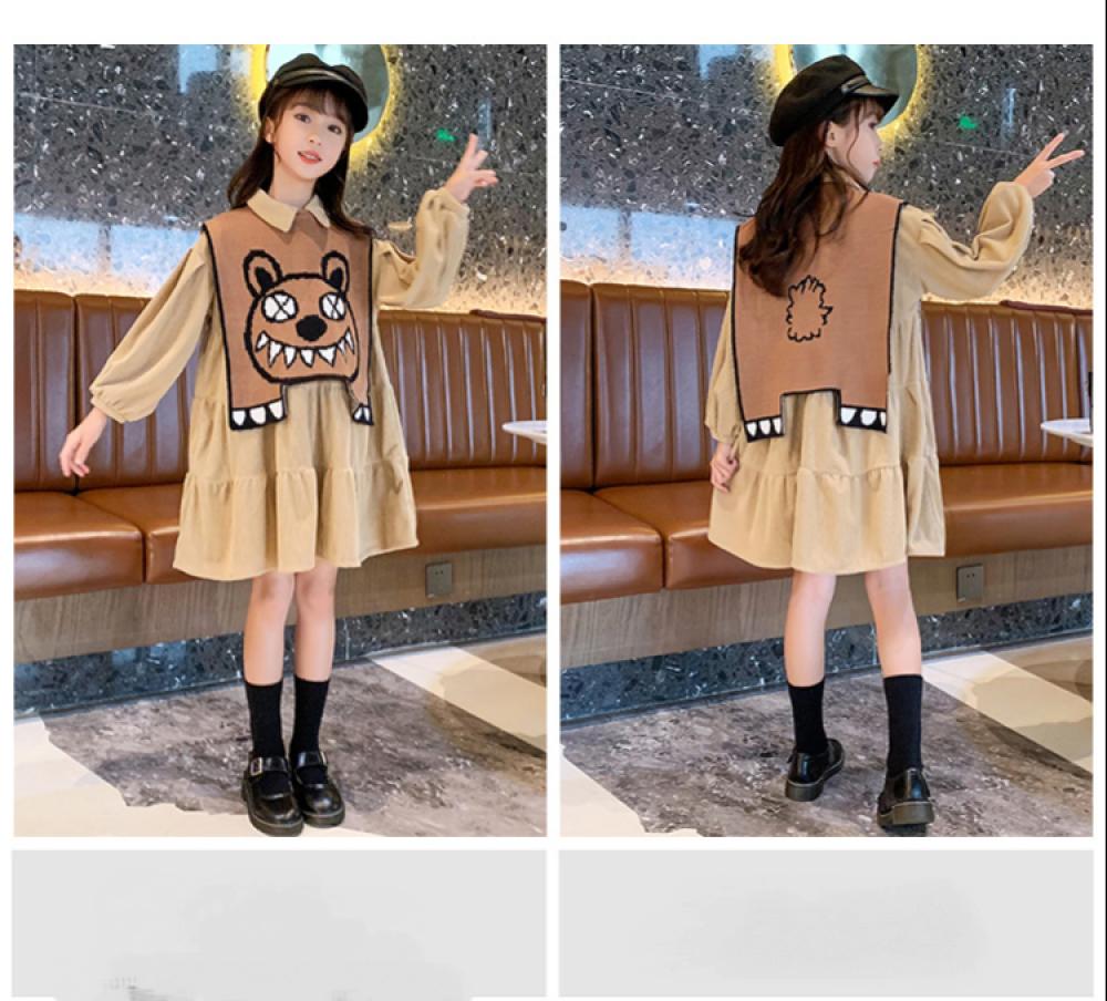 Girls Spring Autumn T-shirt Dress With Vest Girls Dress Wholesale
