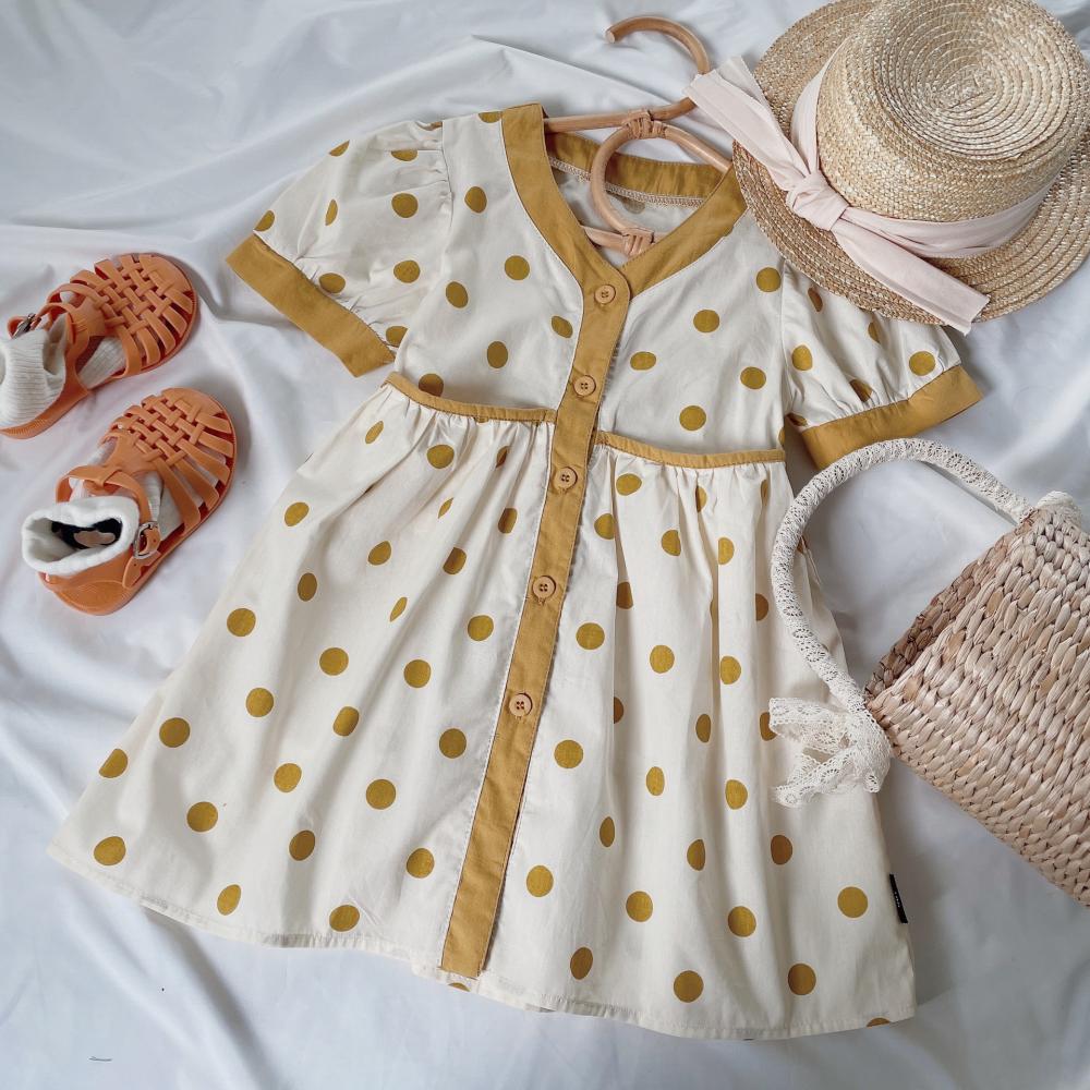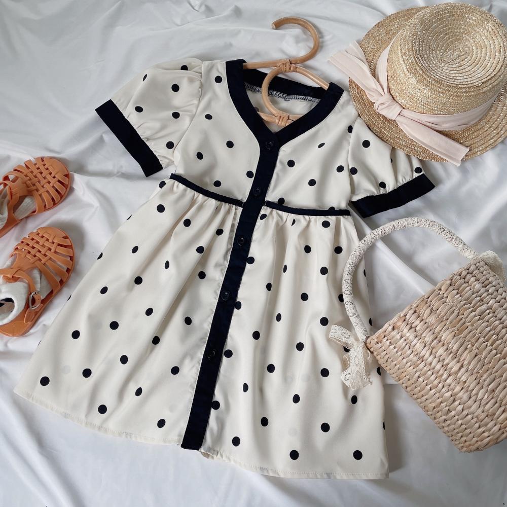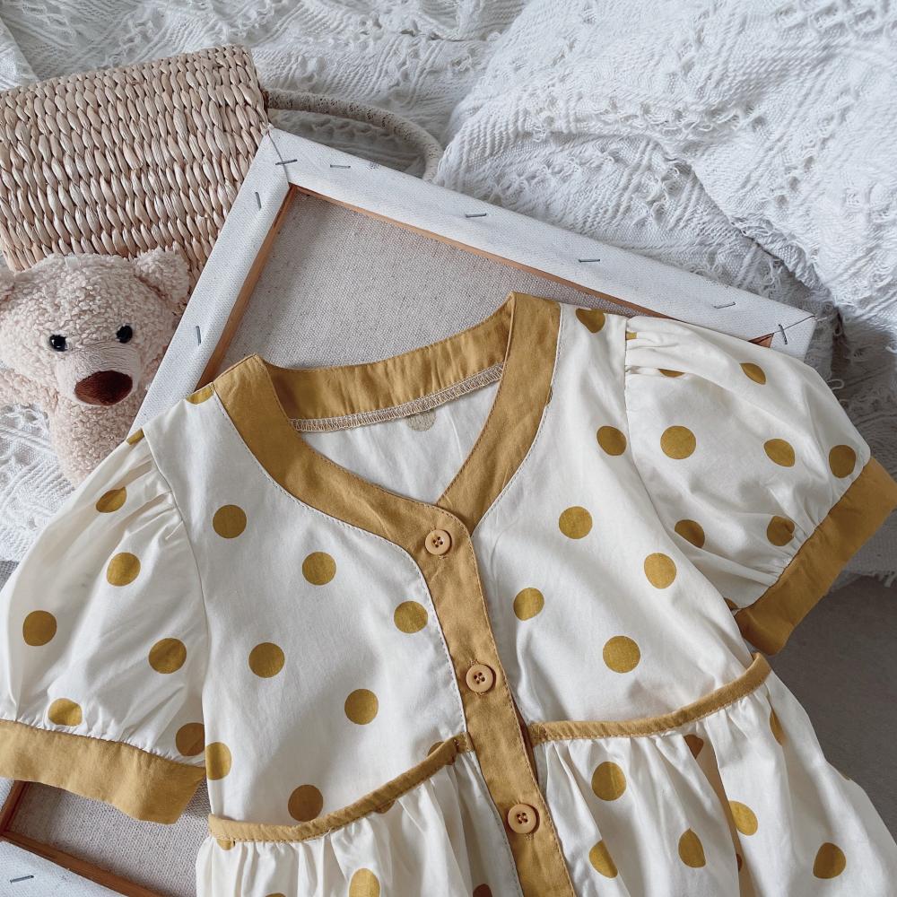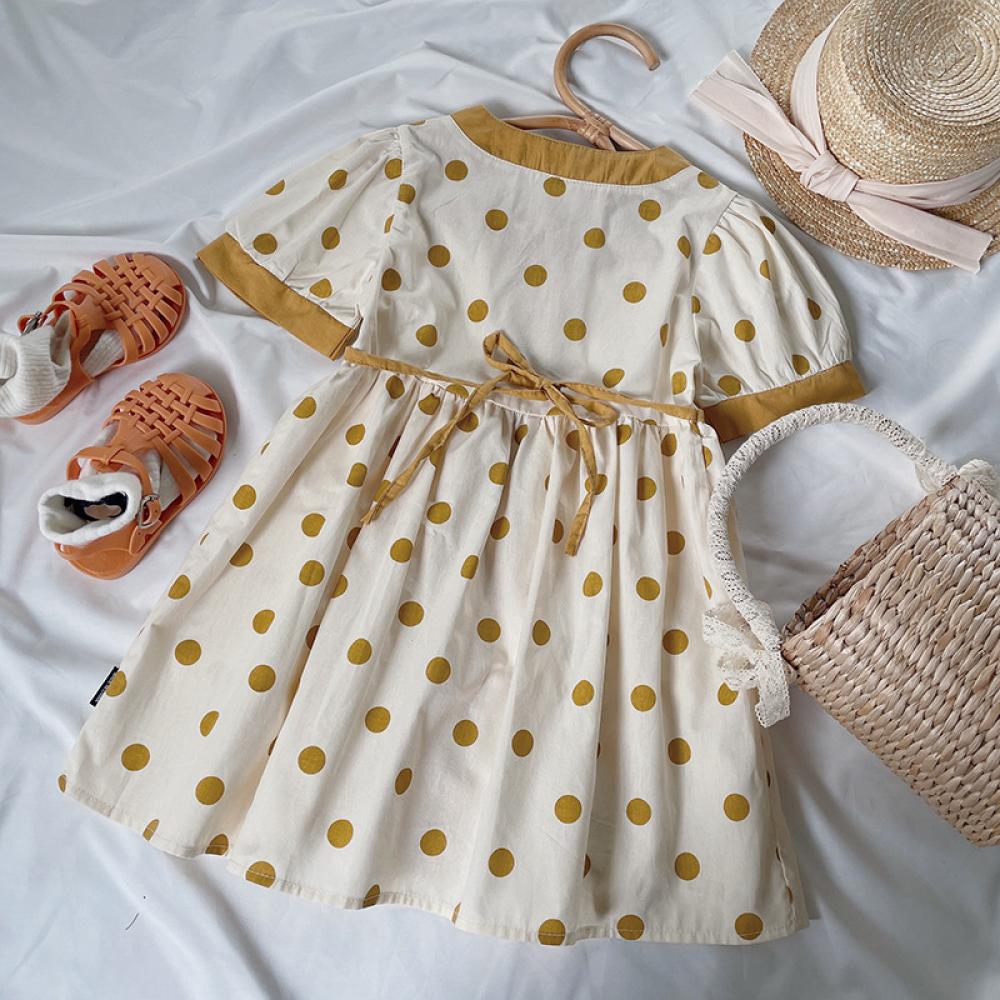 Girls Summer Puff-sleeve Polka Dot Dress Girls Wholesale Dresses