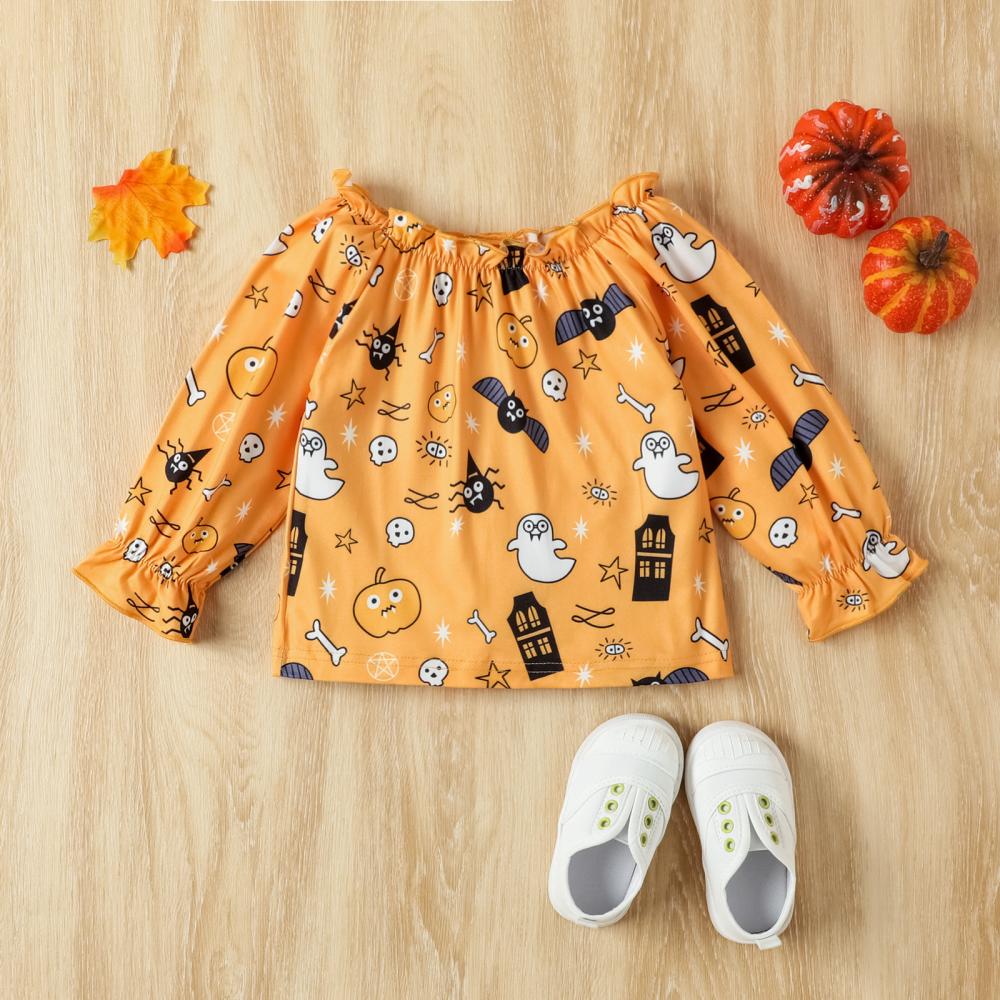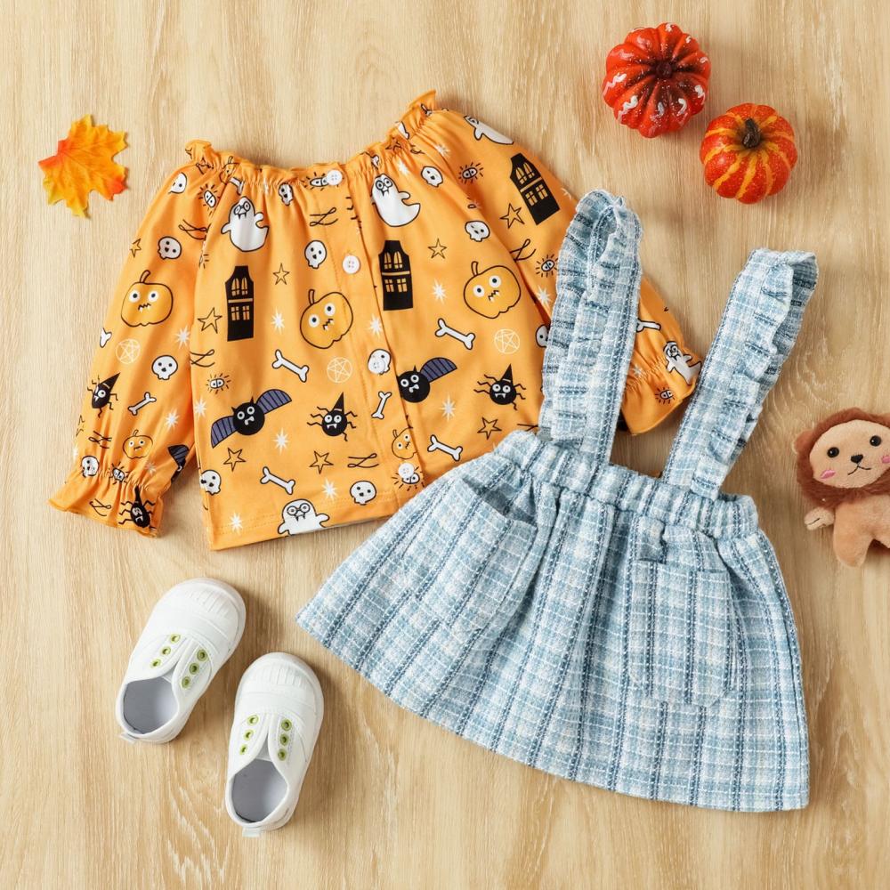 Halloween Bib Skirt Girls Suit Spring and Autumn Western Style Long Sleeve Set Wholesale Girls Clothes