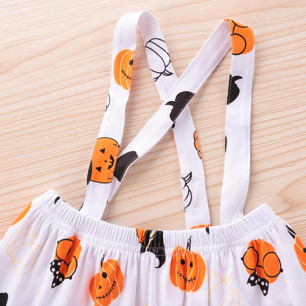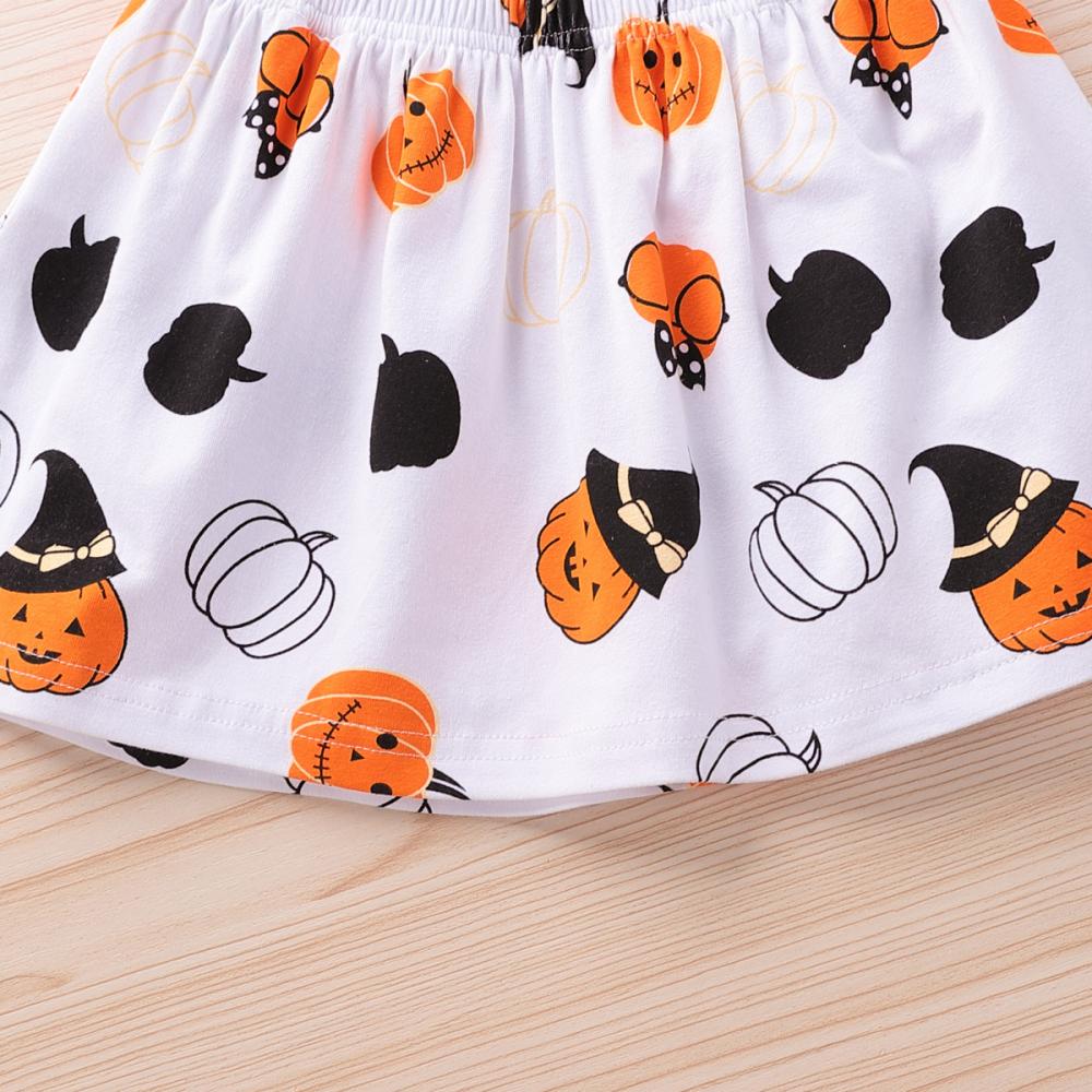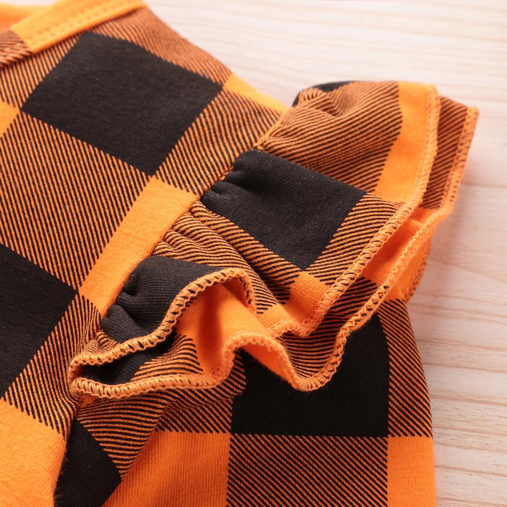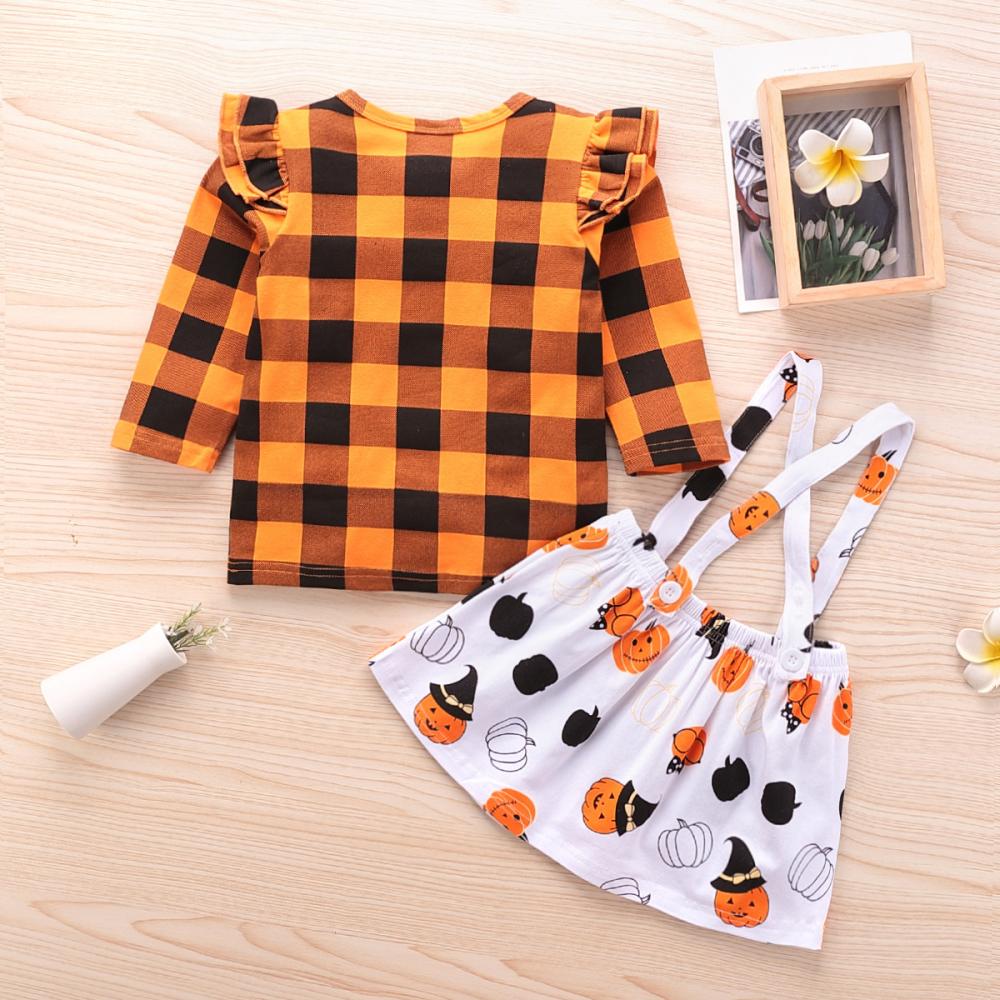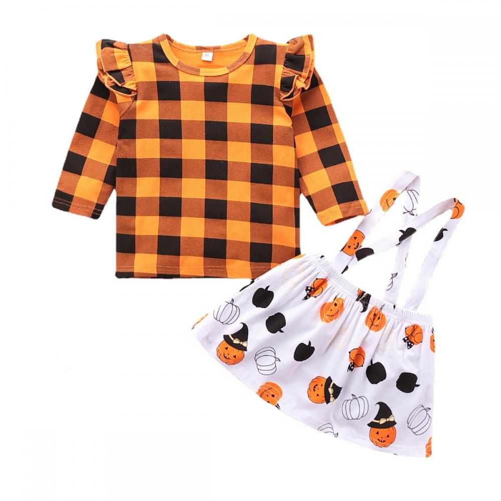 Halloween Girls Skirt Plaid Long Sleeve + Pumpkin Print Strap Skirt Set Wholesale Girls Clothing