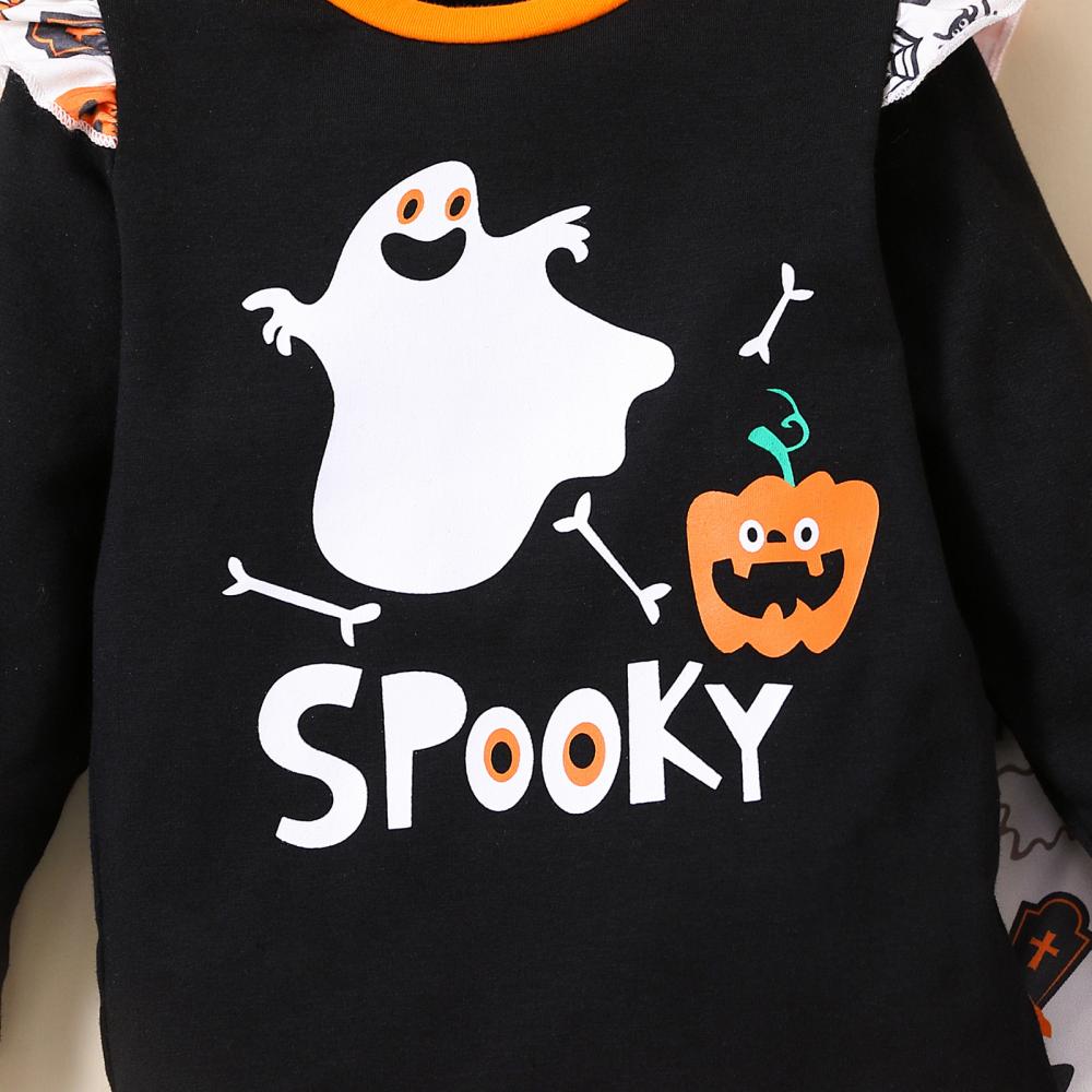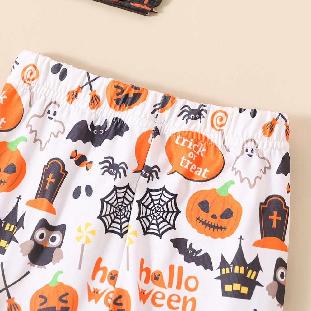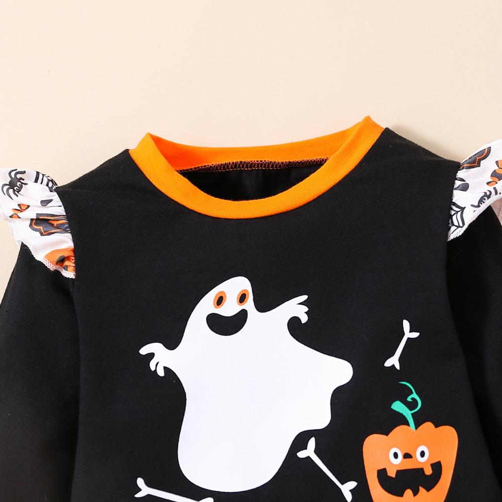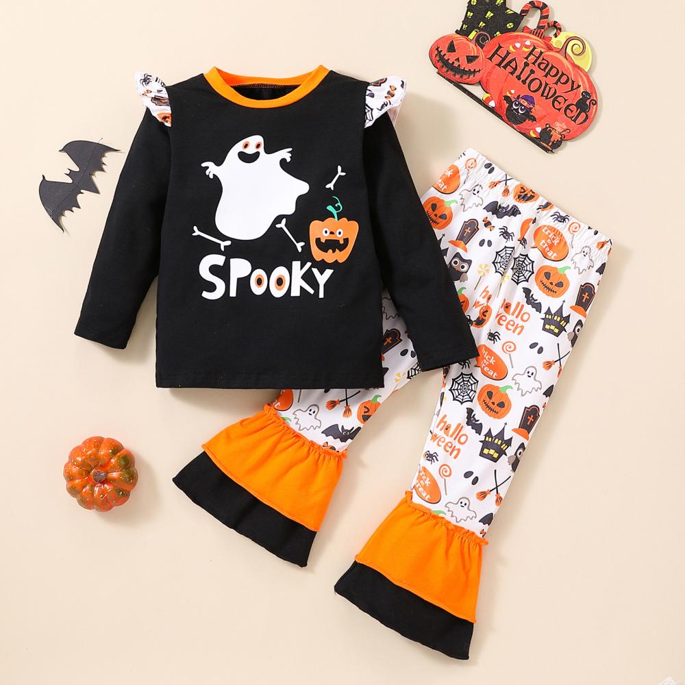 Halloween Spring Autumn Girls Pumpkin Long Sleeve Top Flared Pants Two Piece Set Wholesale Girls Clothes