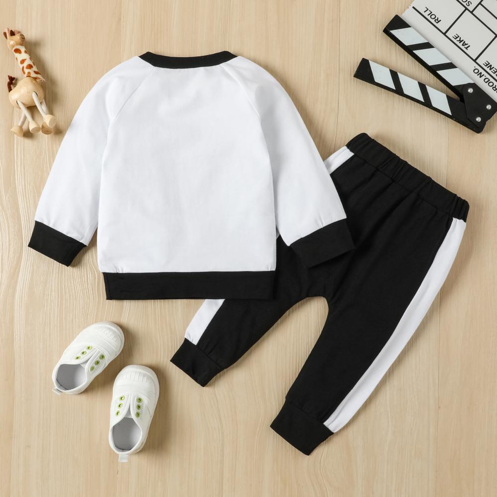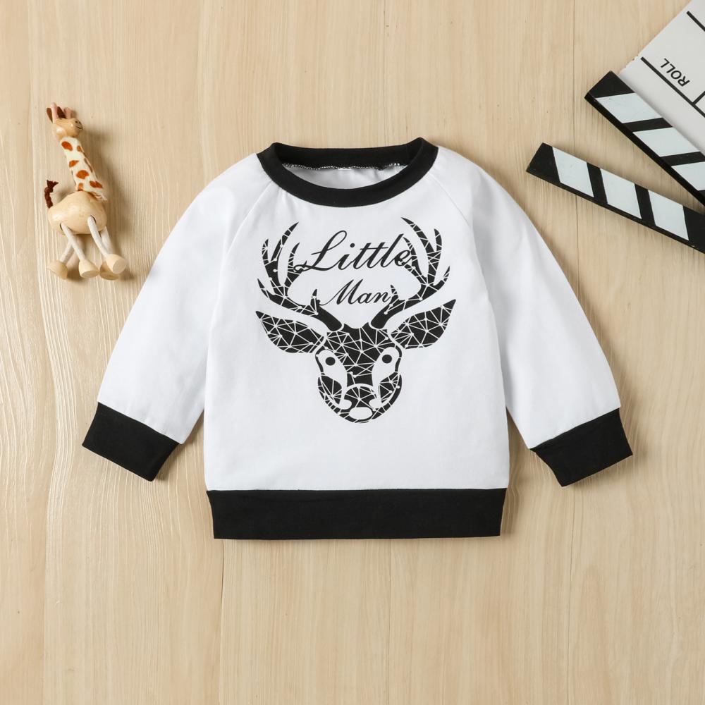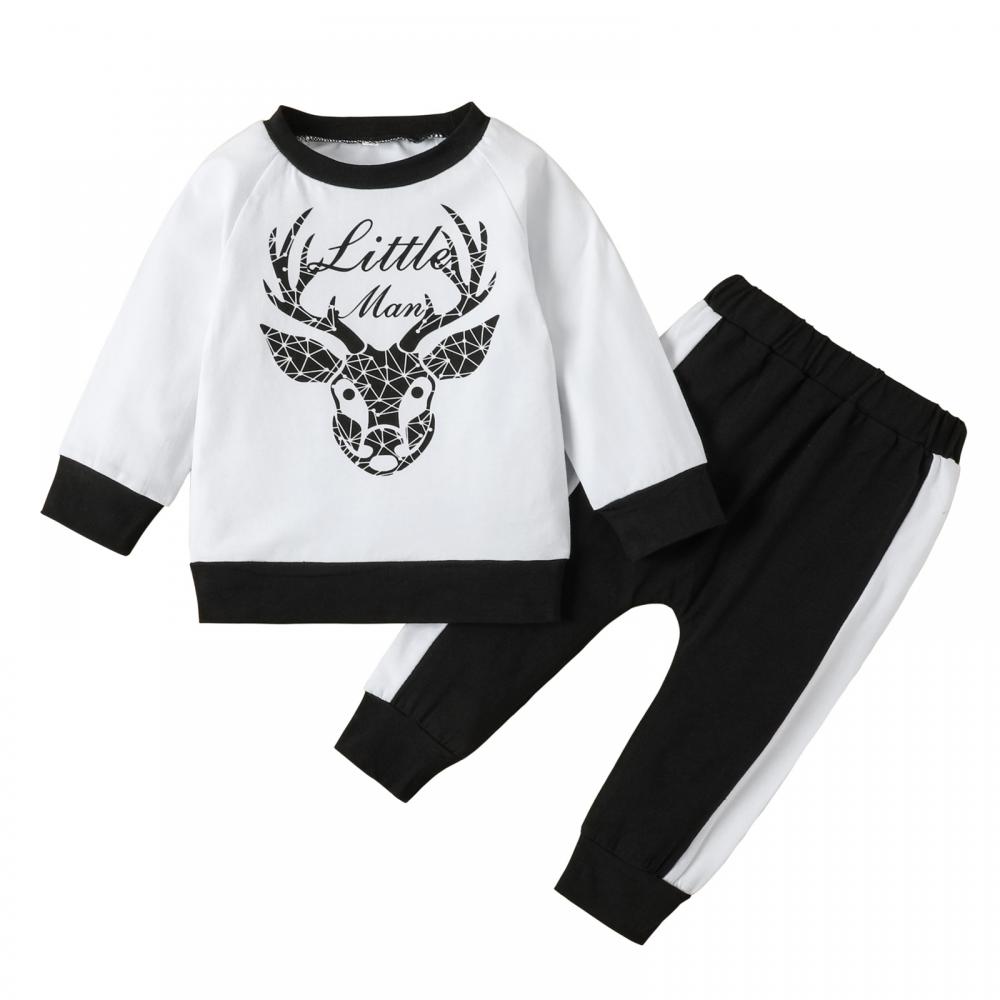Infant Boys Autumn Deer Head Letter Print Sweater Stitching Two-piece Set Wholesale Baby Clothes