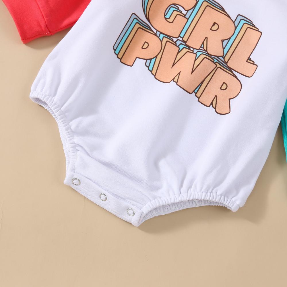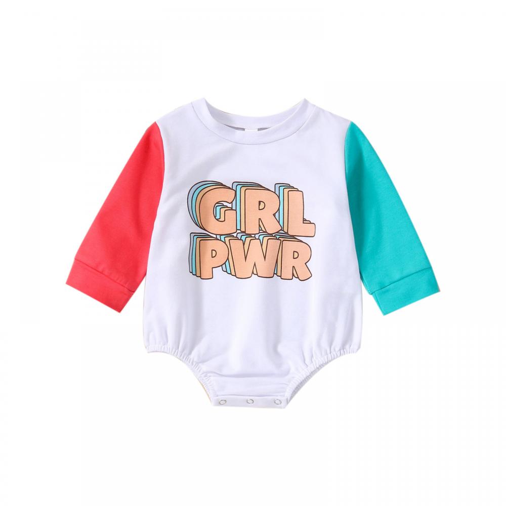 Infant Spring and Autumn Letter Print Romper Contrast Color Sleeve Jumpsuit Baby Boutique Clothes Suppliers