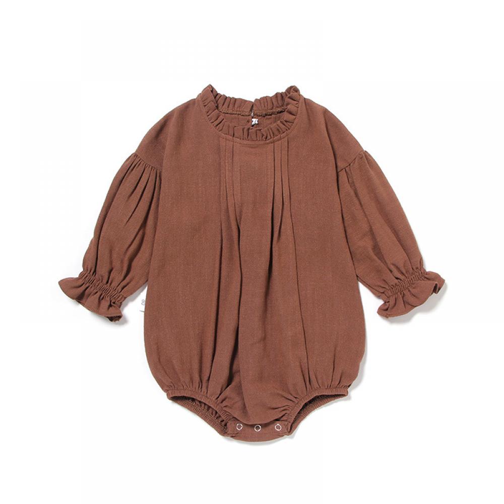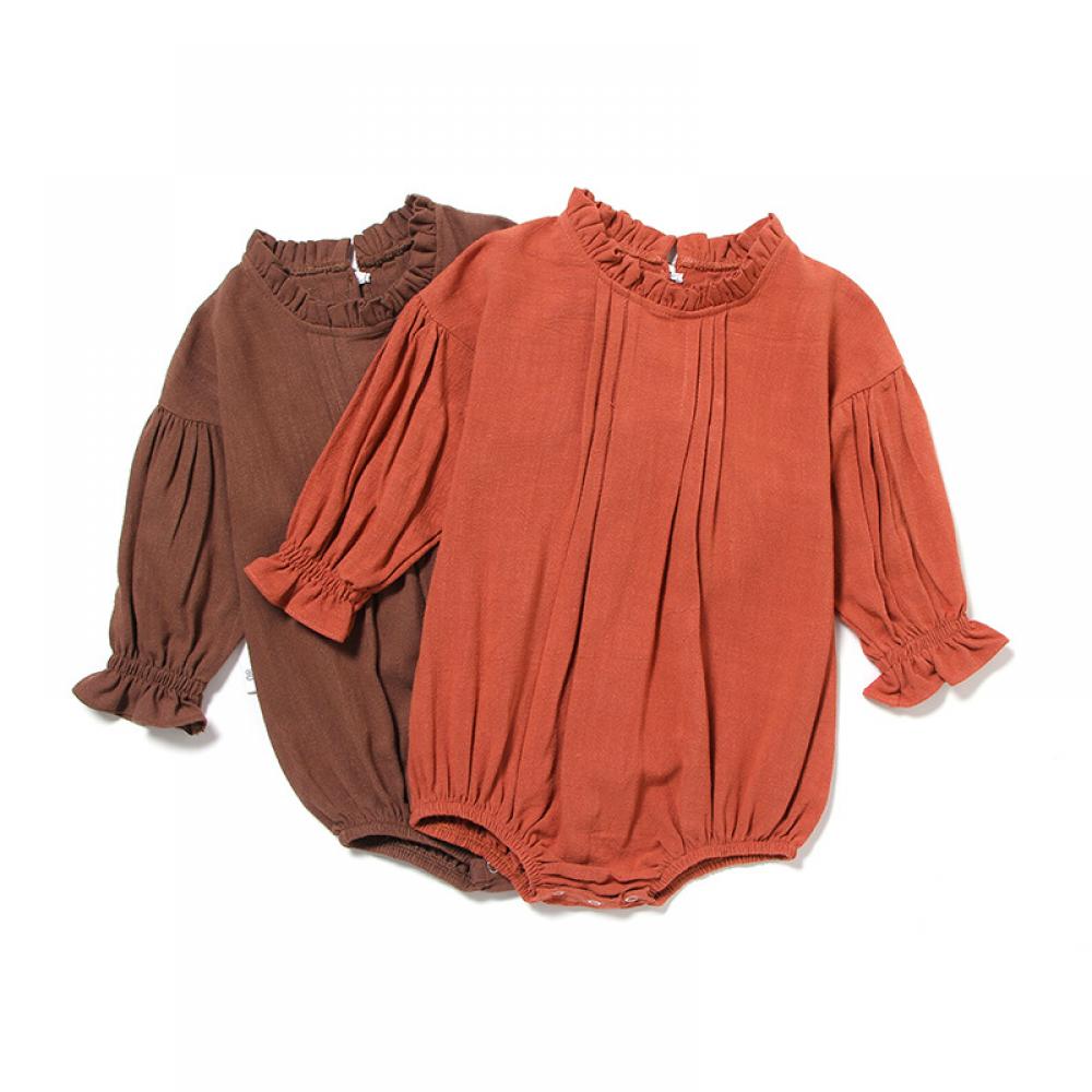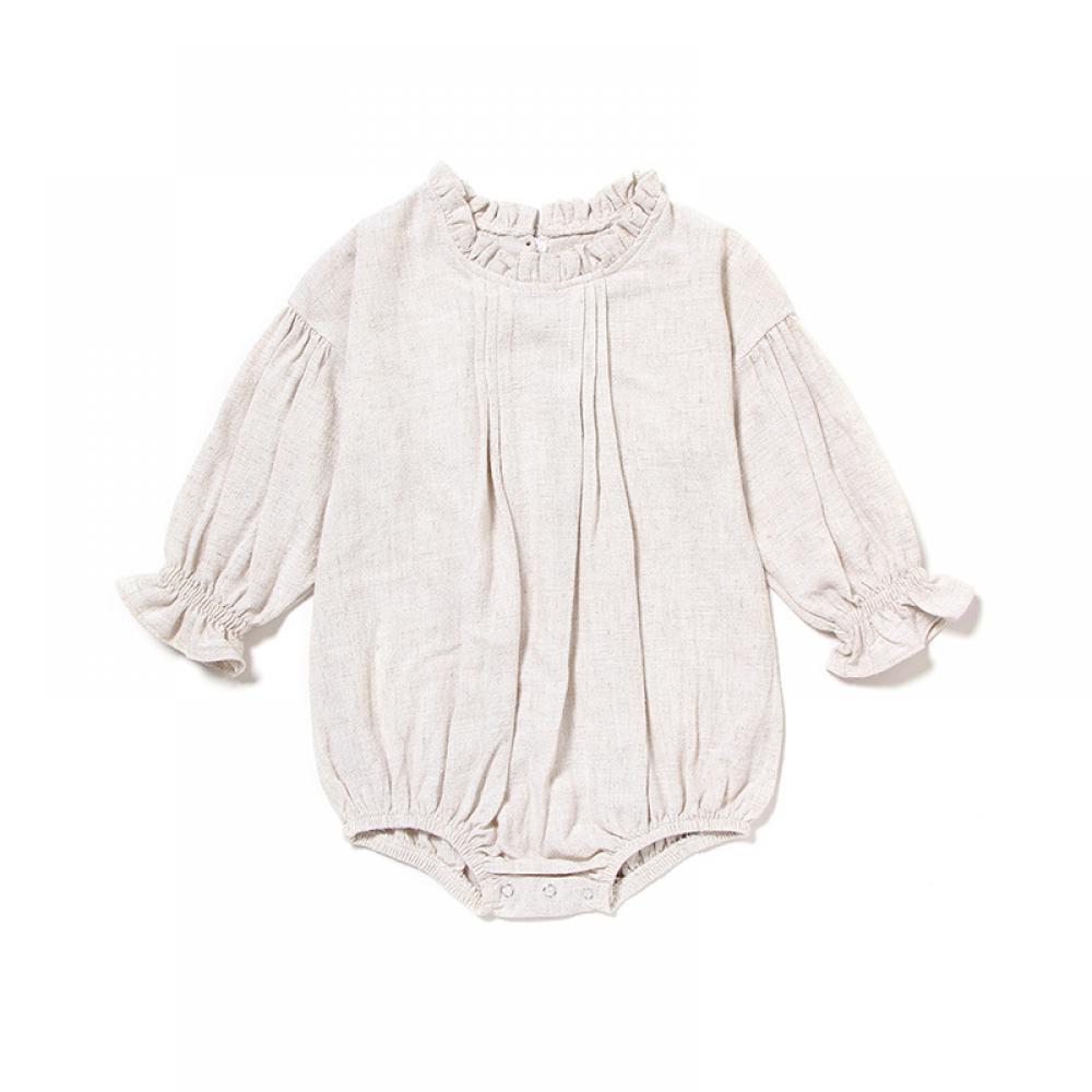 Ins European And American Children's Clothing Long-sleeved One-piece Solid Color Linen Romper Bag Fart Clothing Baby Girl Wholesale Baby Clothes