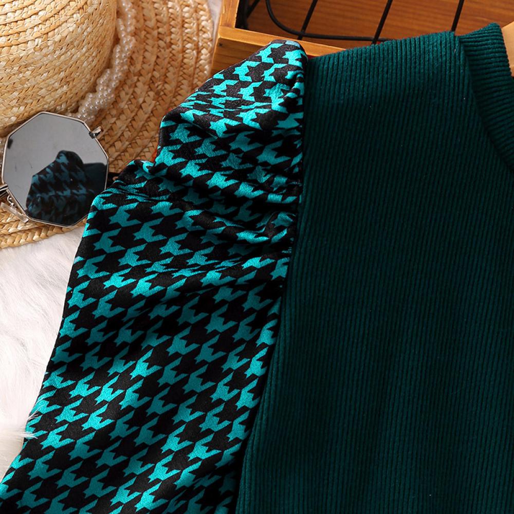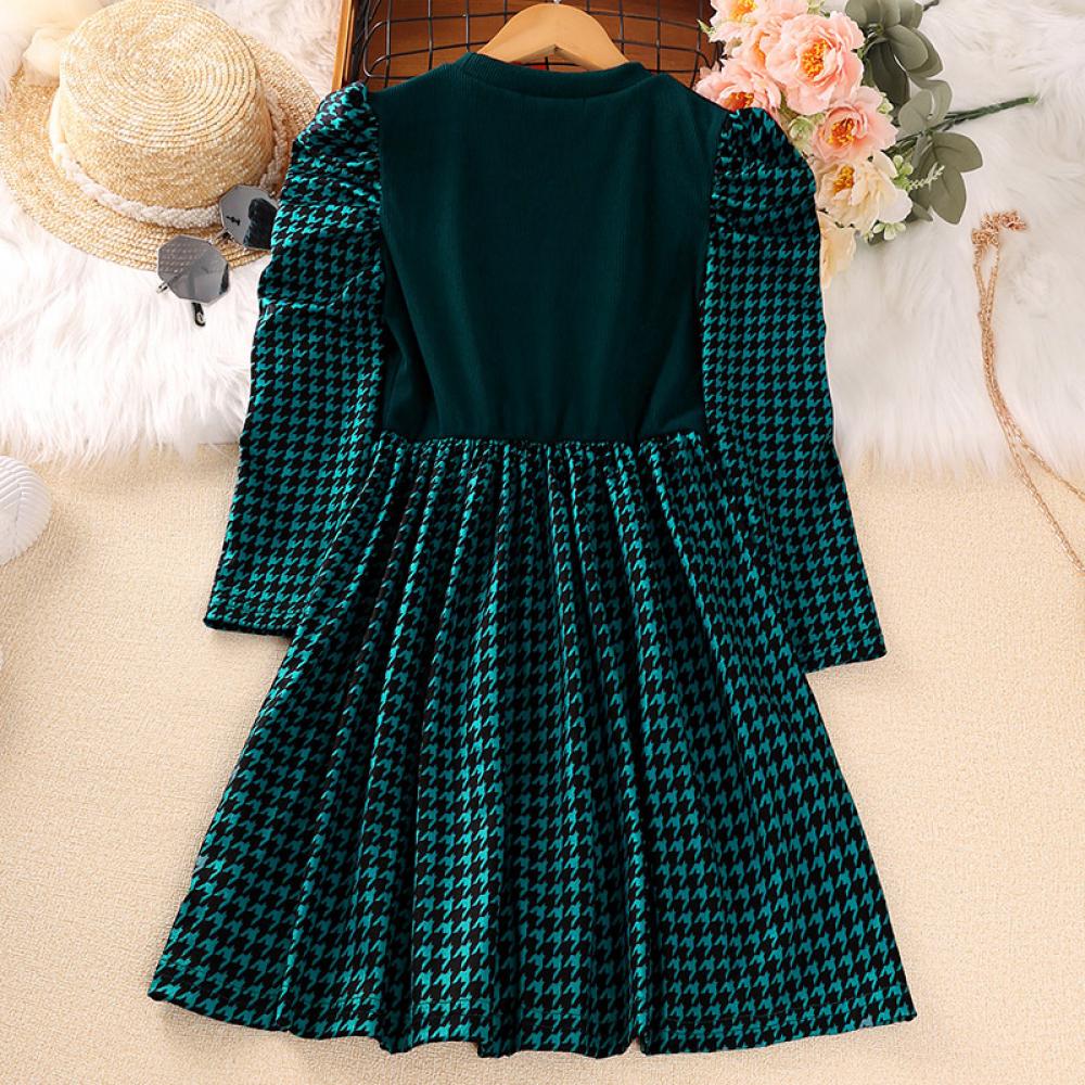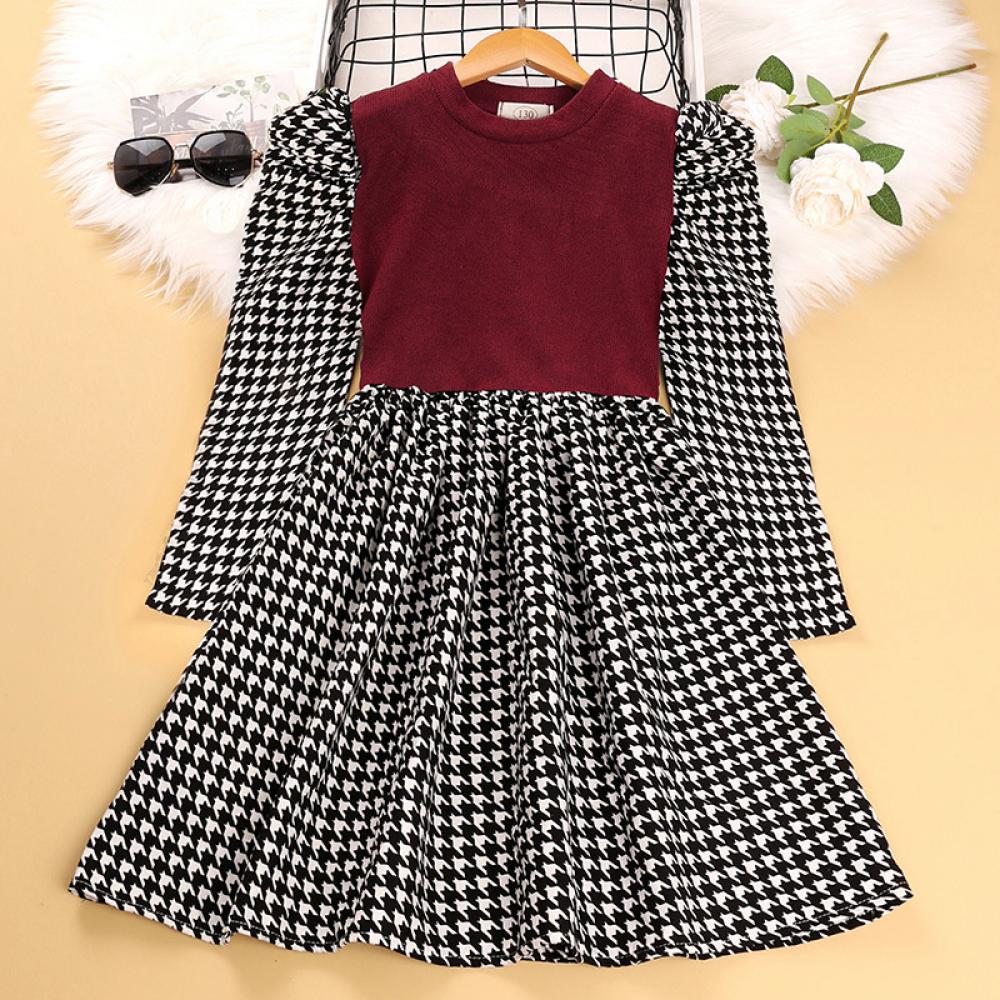 Knitted Plaid Long-sleeved Girls Autumn Dress Wholesale Girls Dress