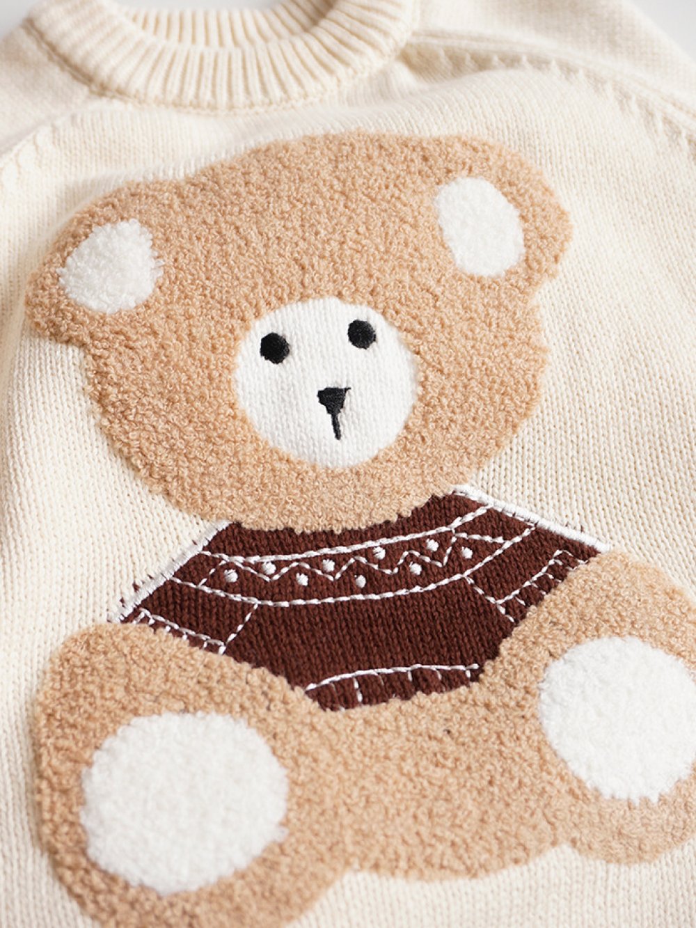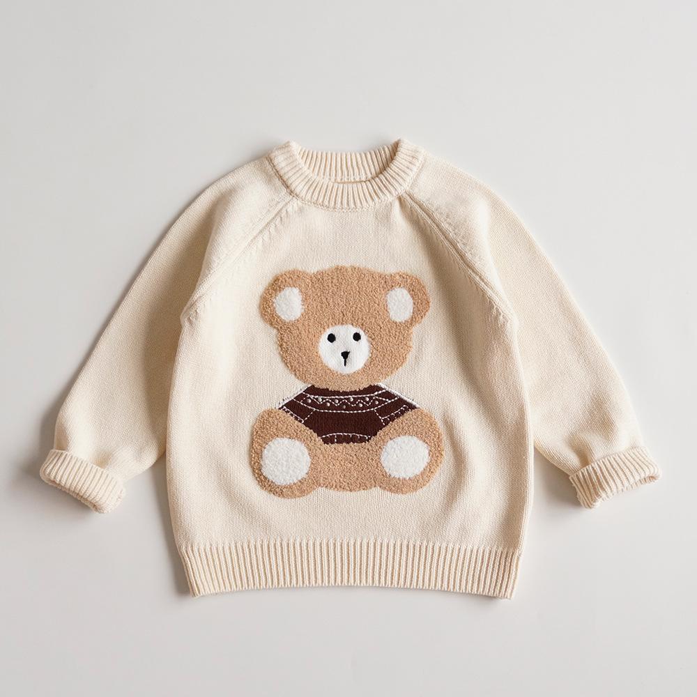 Little Girls Autumn Cute Bear Knit Sweater Pullover Wholesale Girls Clothes