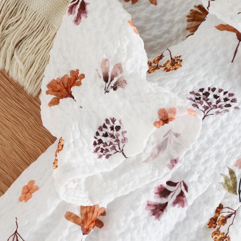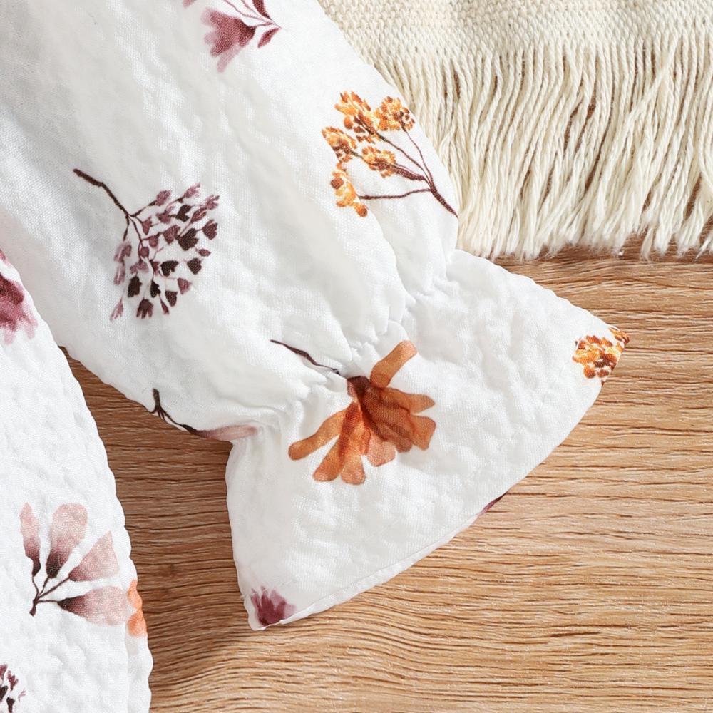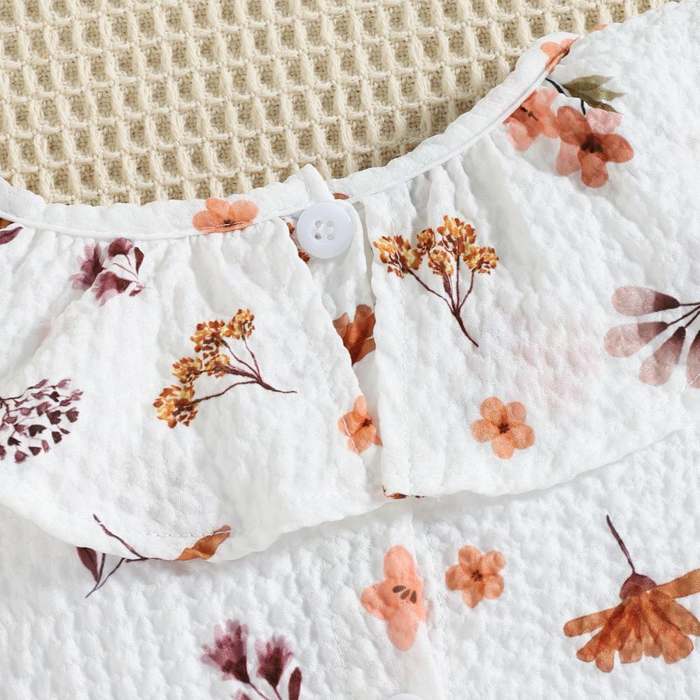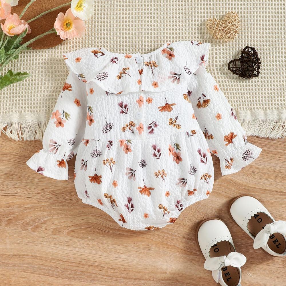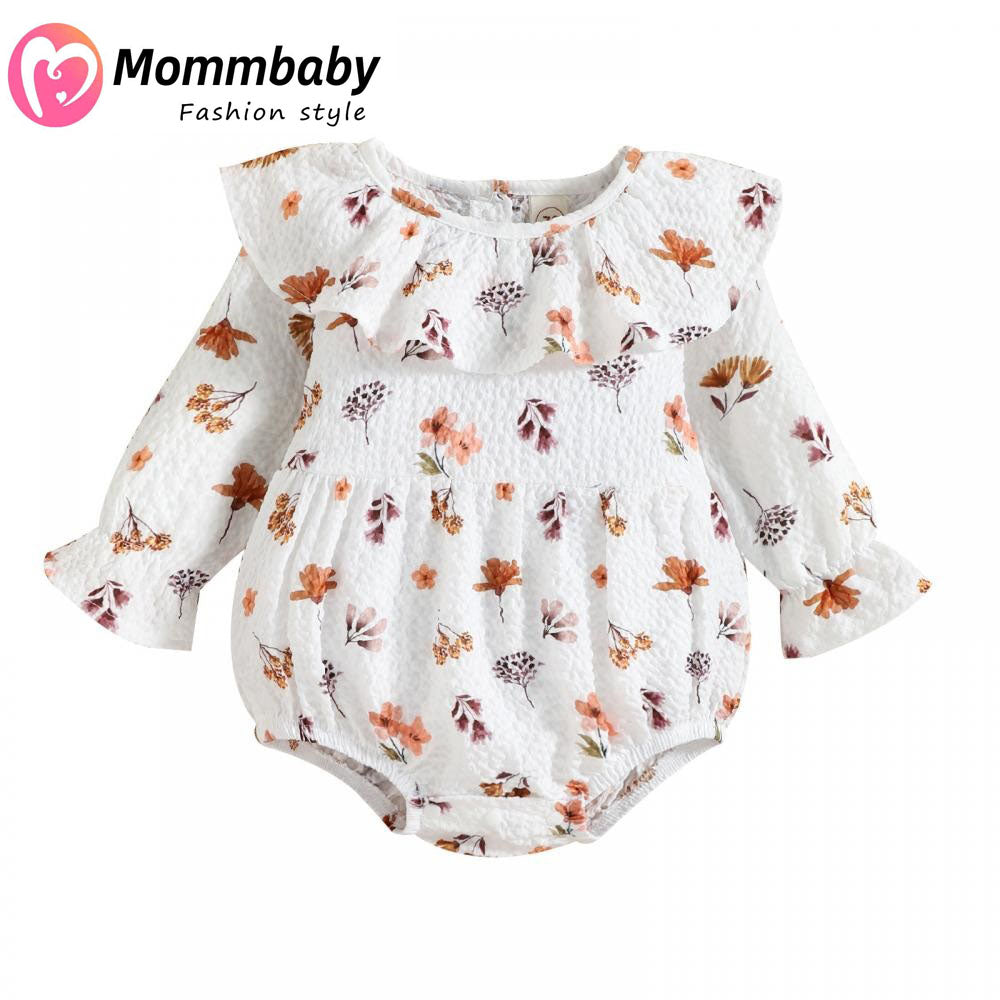 Mommbaby Autumn Winter Baby Girl Print Lotus Leaf Collar Romper Kids Clothes