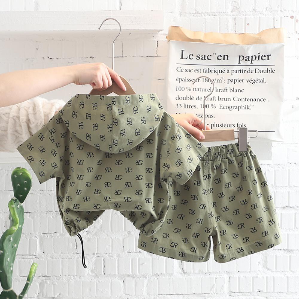 Neutrals Unisex Boys Girls Set Summer Printed Hoodie Top and Shorts Set Wholesale Boys Clothing Suppliers