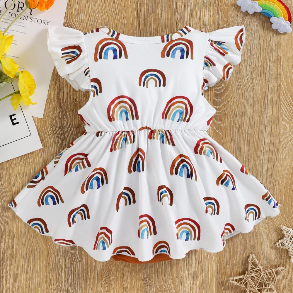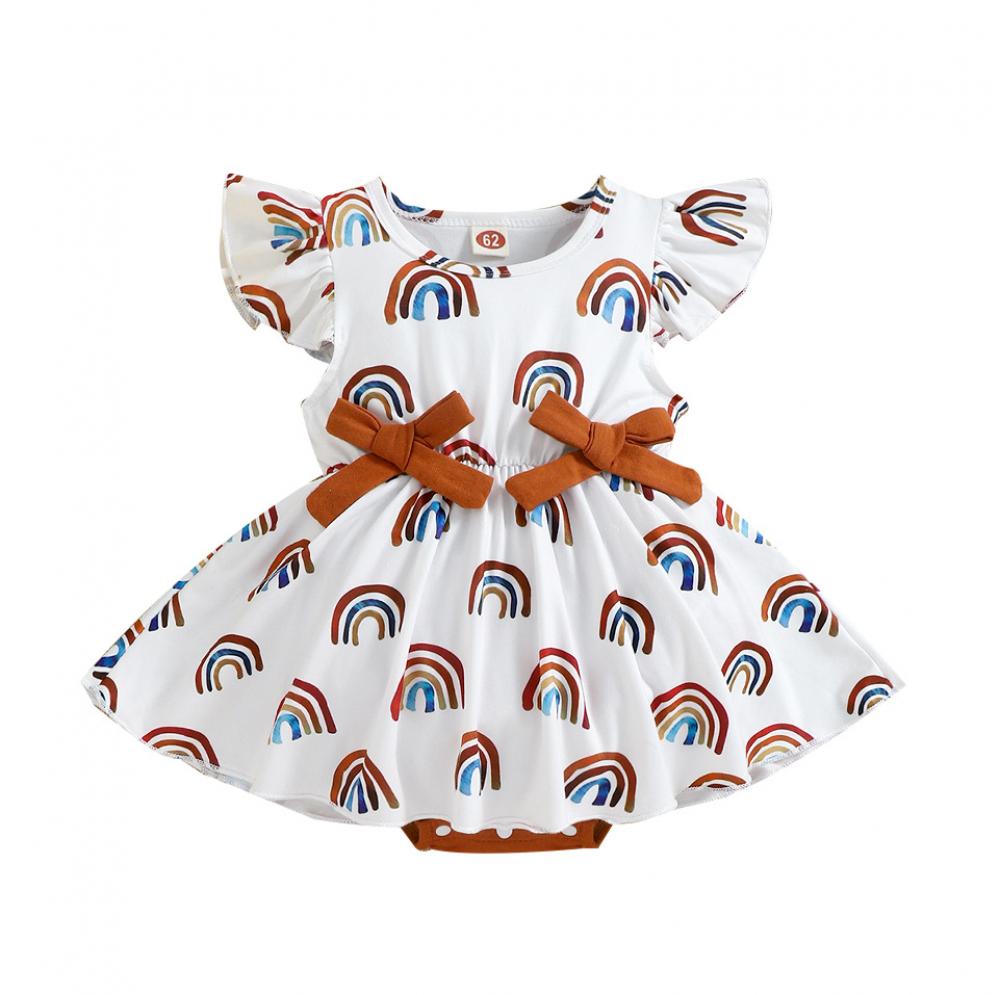 New Rainbow Flying Sleeve Bow Skirt Wholesale Baby Clothes