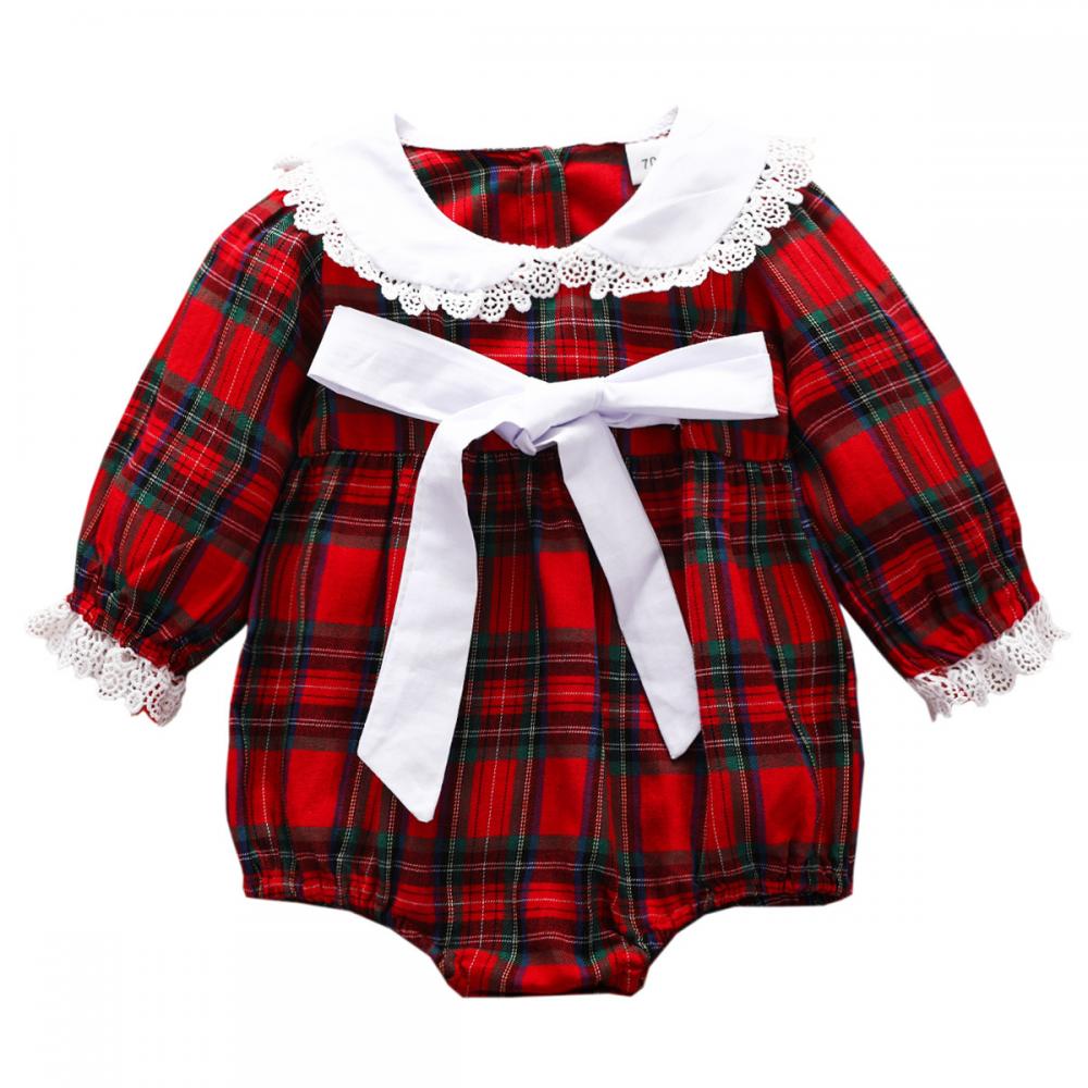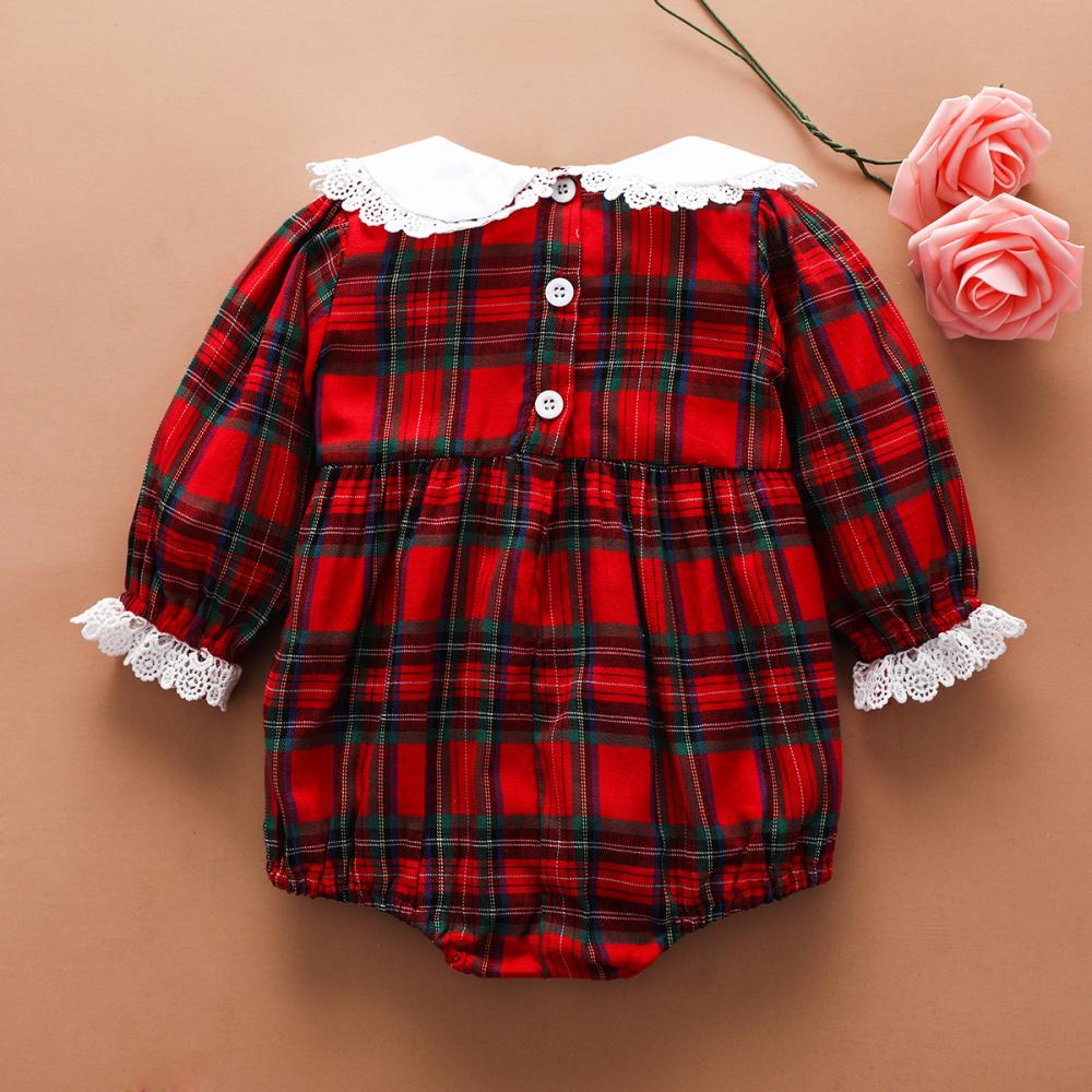 One Piece Autumn Girls Doll Collar Long Sleeve Plaid Romper Baby Girl Boutique Clothes In Bulk