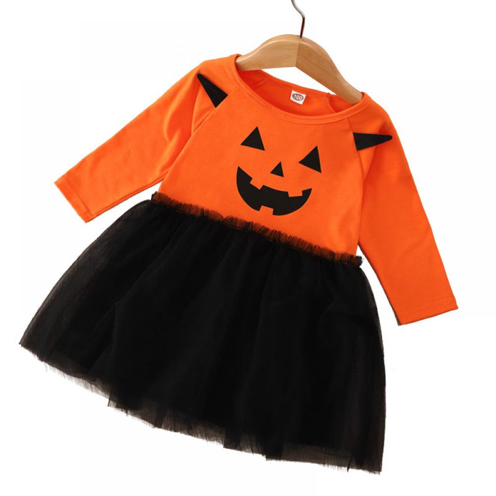 Orange Halloween Gauze Dress For Girl Wholesale Girl Dress