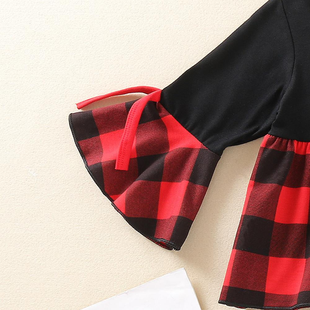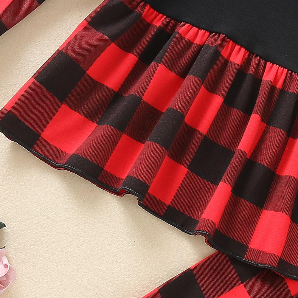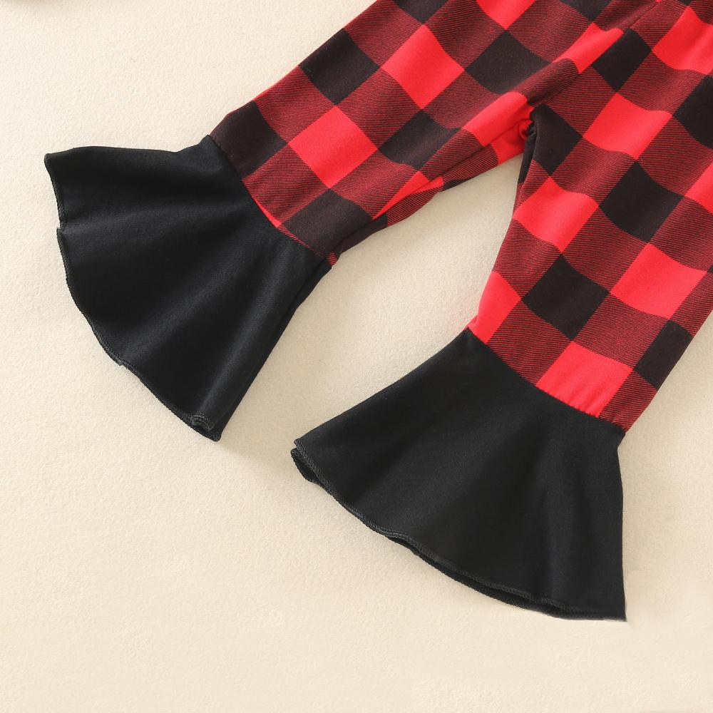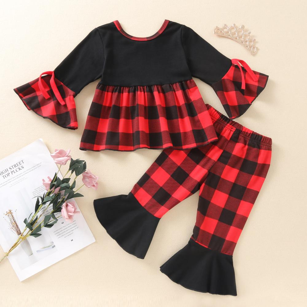 Plaid Top Flared Sleeves + Flared Plaid Pants Wholesale Girls Clothes