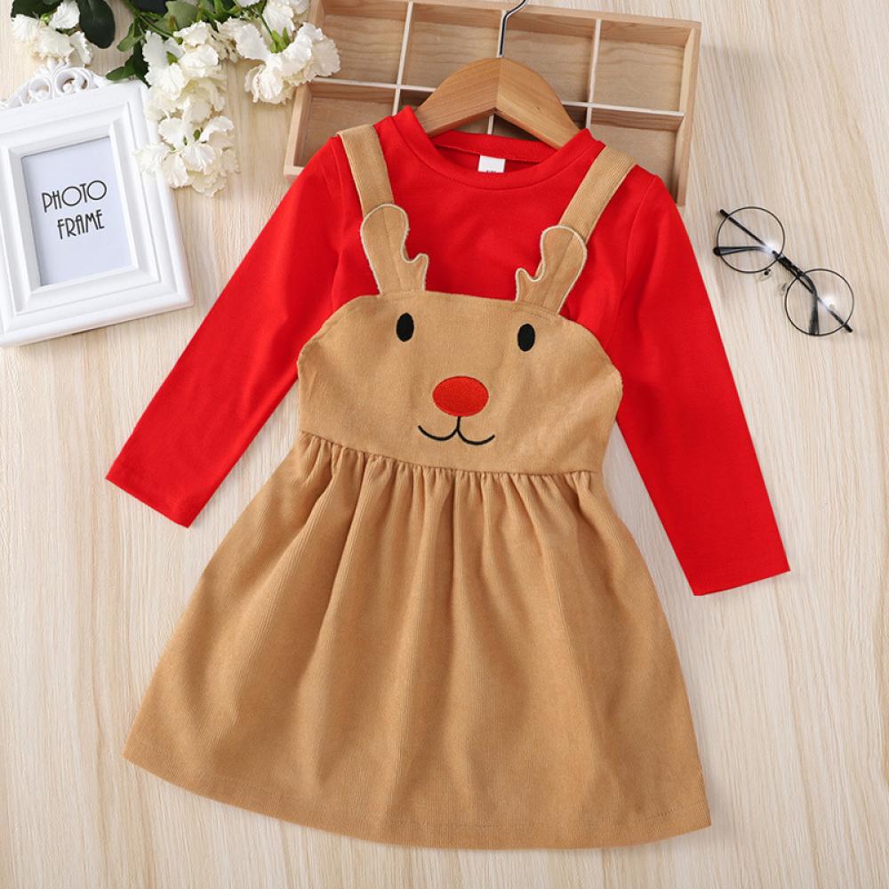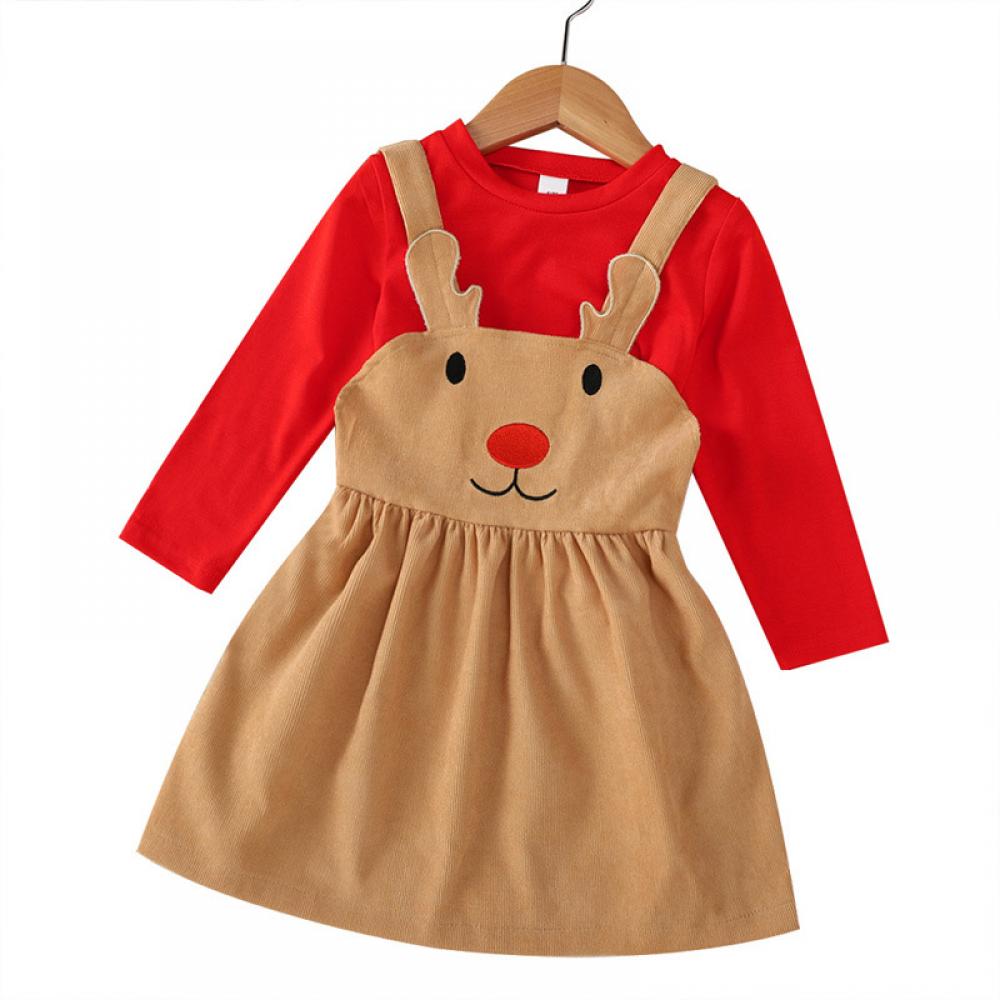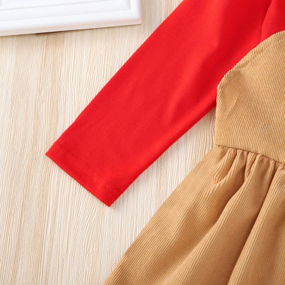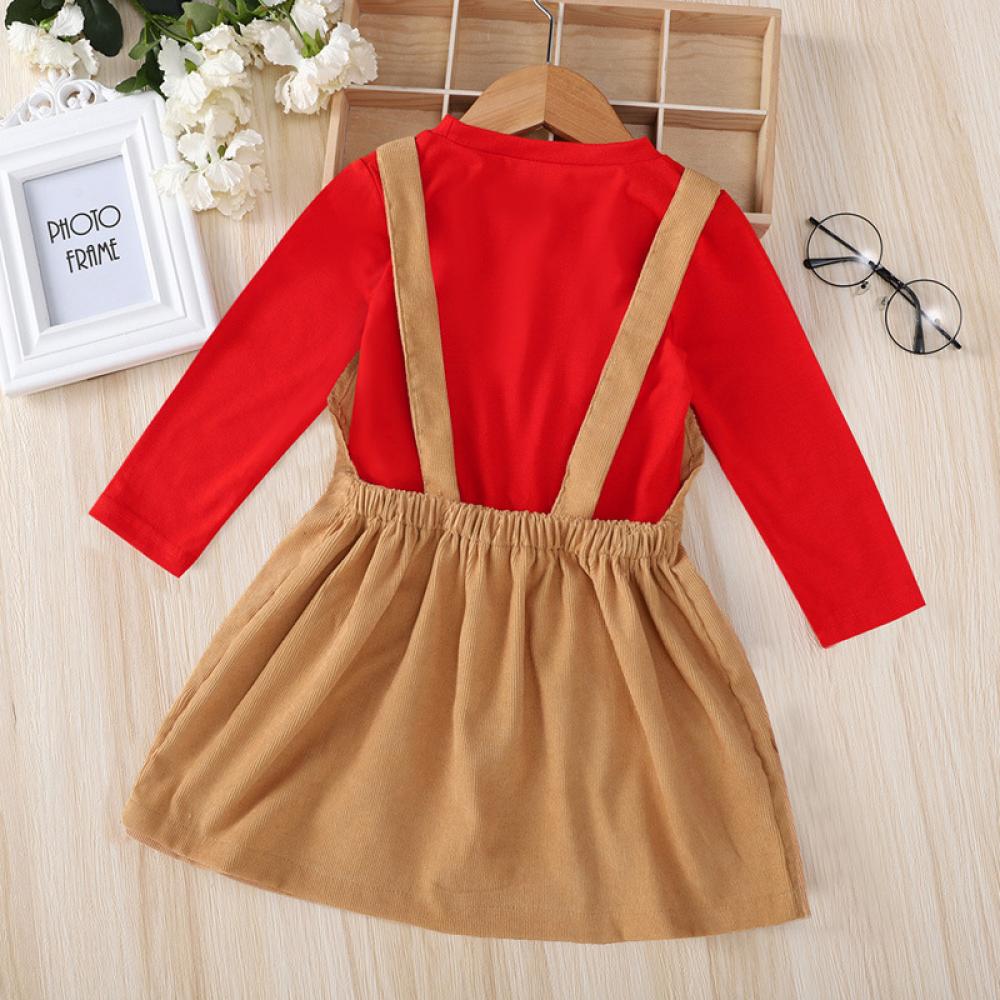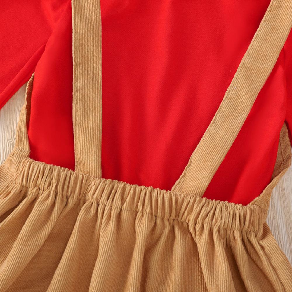 Red Long Sleeve Brown Sling Midi Skirt Suit Wholesale Girls Clothes