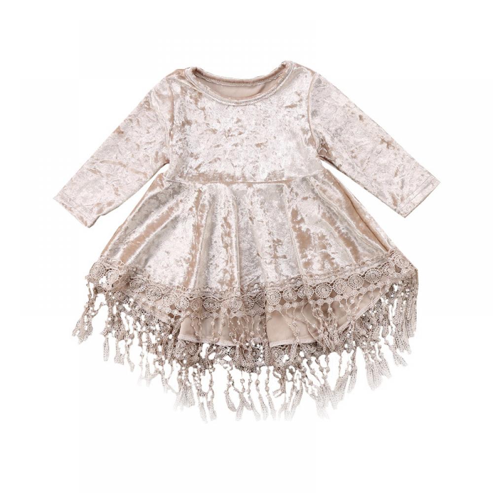 Spring and Autumn Girls Gold Velvet Long Sleeve Dress Tassel Tuxedo Skirt Wholesale Girl Dress