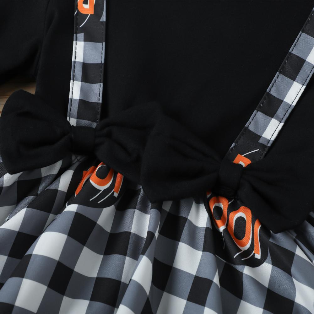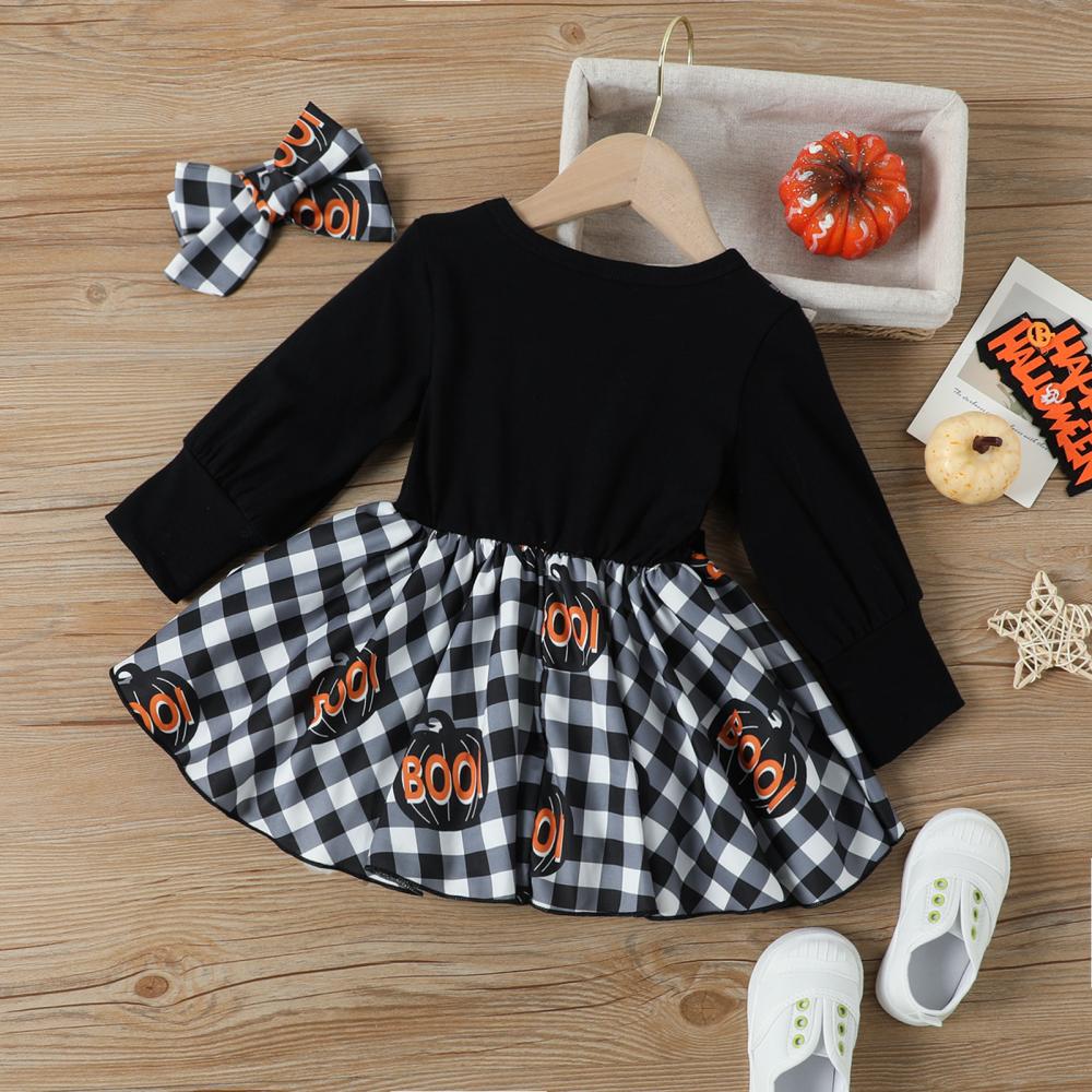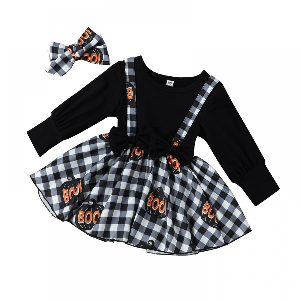 Spring and Autumn Girls Sling Plaid Pumpkin Halloween Long Sleeve Romper Wholesale