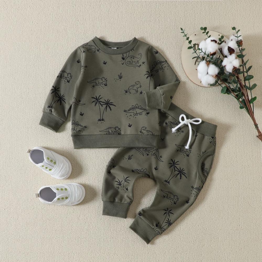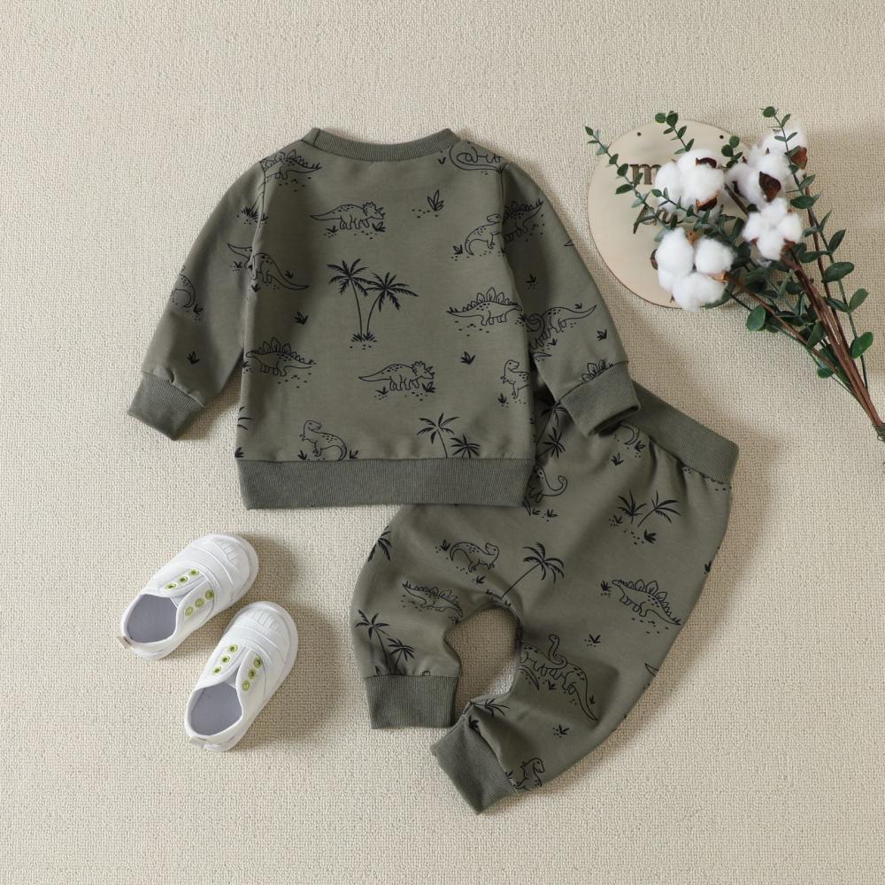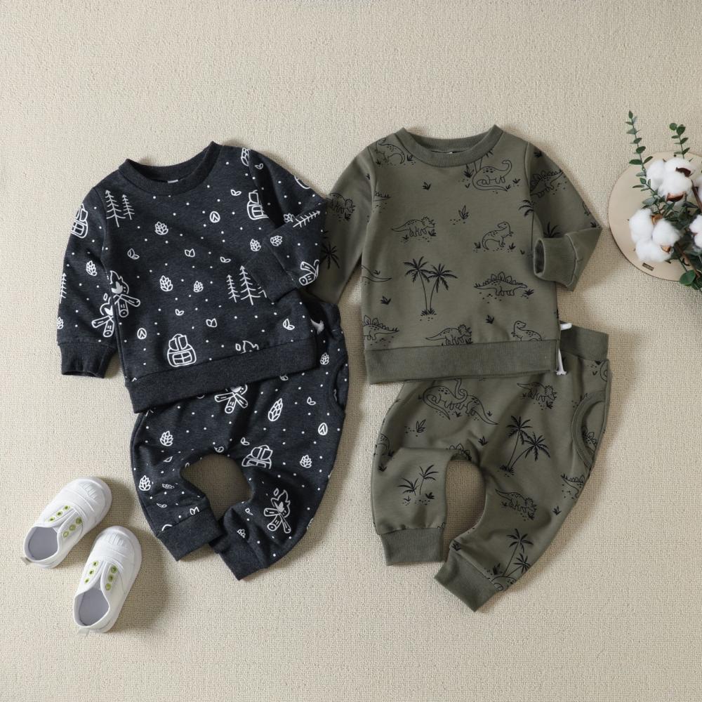 Spring/Autumn Baby Boy Cute Cartoon Print Top + Pants Set Wholesale Boys Clothes