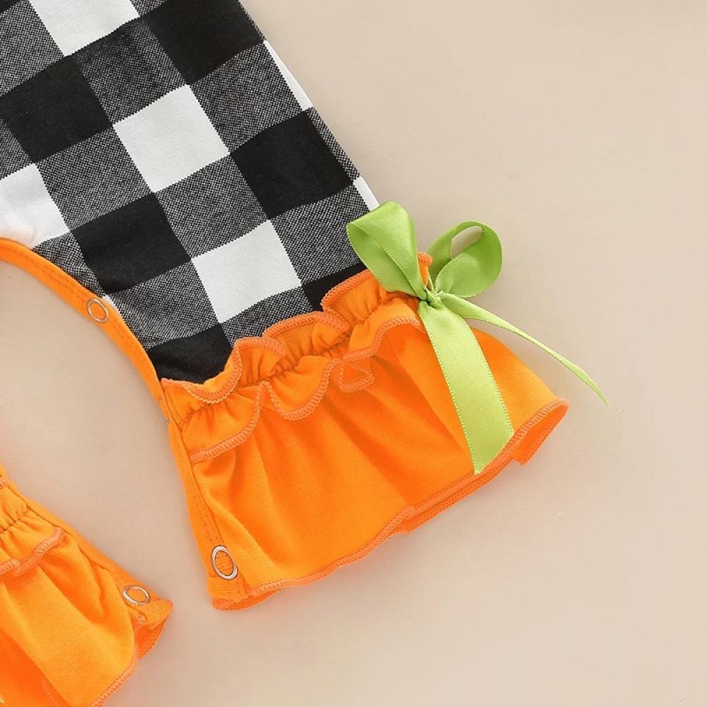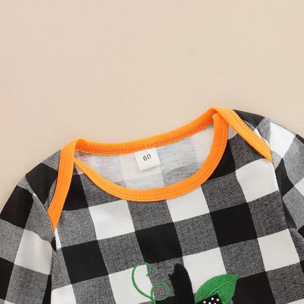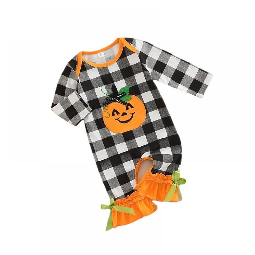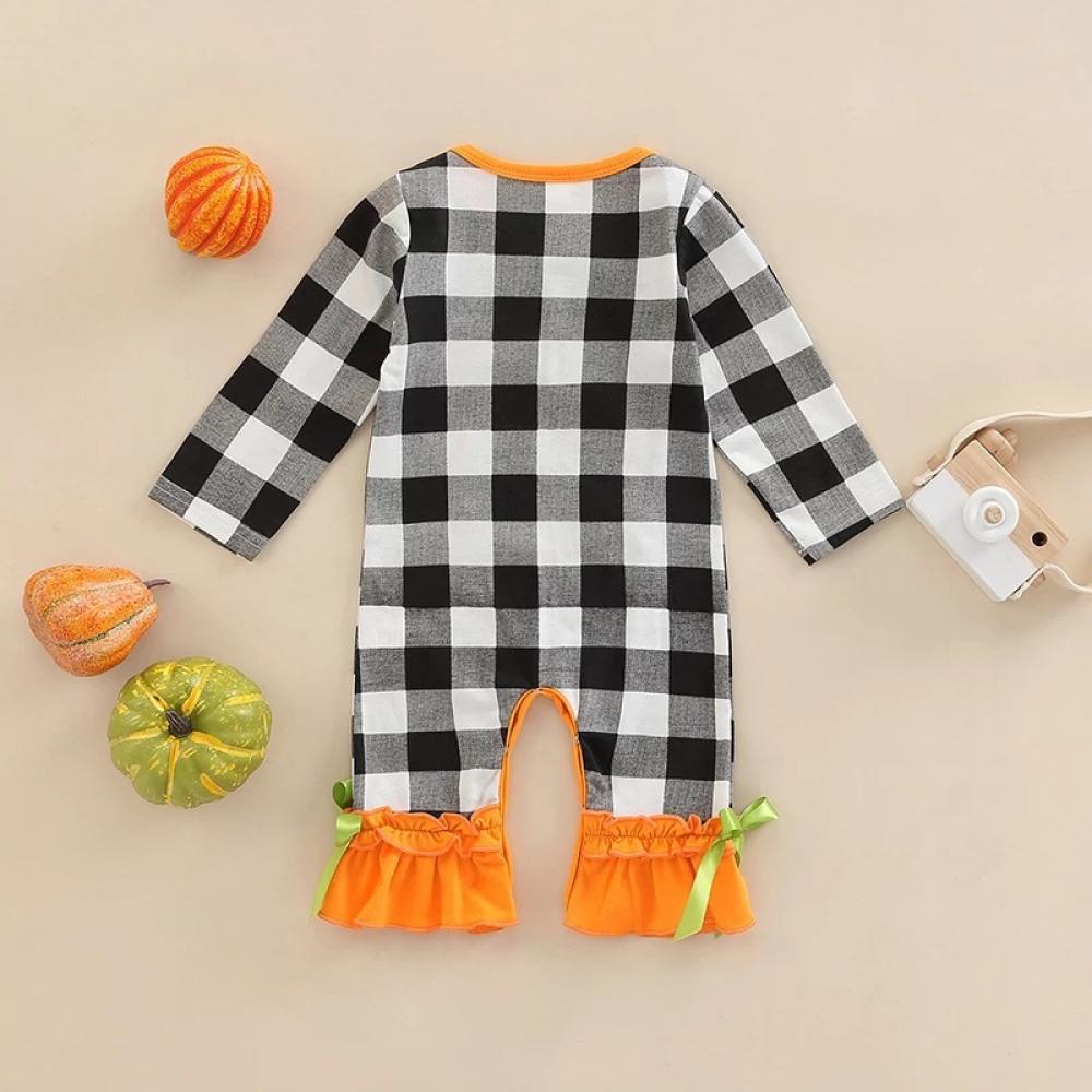 Spring Autumn Baby Halloween Plaid Pumpkin Long Sleeve Romper Wholesale Baby Clothes