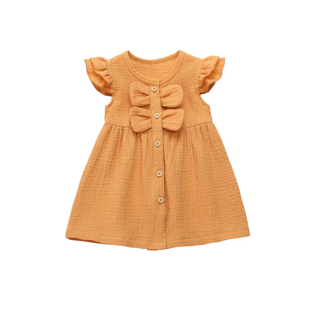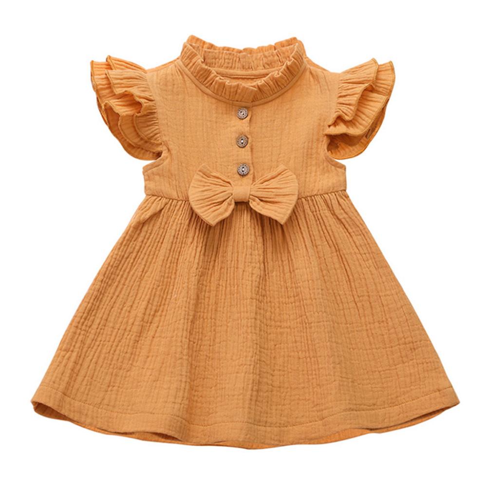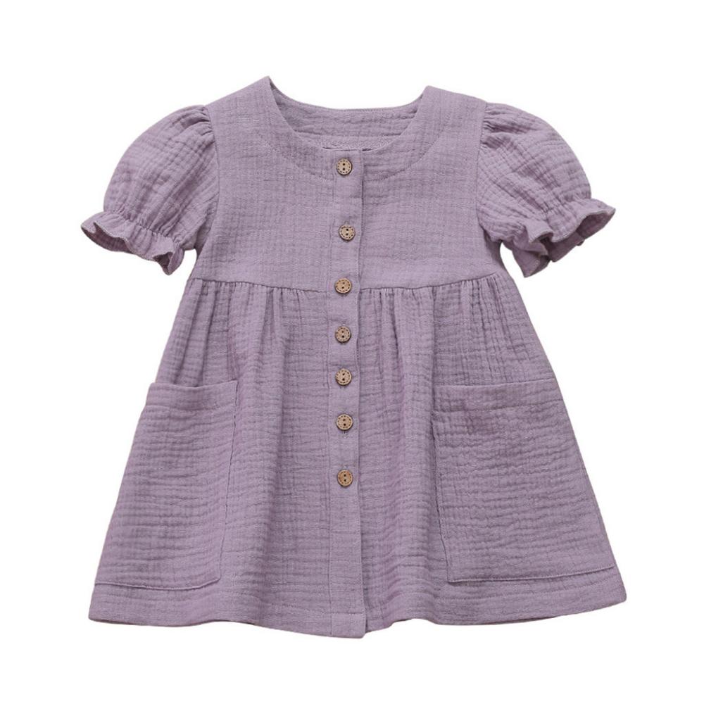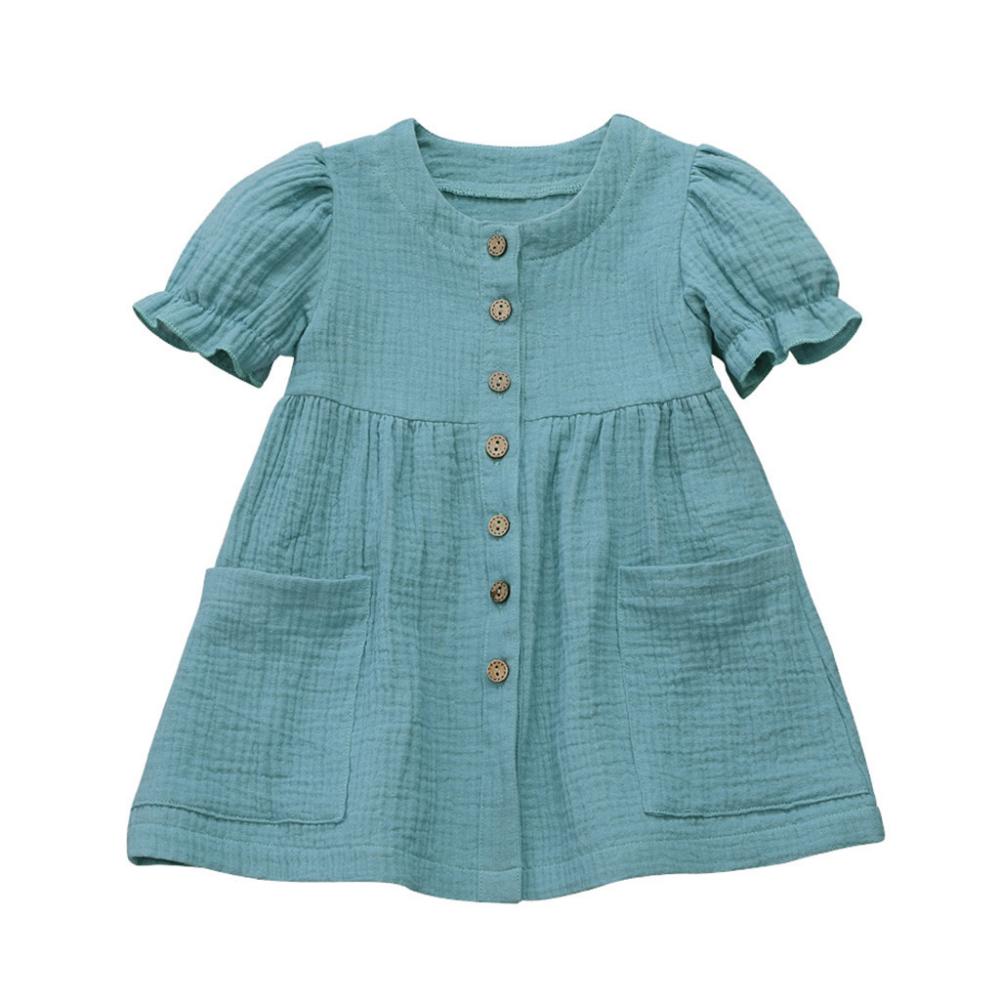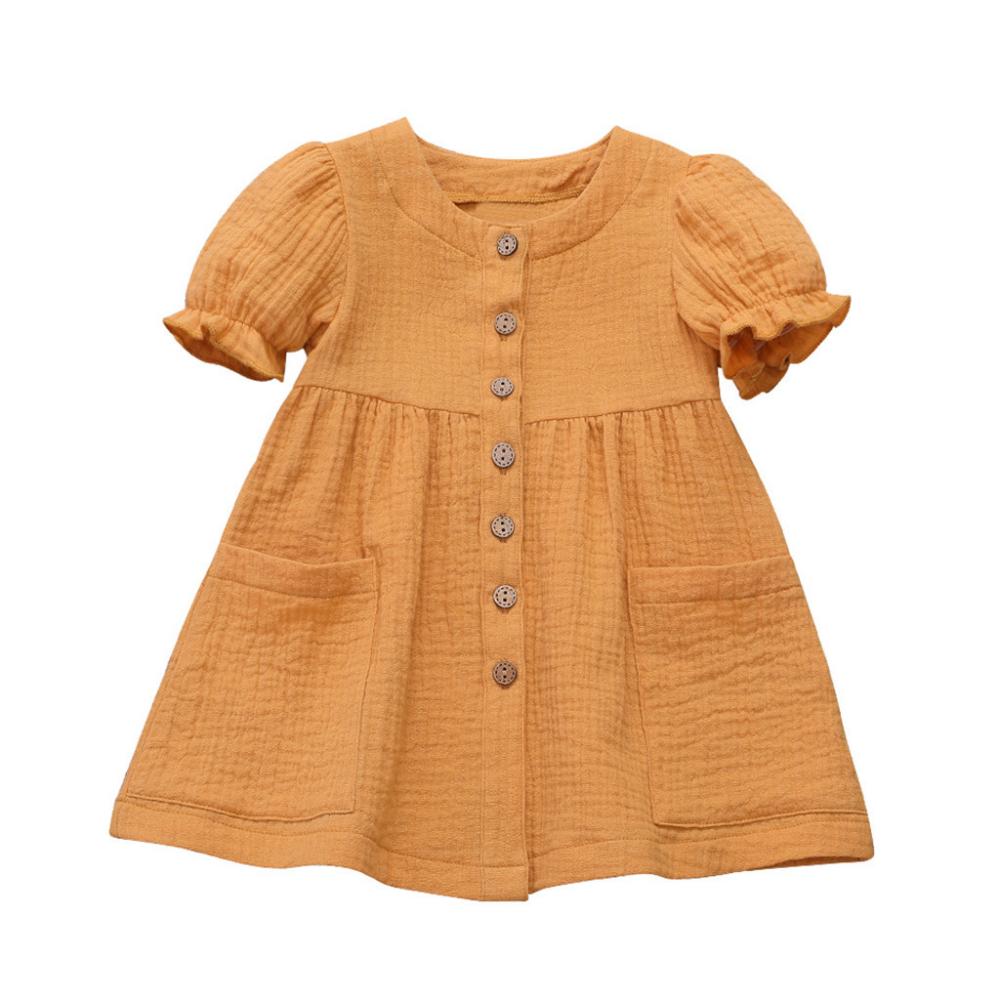 Summer 6M-5T Cotton And Linen Solid Color Stitching Girls Dress Wholesale Dress For Girls