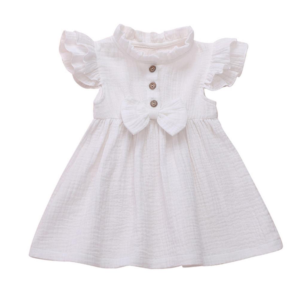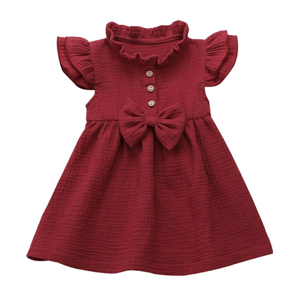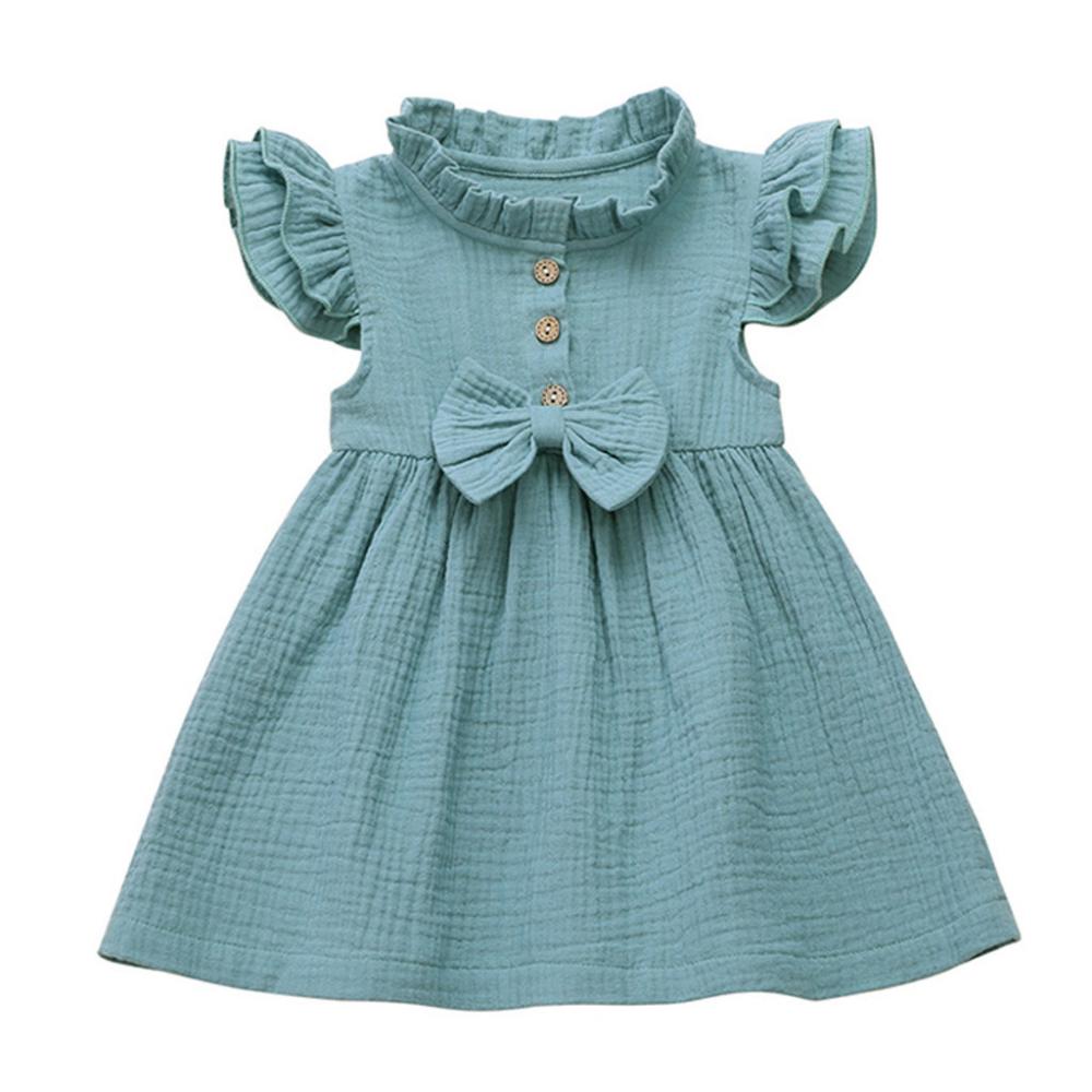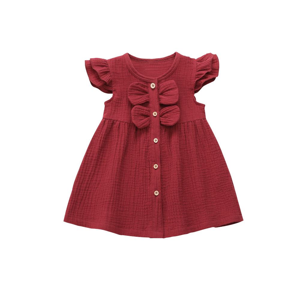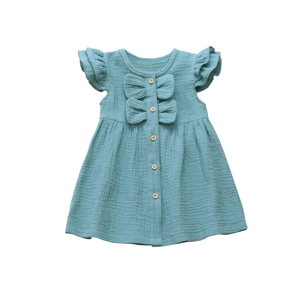 Summer 6M-5T Cotton And Linen Solid Color Stitching Girls Dress Wholesale Dress For Girls
