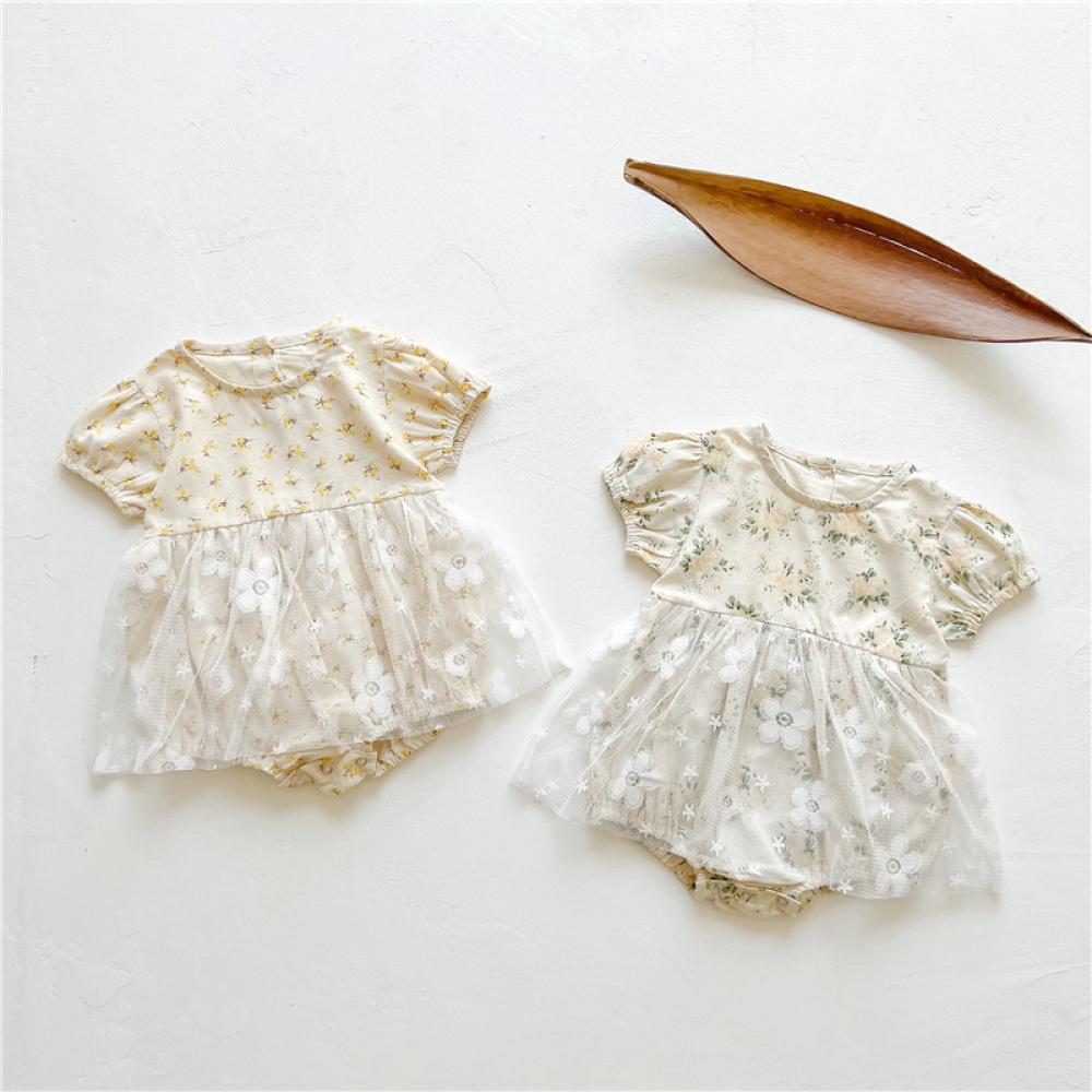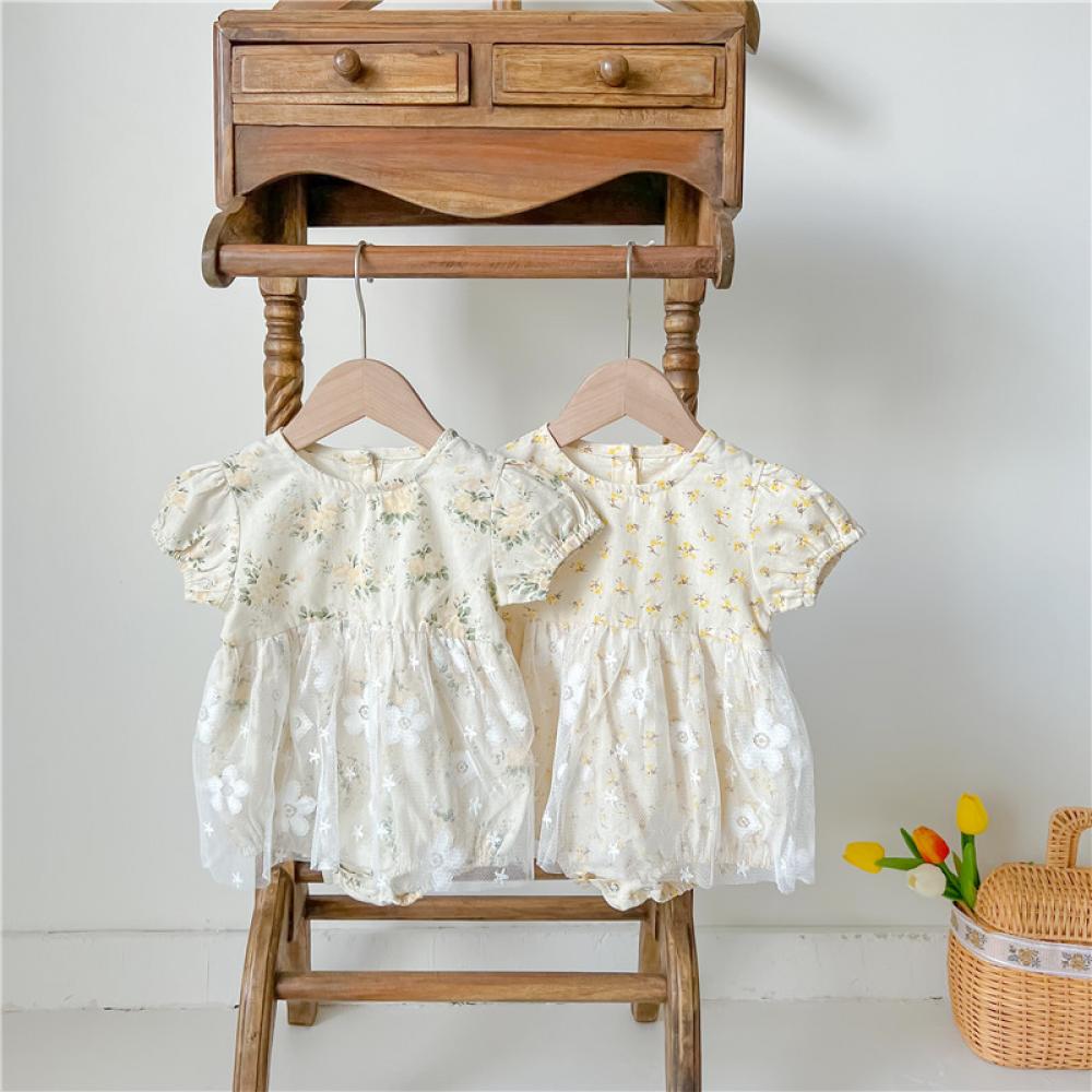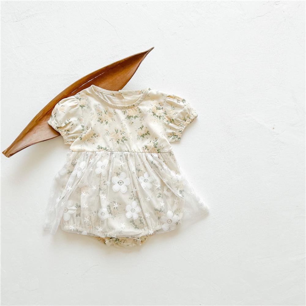 Summer Baby Girl Western Style Floral Mesh Romper Wholesale Baby Children Clothes