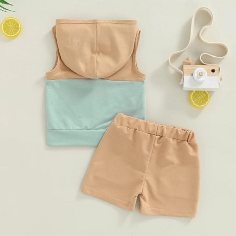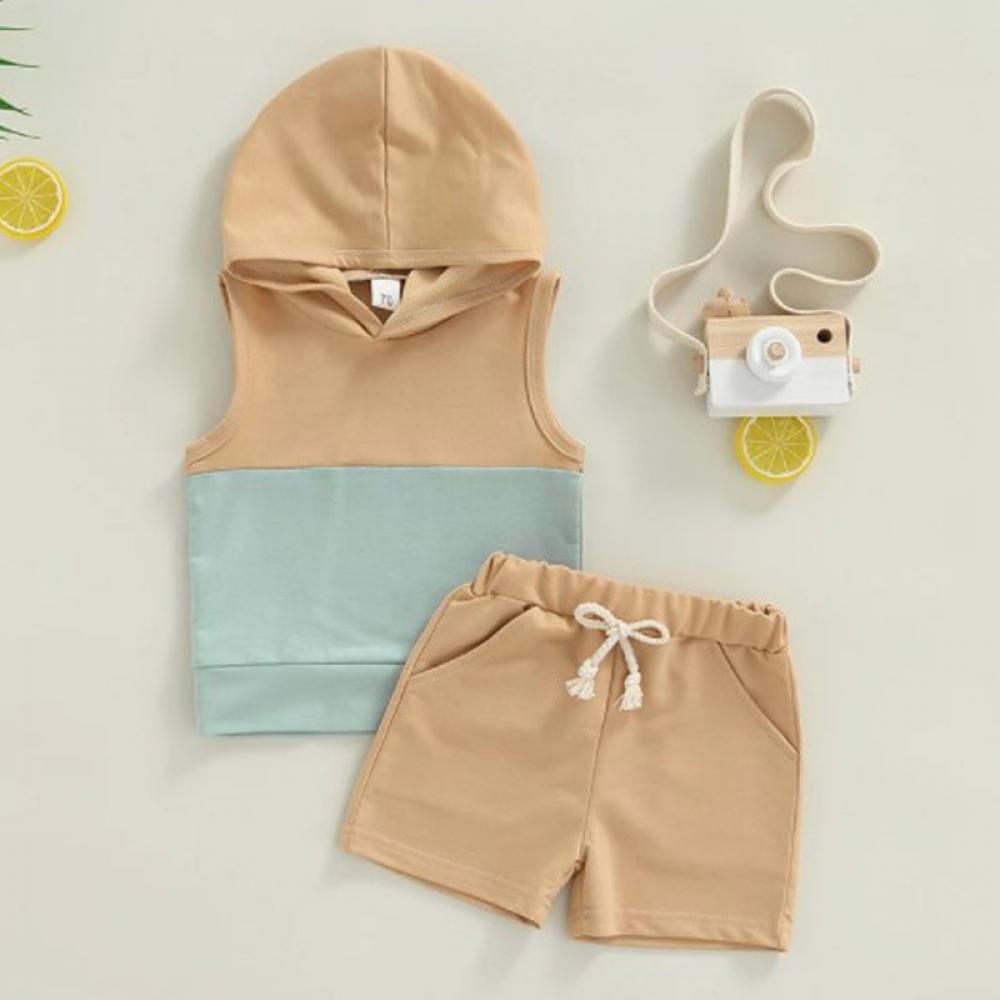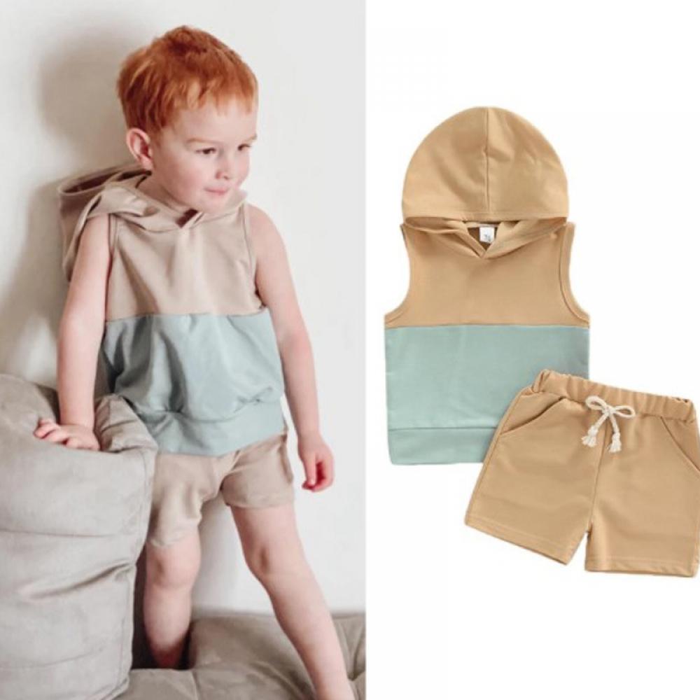 Summer Boys Hooded Sleeveless Tank Top Shorts Two-Piece Set Wholesale Boys Clothes