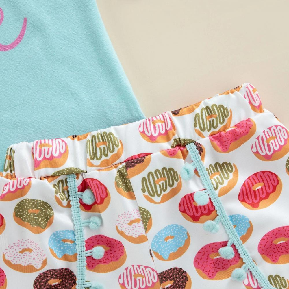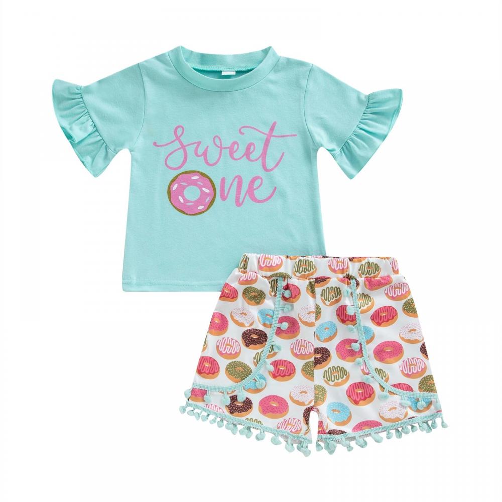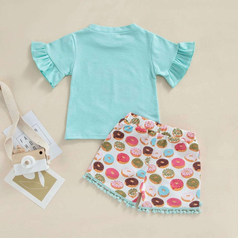 Summer Girls Printed Short Sleeve Top Shorts Set Wholesale Girls Clothing