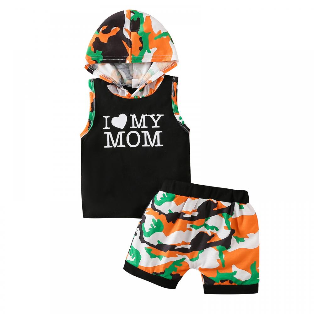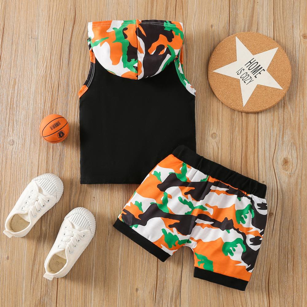 Summer Kids Set Letter Camo Print Hoodie Shorts Set Wholesale Baby Boy Clothes