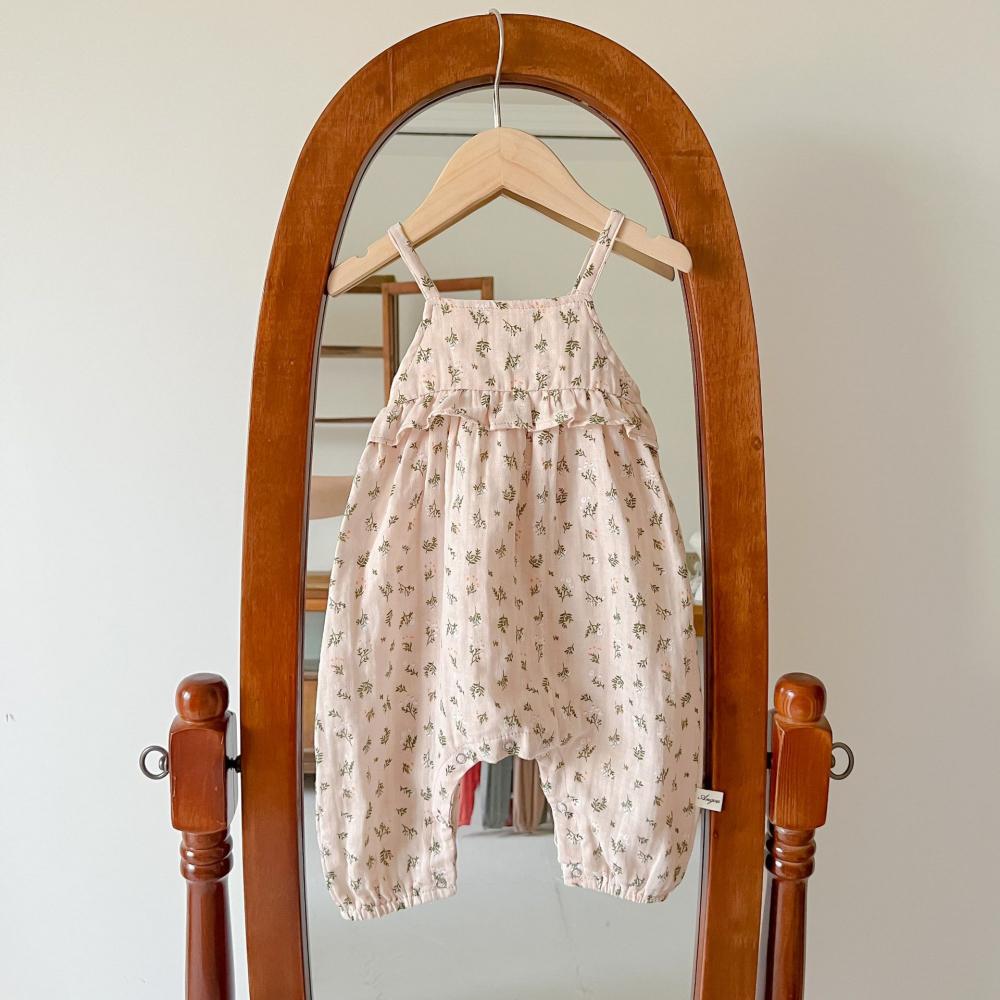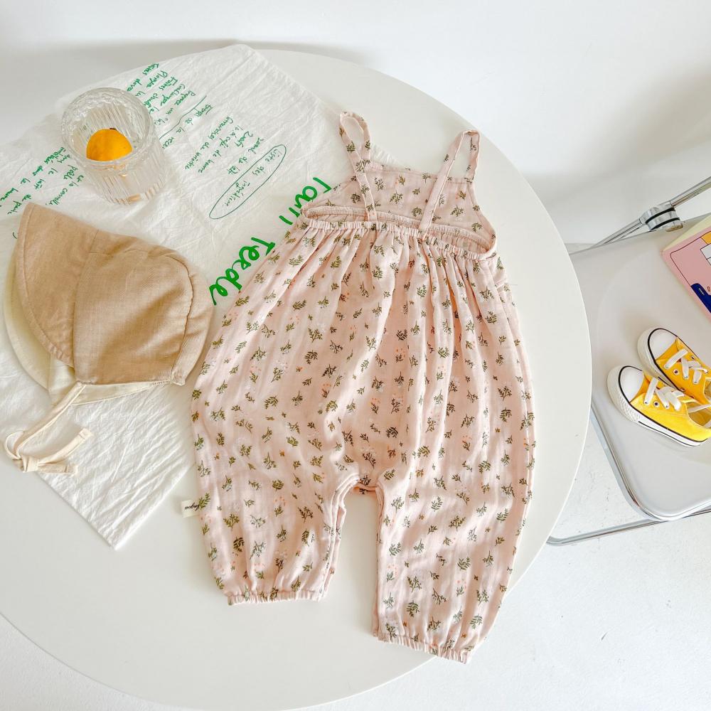 Summer Suspenders Pink Full Print Floral Jumpsuit Wholesale Baby Clothes