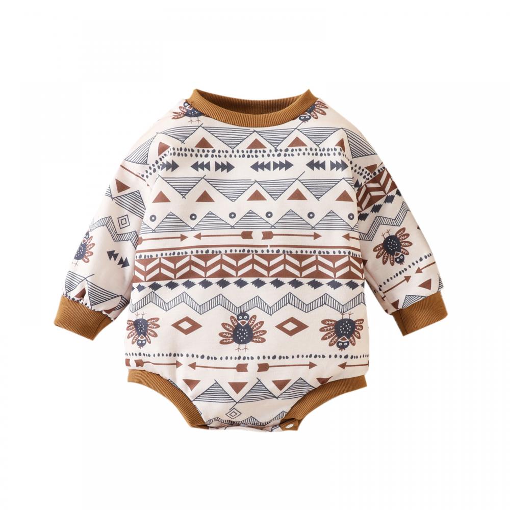 Thanksgiving Day Autumn Baby Cartoon Turkey Print Romper Wholesale