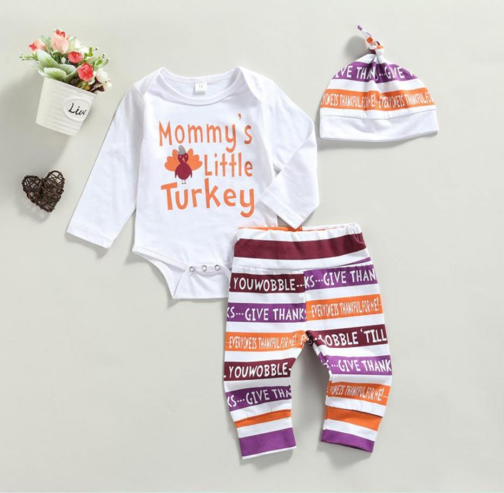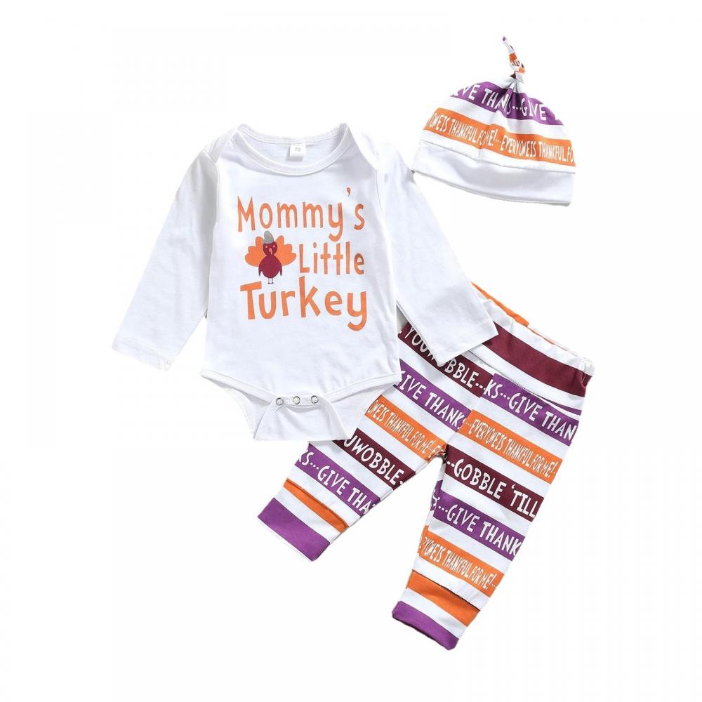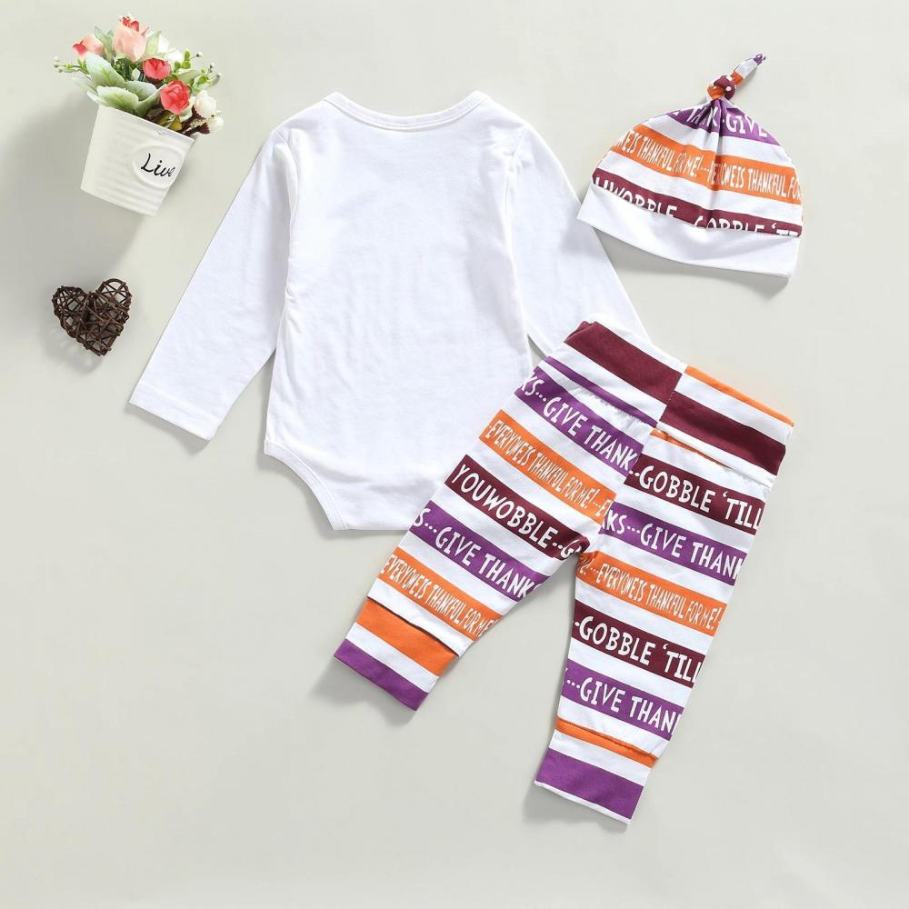 Thanksgiving Infant Suit Turkey Print Long Sleeve Romper Pants + Hat Set Wholesale Baby Clothes