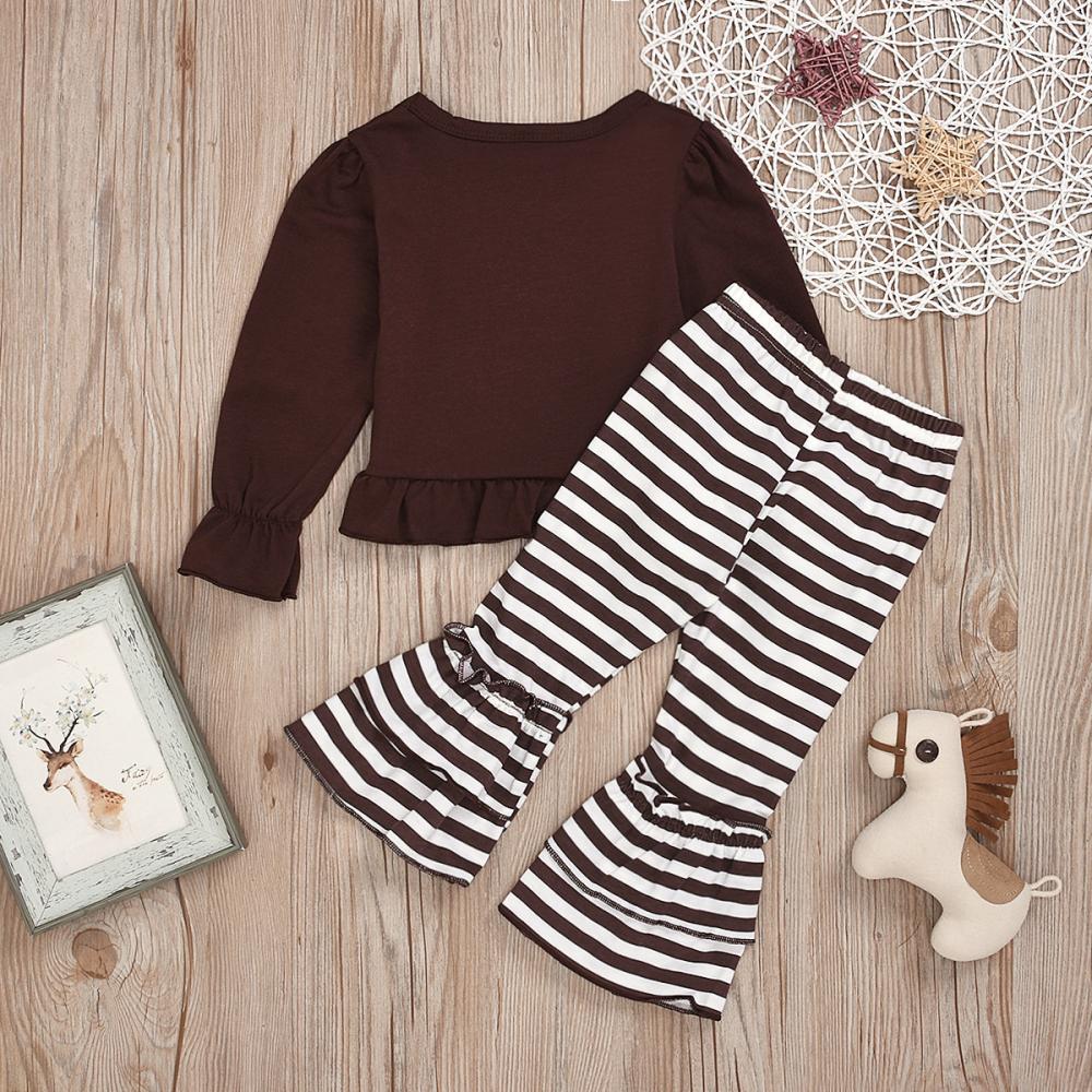 Thanksgiving Turkey Long Sleeve Striped Flared Pants Girls Suit Wholesale Girls Clothes