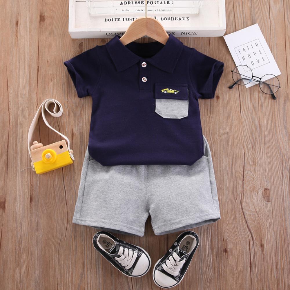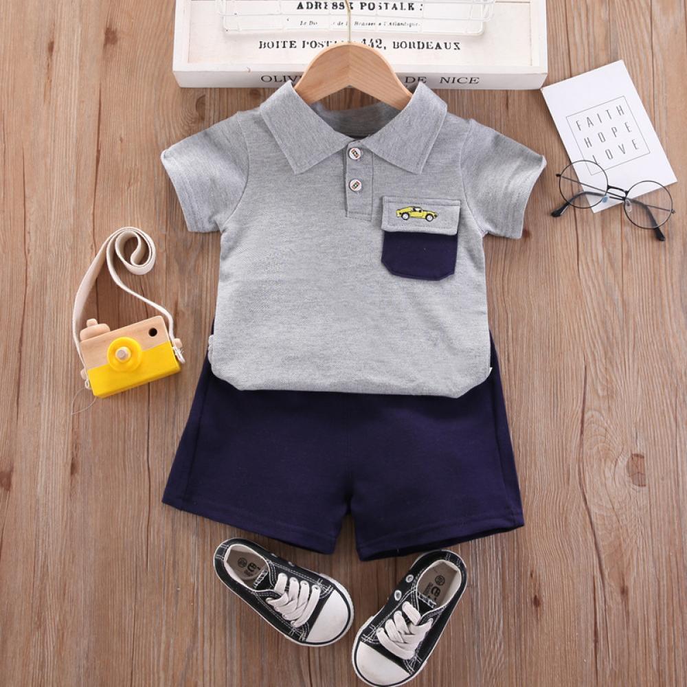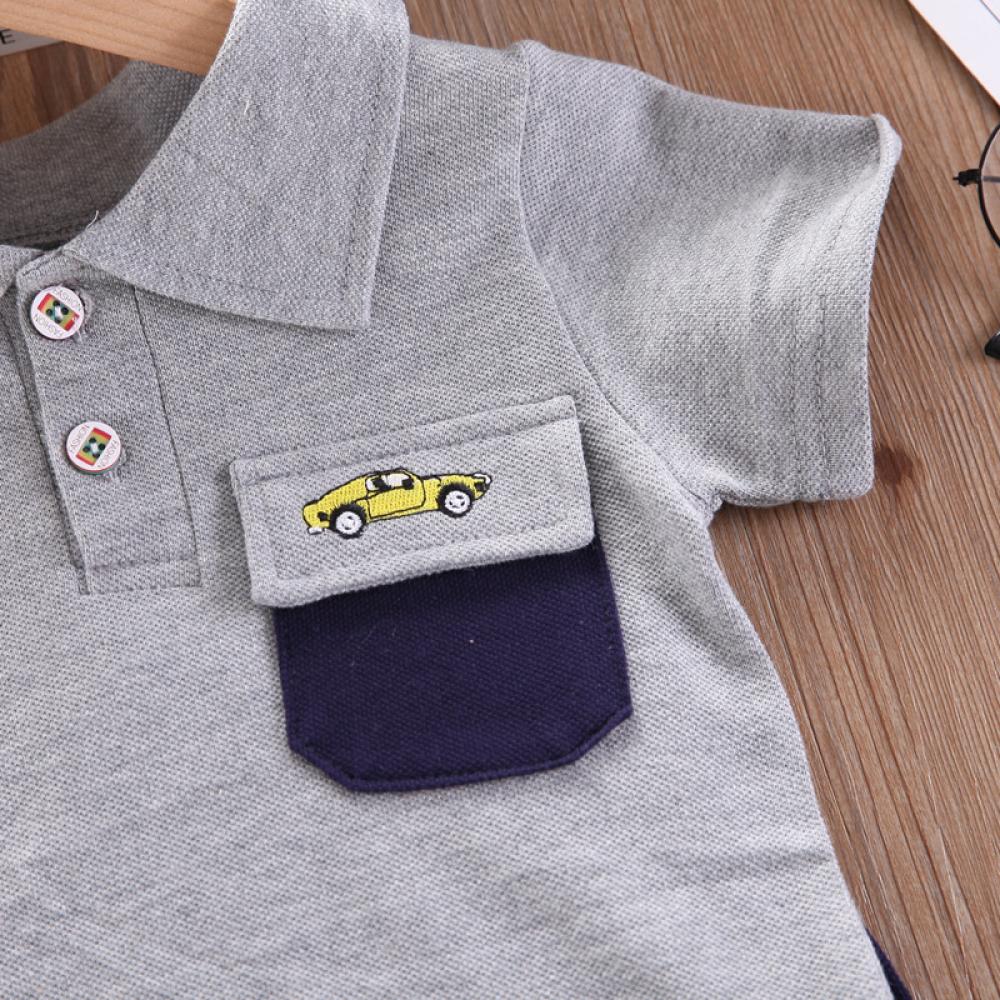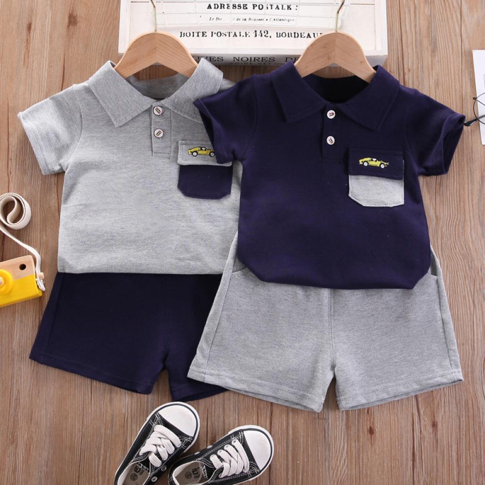 Toddler Boys Set Summer Car Embroidery Leisure Top and Shorts Kids Boutique Wholesale