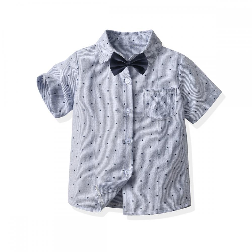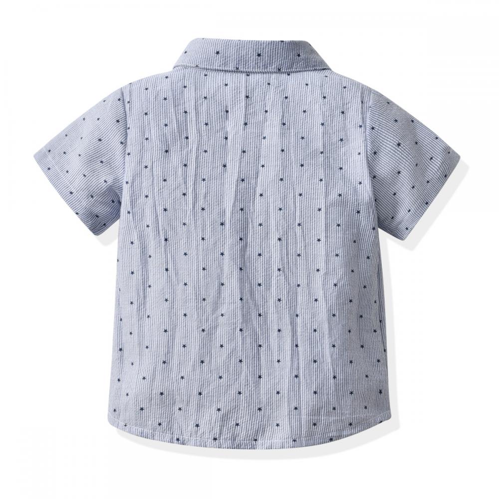 Toddler Boys Short Set Summer Blue Star Printed T-shirt And Suspenders Shorts Gentle Set Wholesale Boys Clothing Suppliers