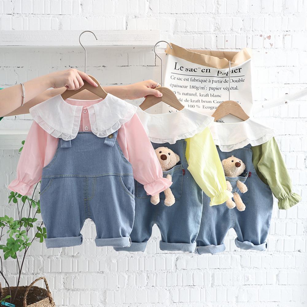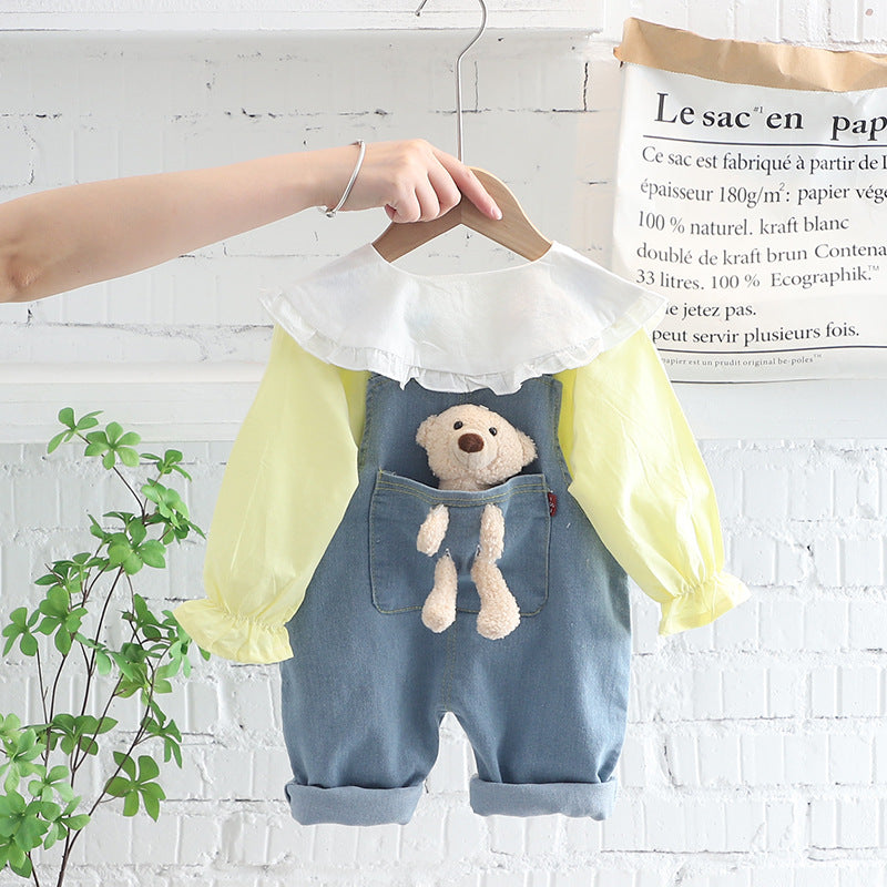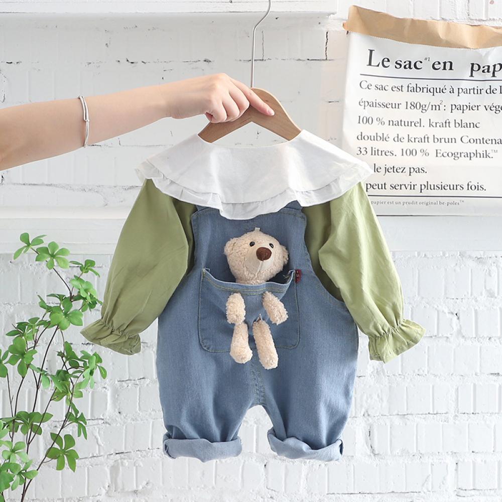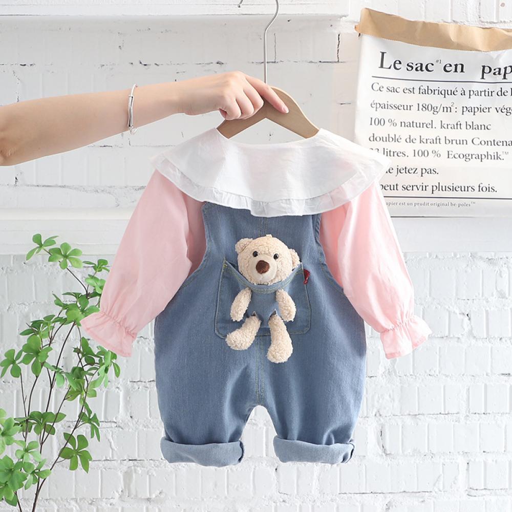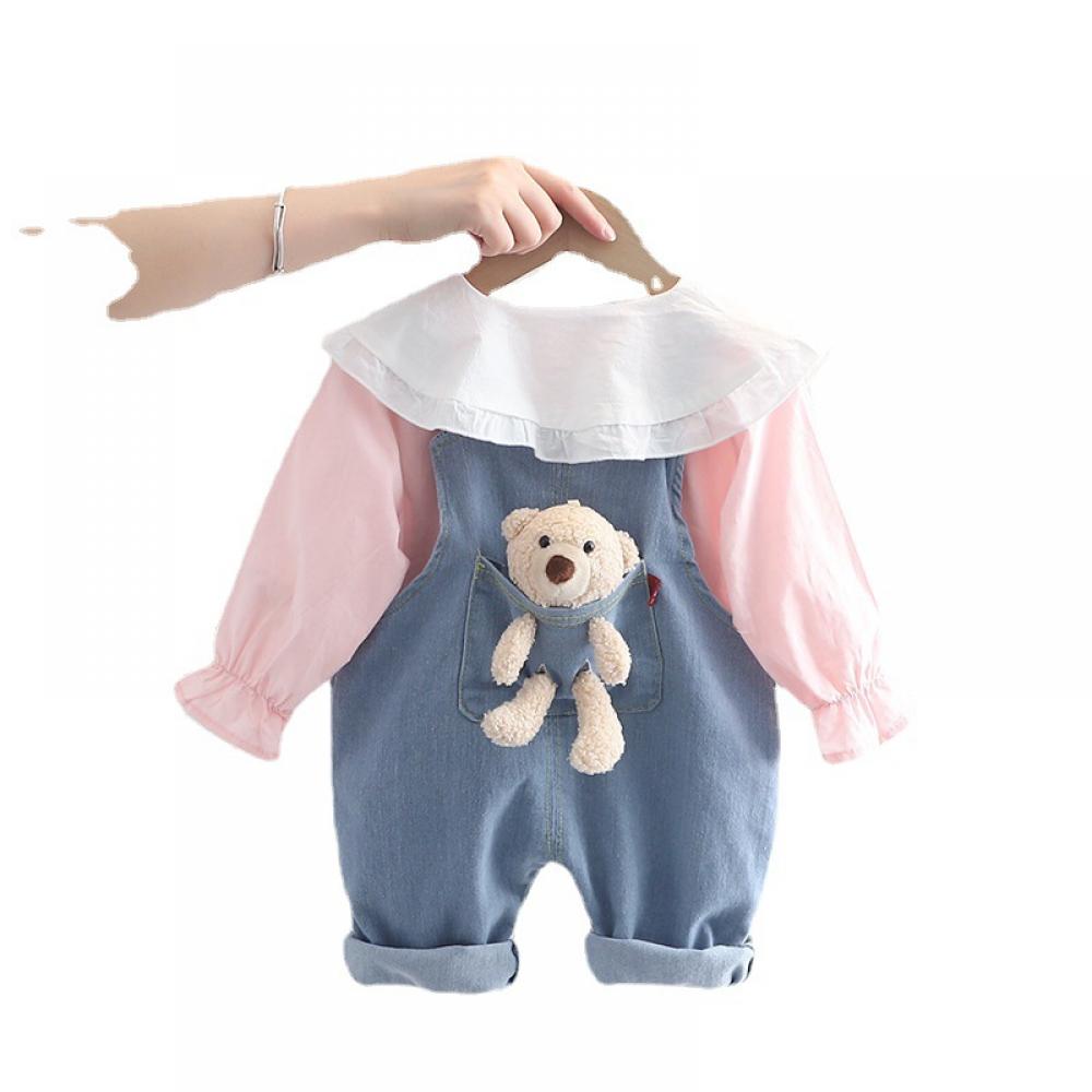 Toddler Girls Bear Top and Suspenders Set Girls Boutique Clothes Wholesale