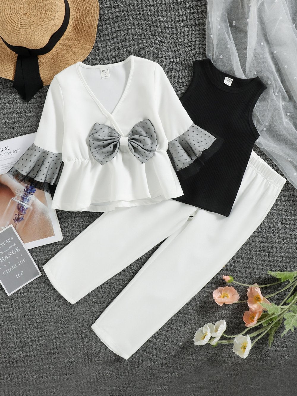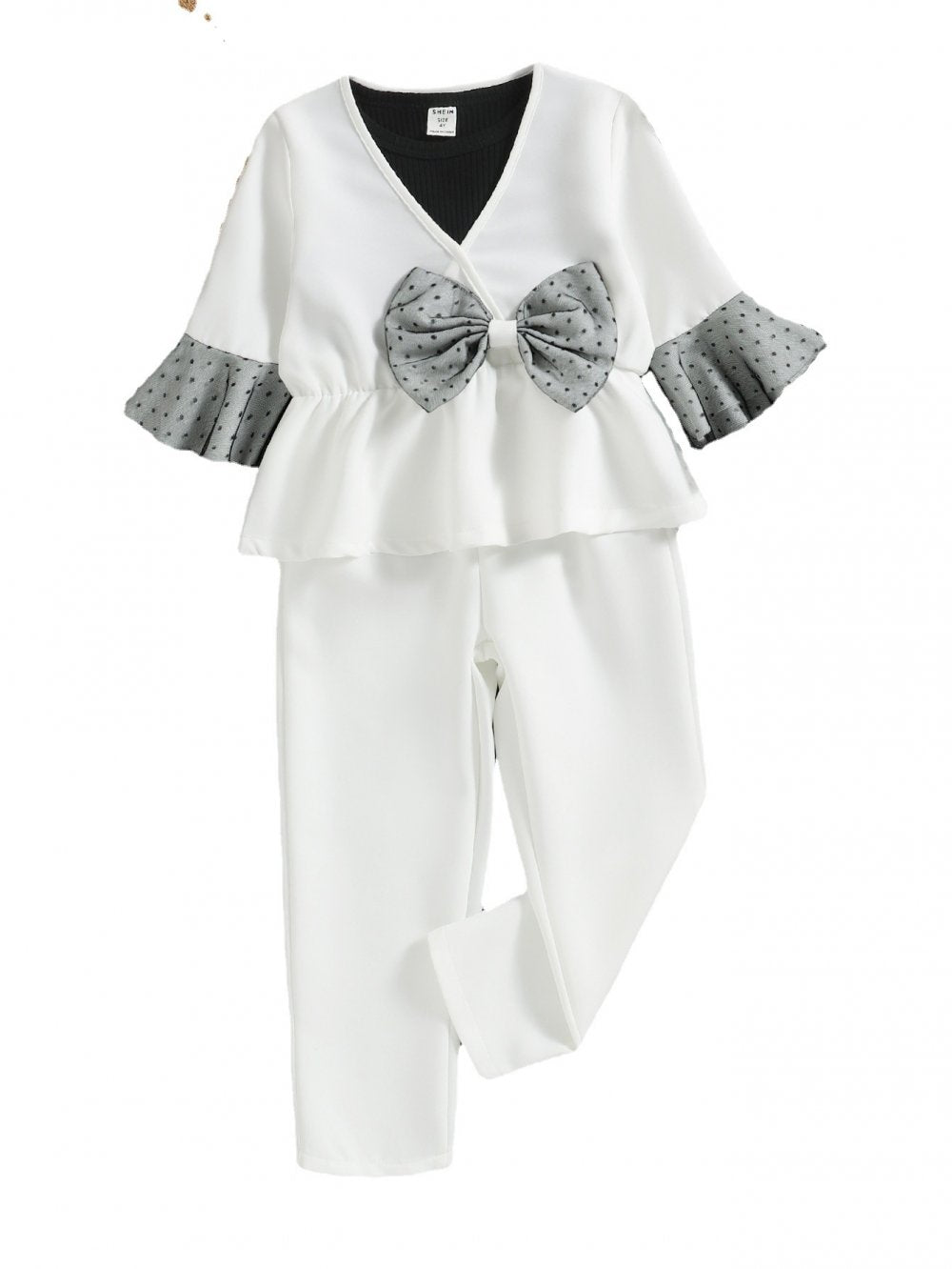 Toddler Girls Bow Coat + Vest + Trousers Set Wholesale Girls Clothes