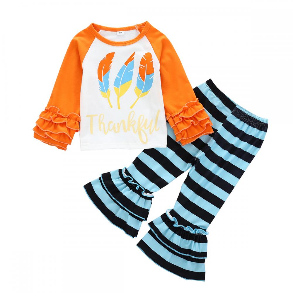Toddler Girls Spring and Autumn Thanksgiving Letters Long Sleeve Tops and Trousers Suit Wholesale Girls Clothes