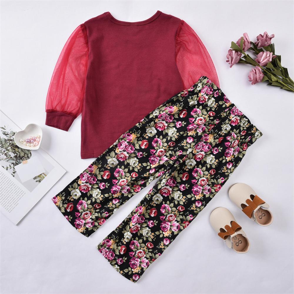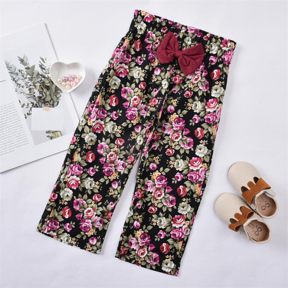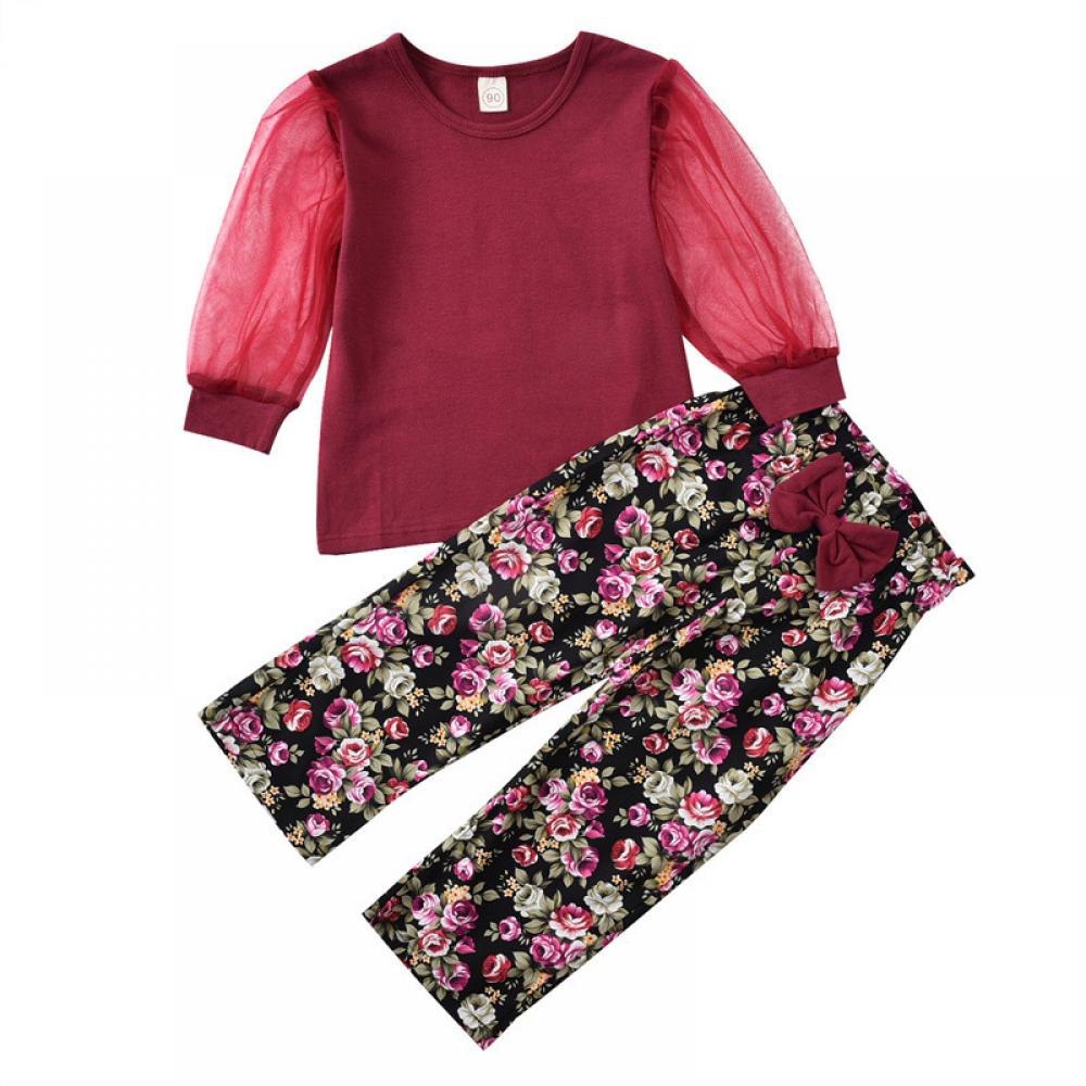 Toddler Girls Spring Autumn Top and Bow Floral Pants Set Girls Boutique Clothes Wholesale