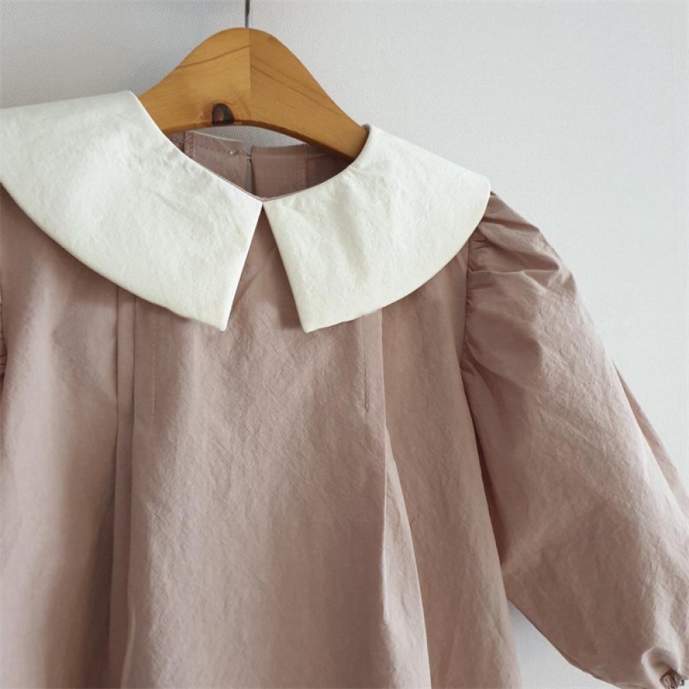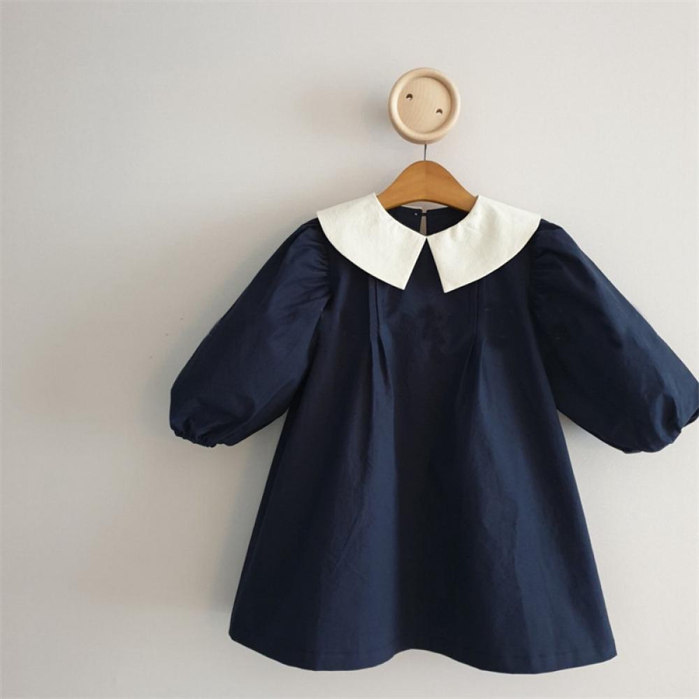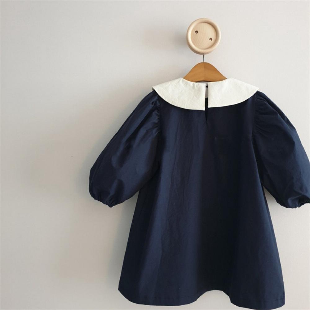 Toddler Girls Spring Dress Lapel Puff Sleeve Dress Wholesale Girl Dress