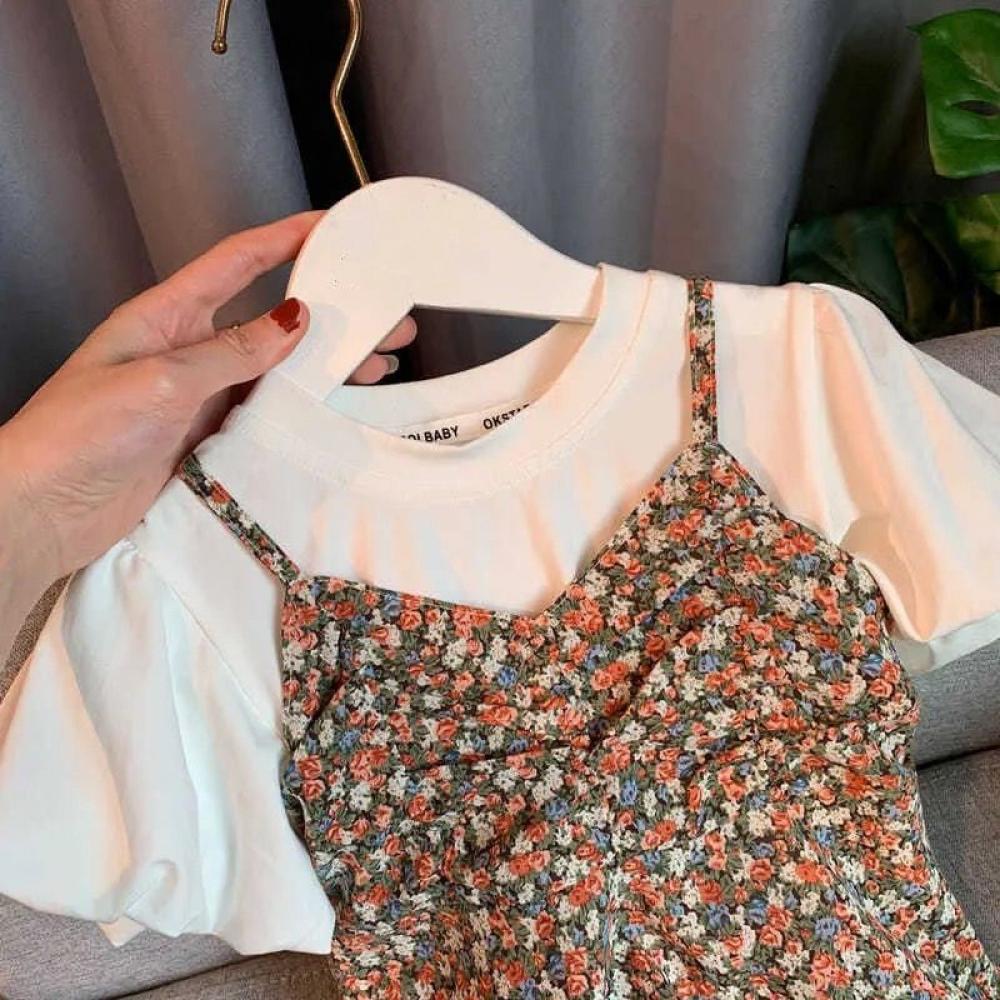 Toddler Girls Top and Suspenders Floral Dress Baby Girl Boutique Clothing Wholesale