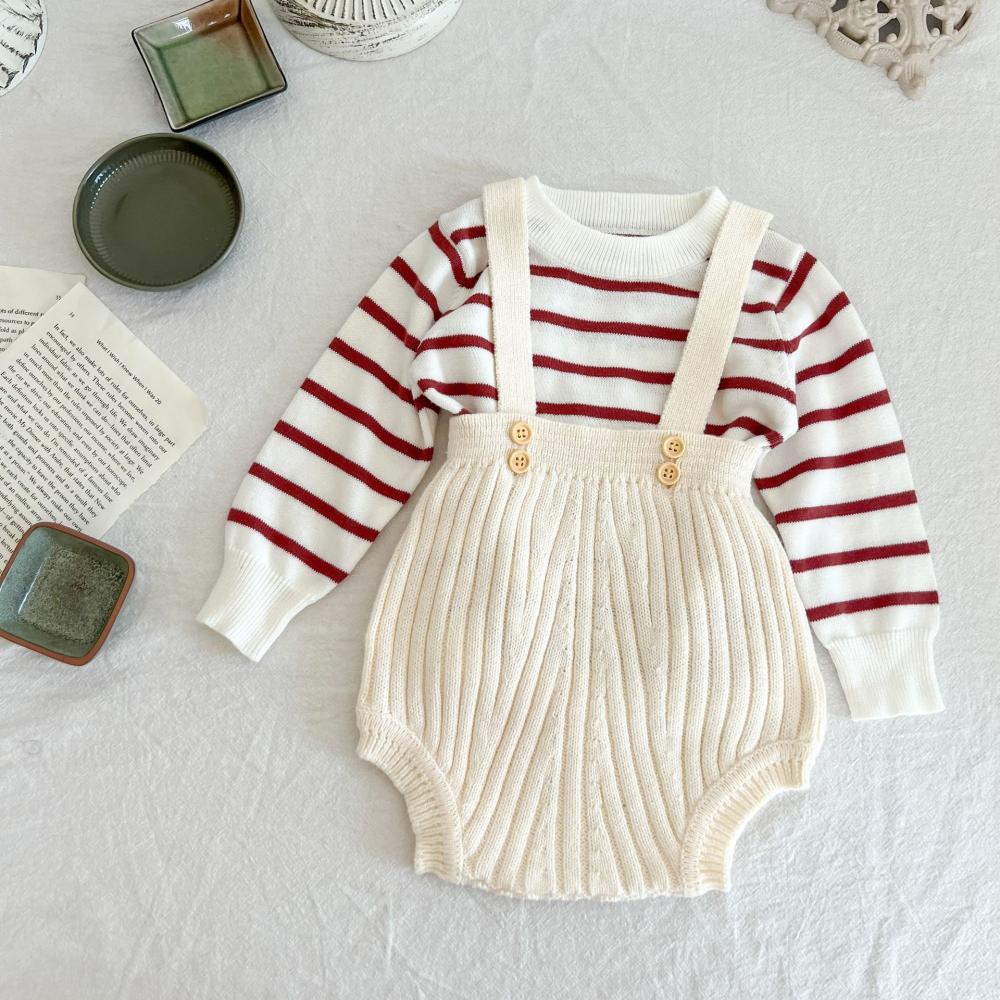 Unisex Baby Knitted Pit Strip Overalls Romper Baby Boutique Clothes In Bulk